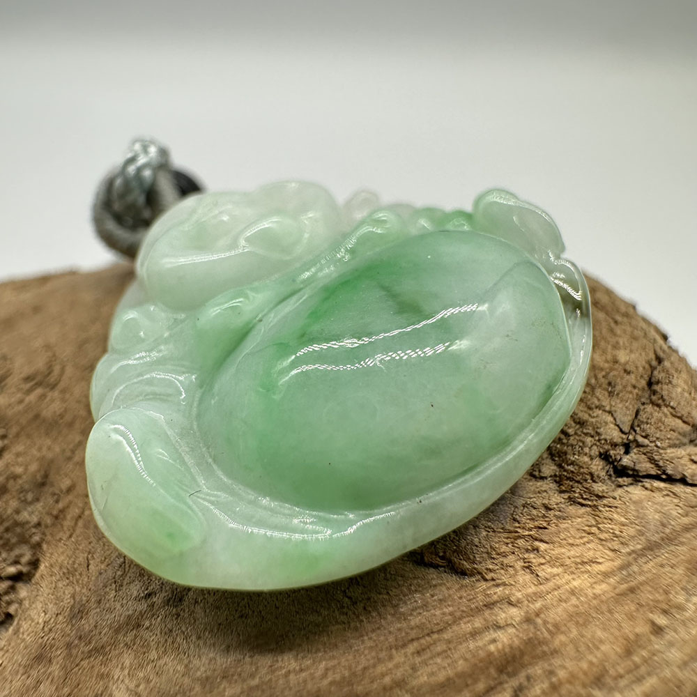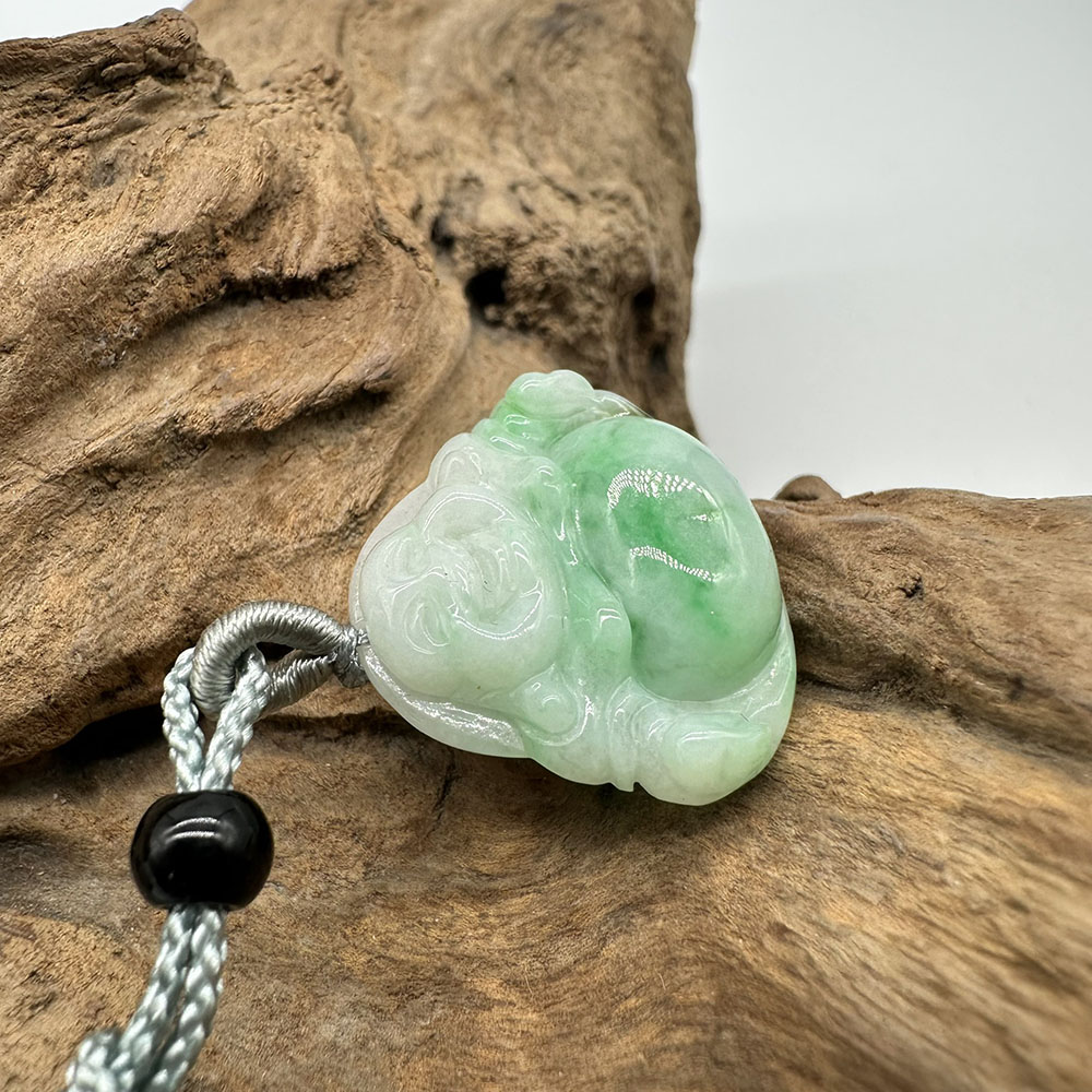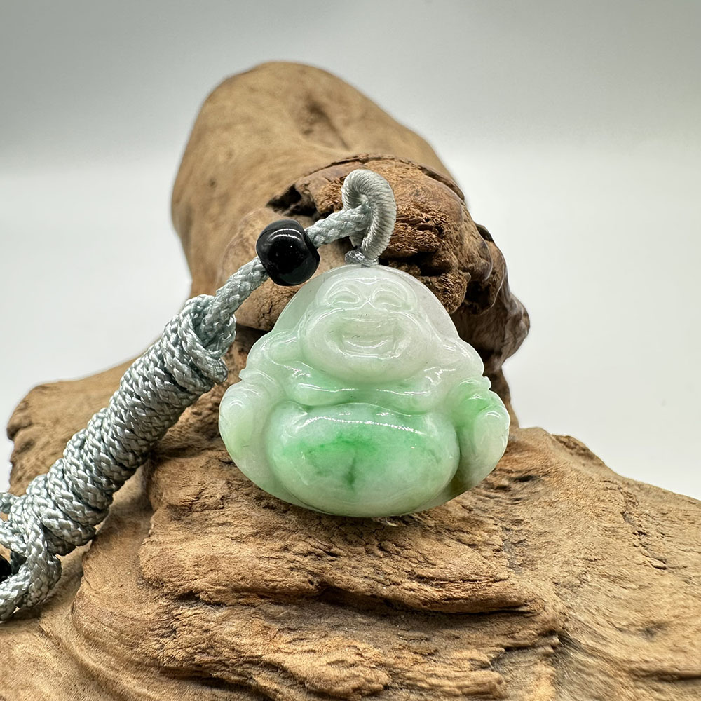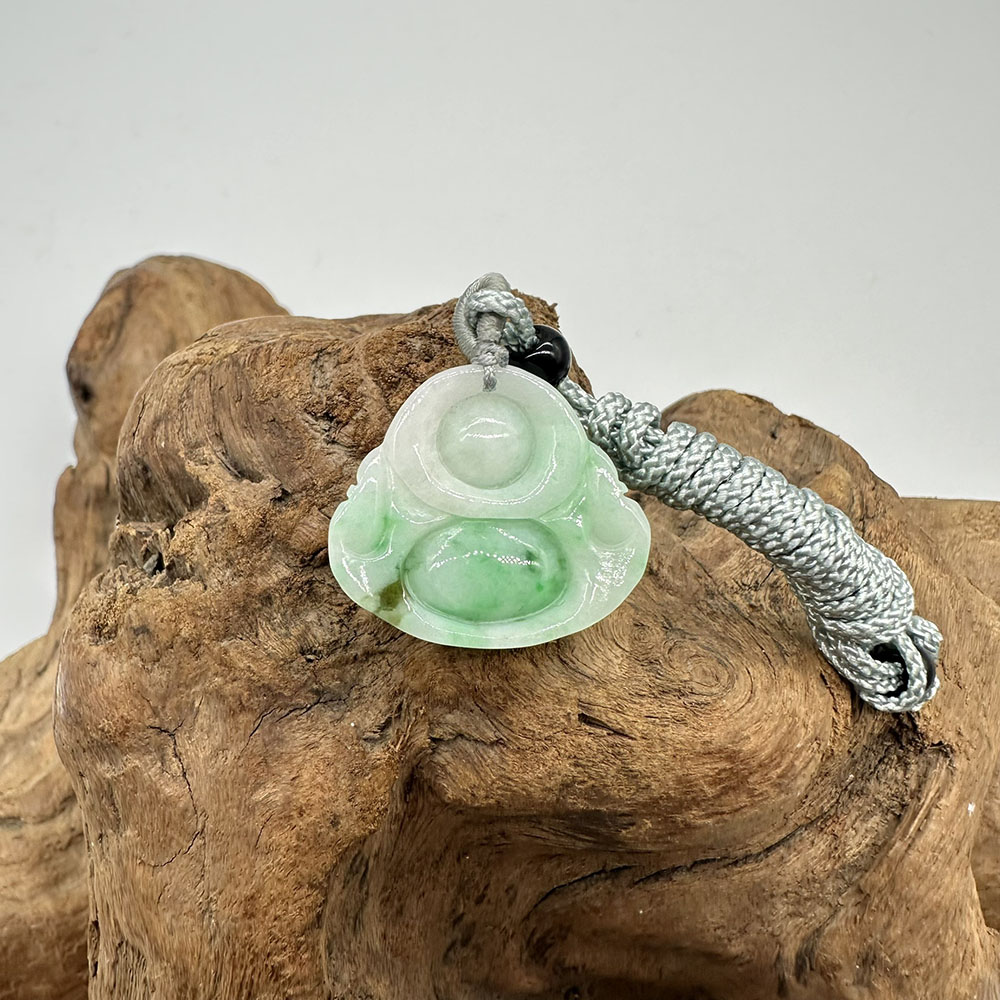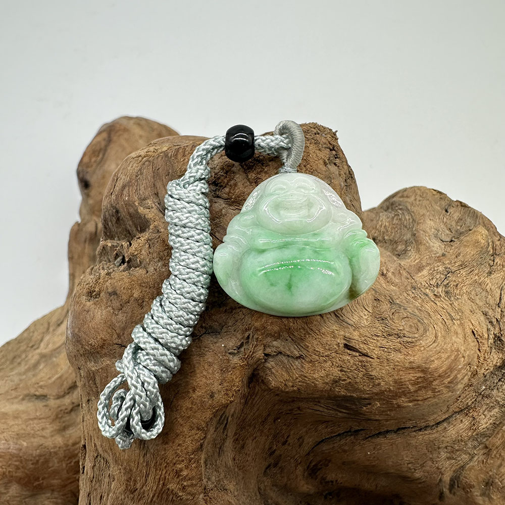 【肌容雪】天然緬甸A貨翠綠彌勒佛翡翠吊墜繩 編號347