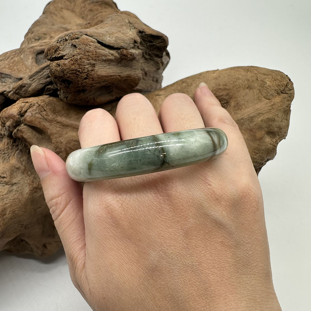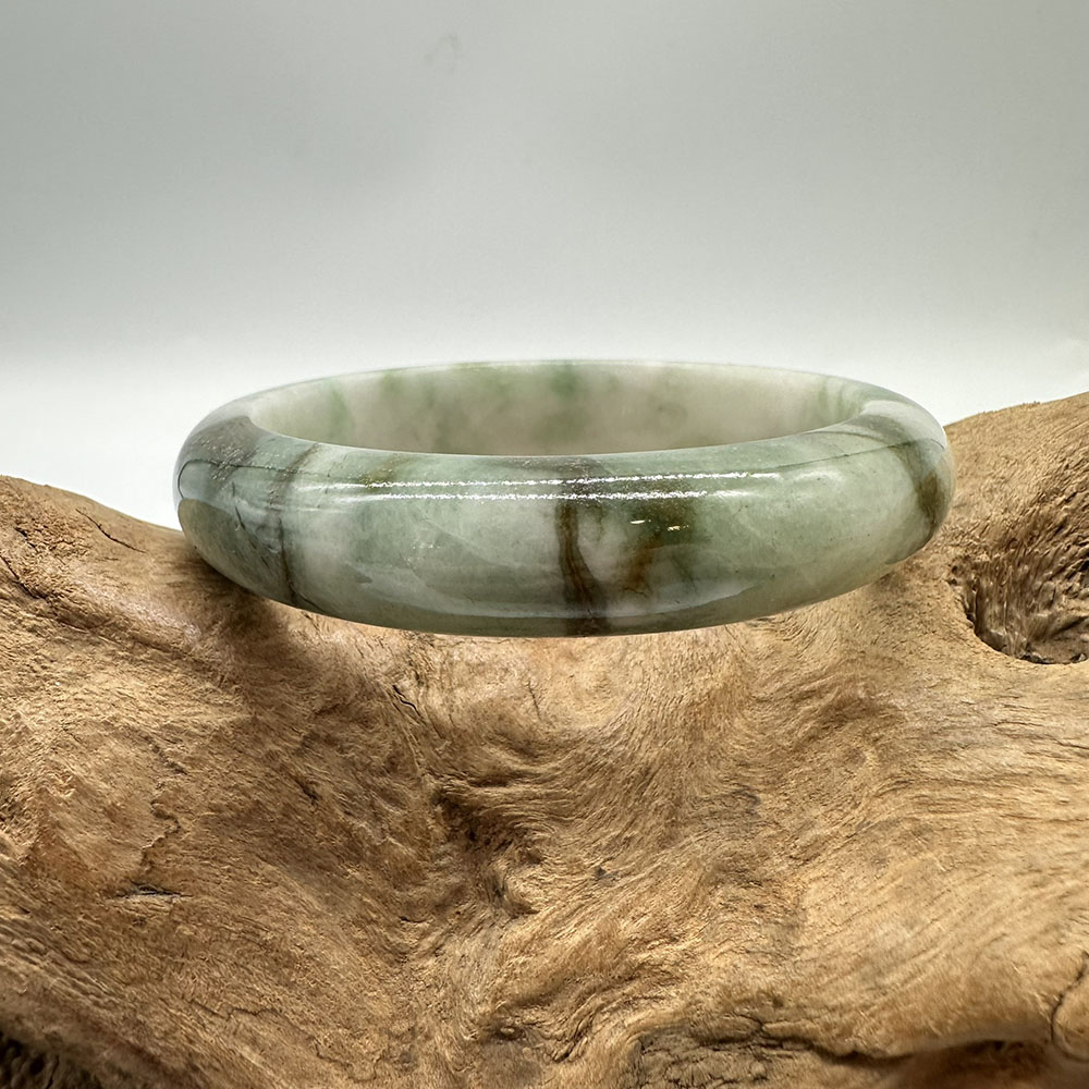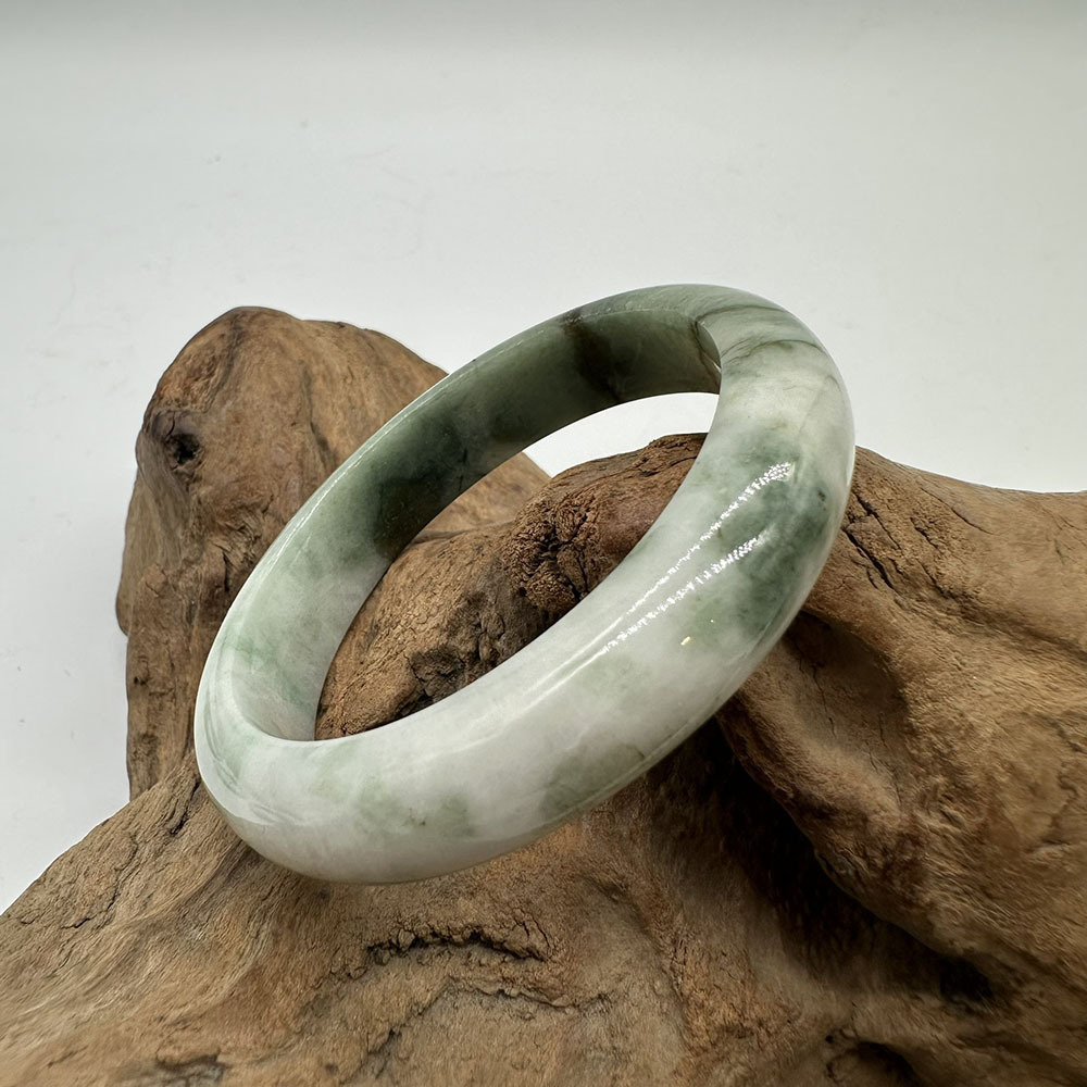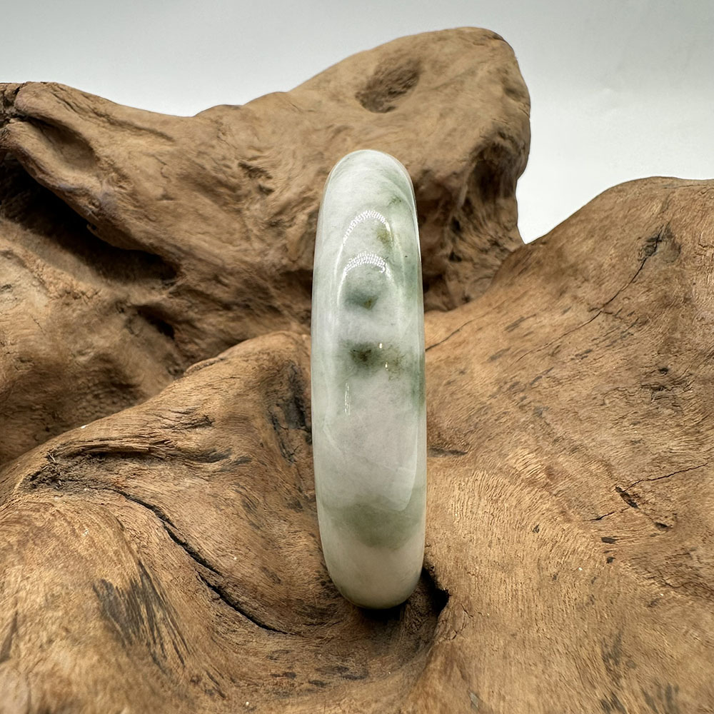 【肌容雪】天然緬甸A貨翡翠飄花平安鐲 編號355(鐲圍54.9mm#17號)