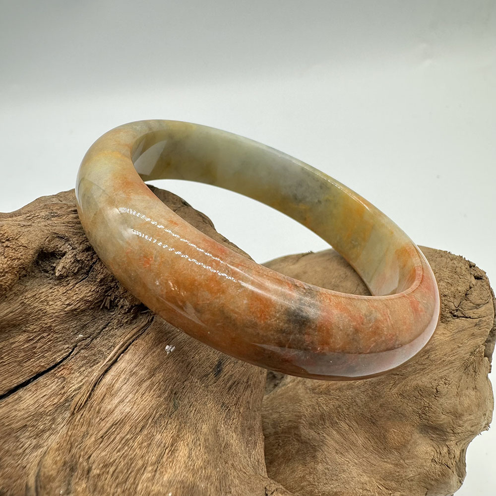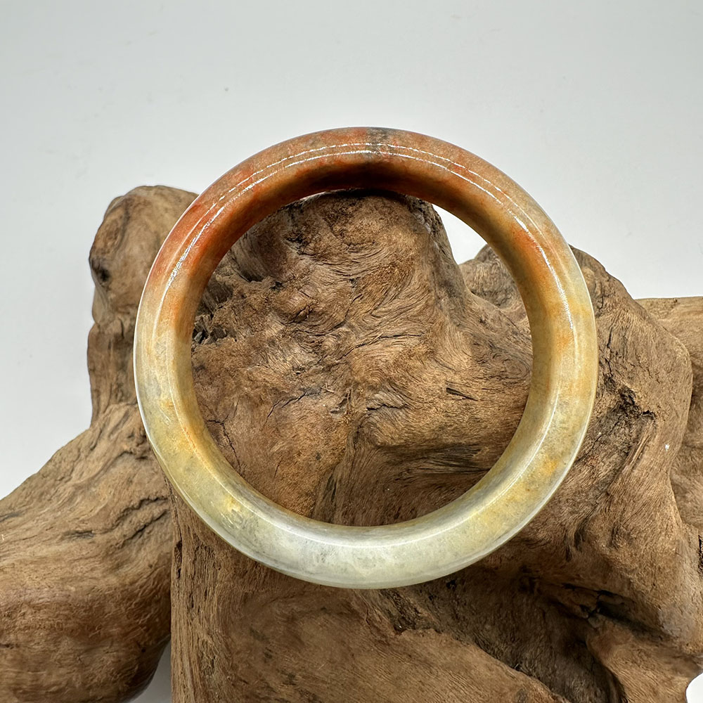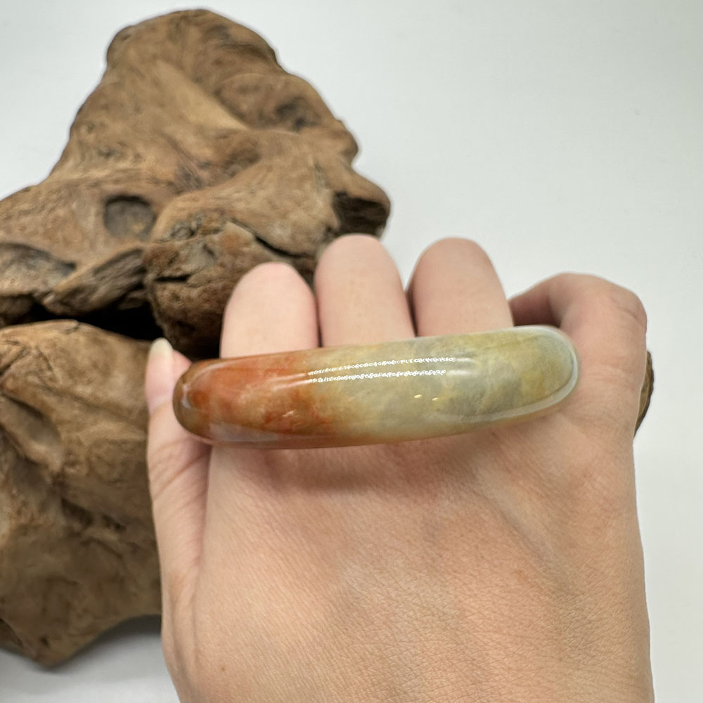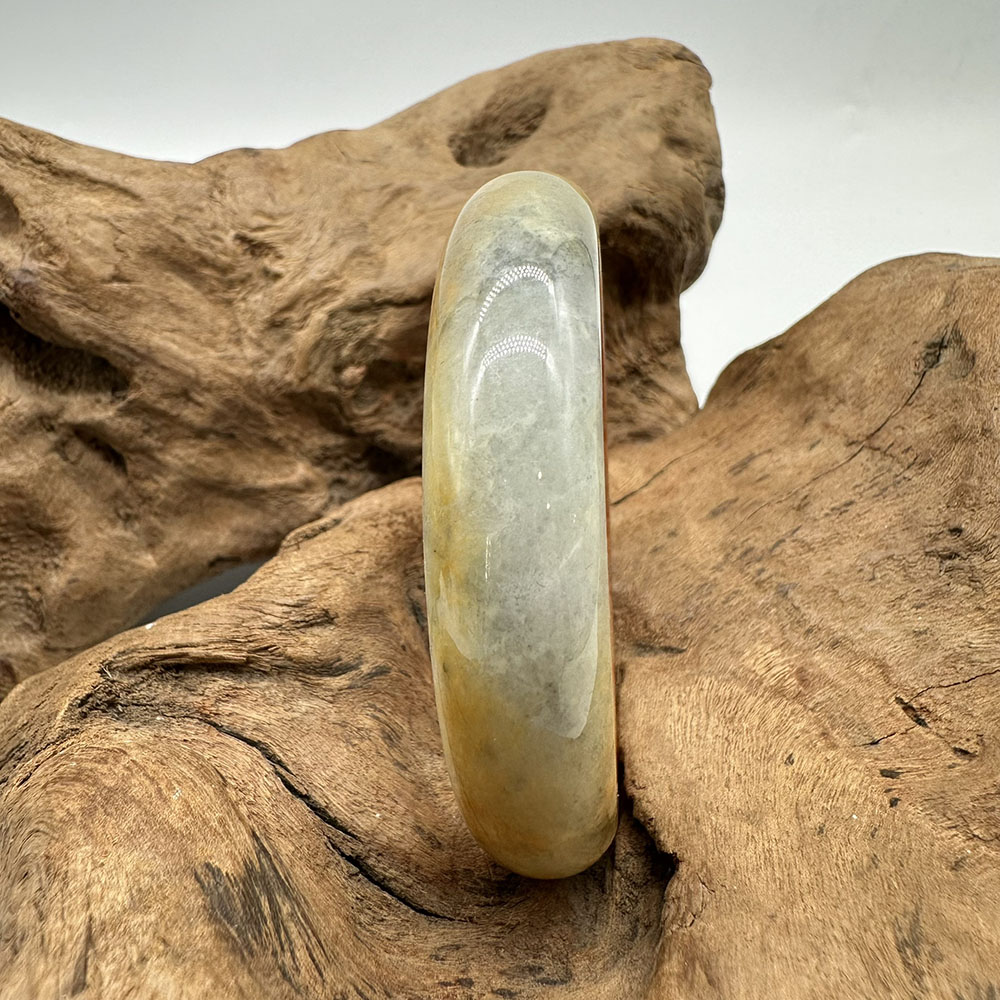 【肌容雪】天然緬甸A貨翡翠糯冰黃翡烏雞平安鐲 編號359(鐲圍59.2mm#18.5號)
