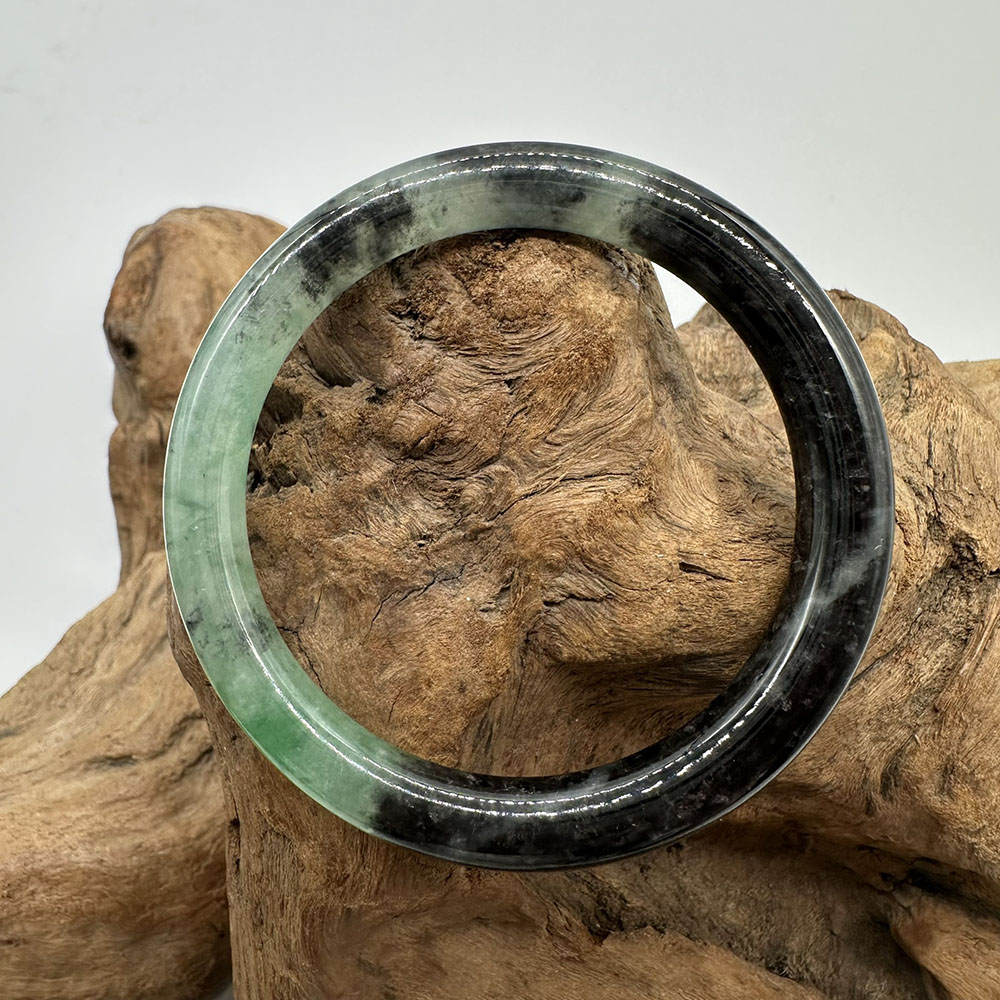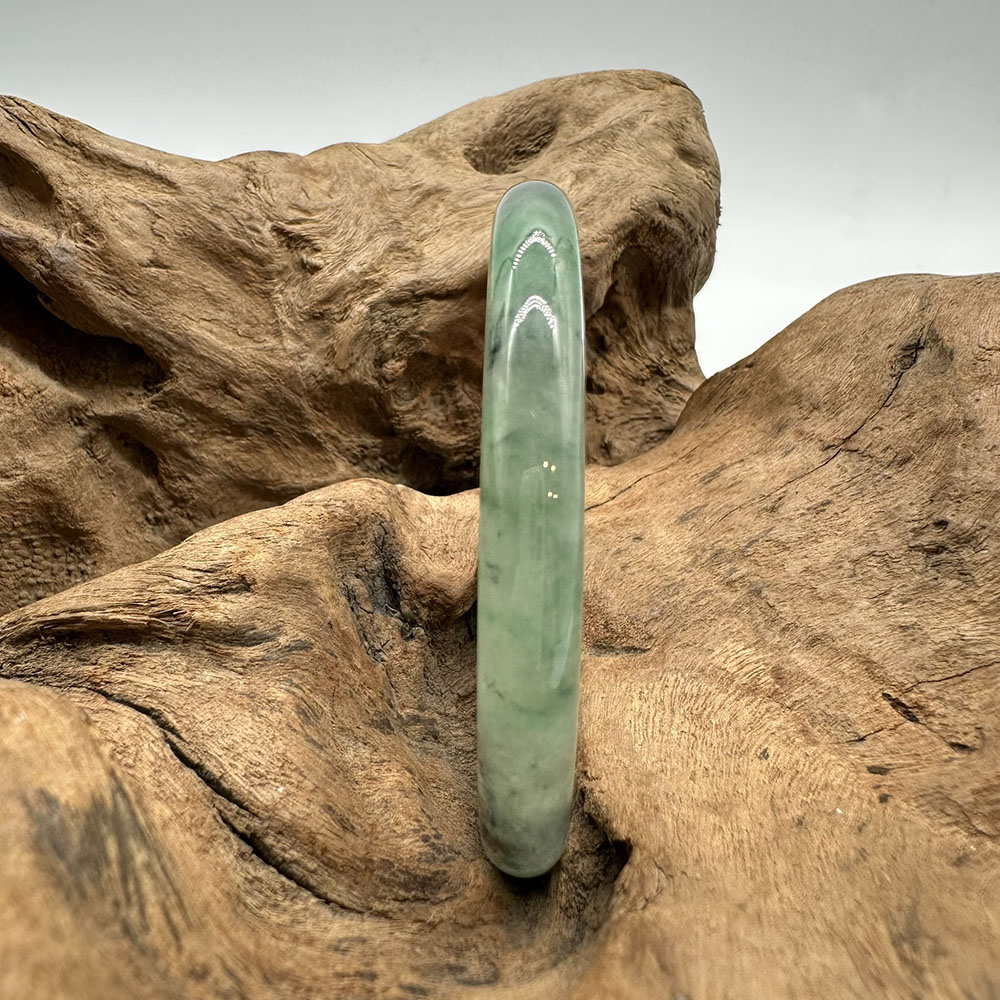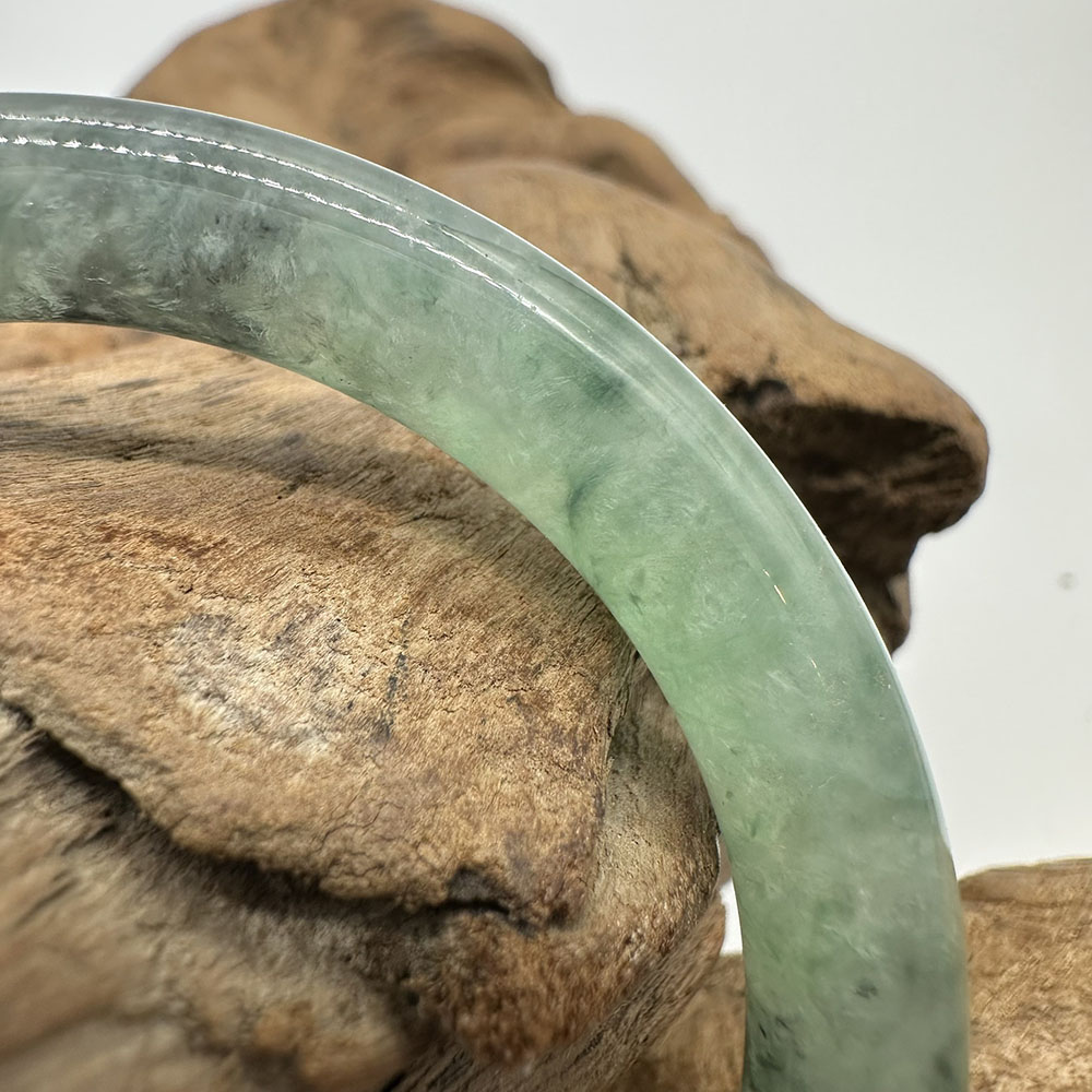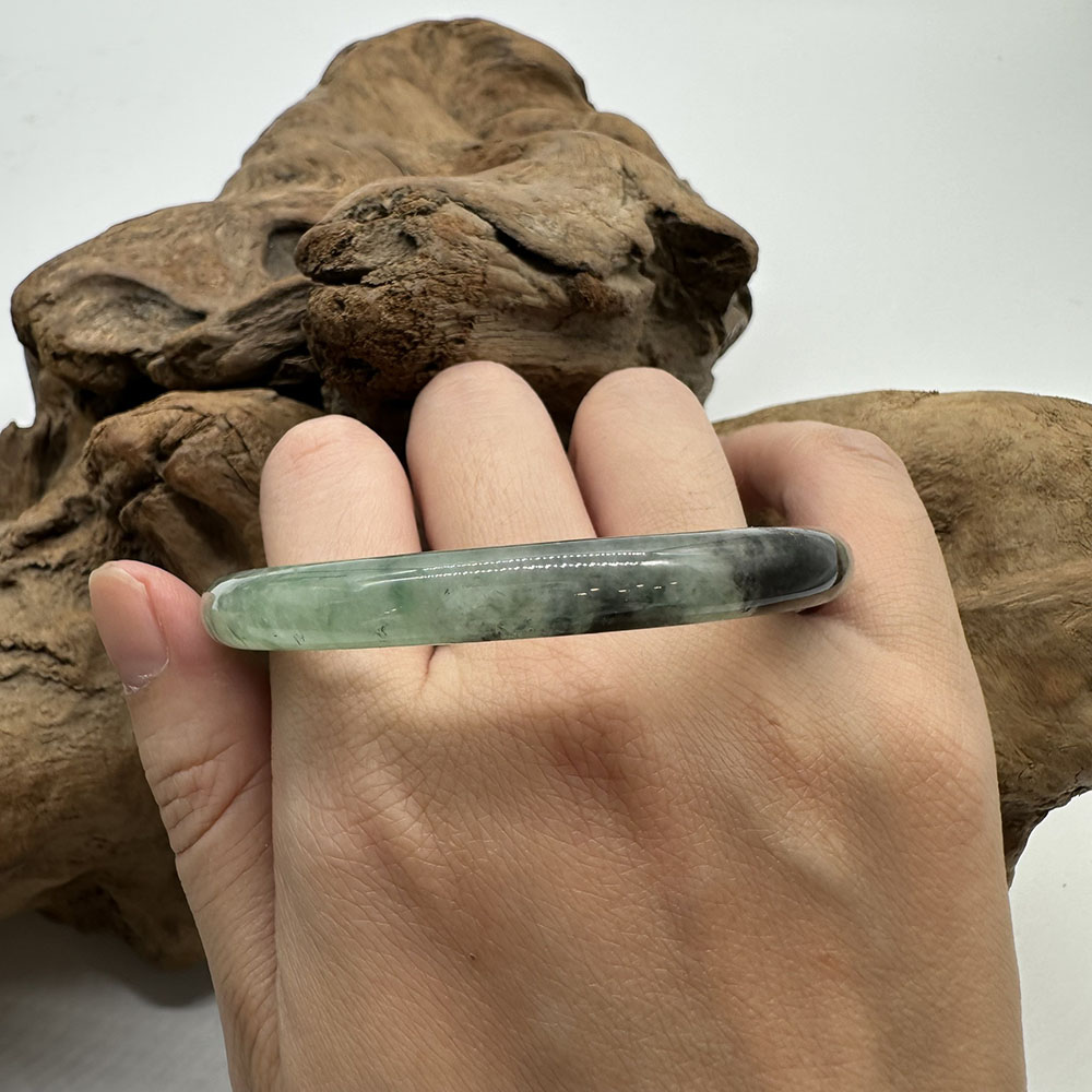【肌容雪】天然緬甸A貨翡翠冰種綠飄花烏雞美人條手鐲 編號428(鐲圍54.6mm#17號)