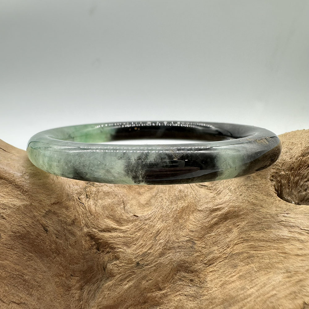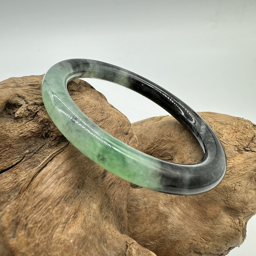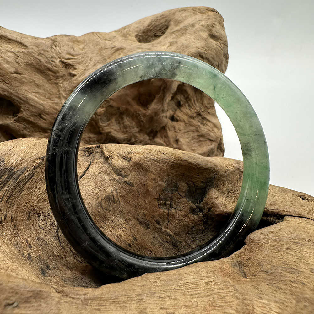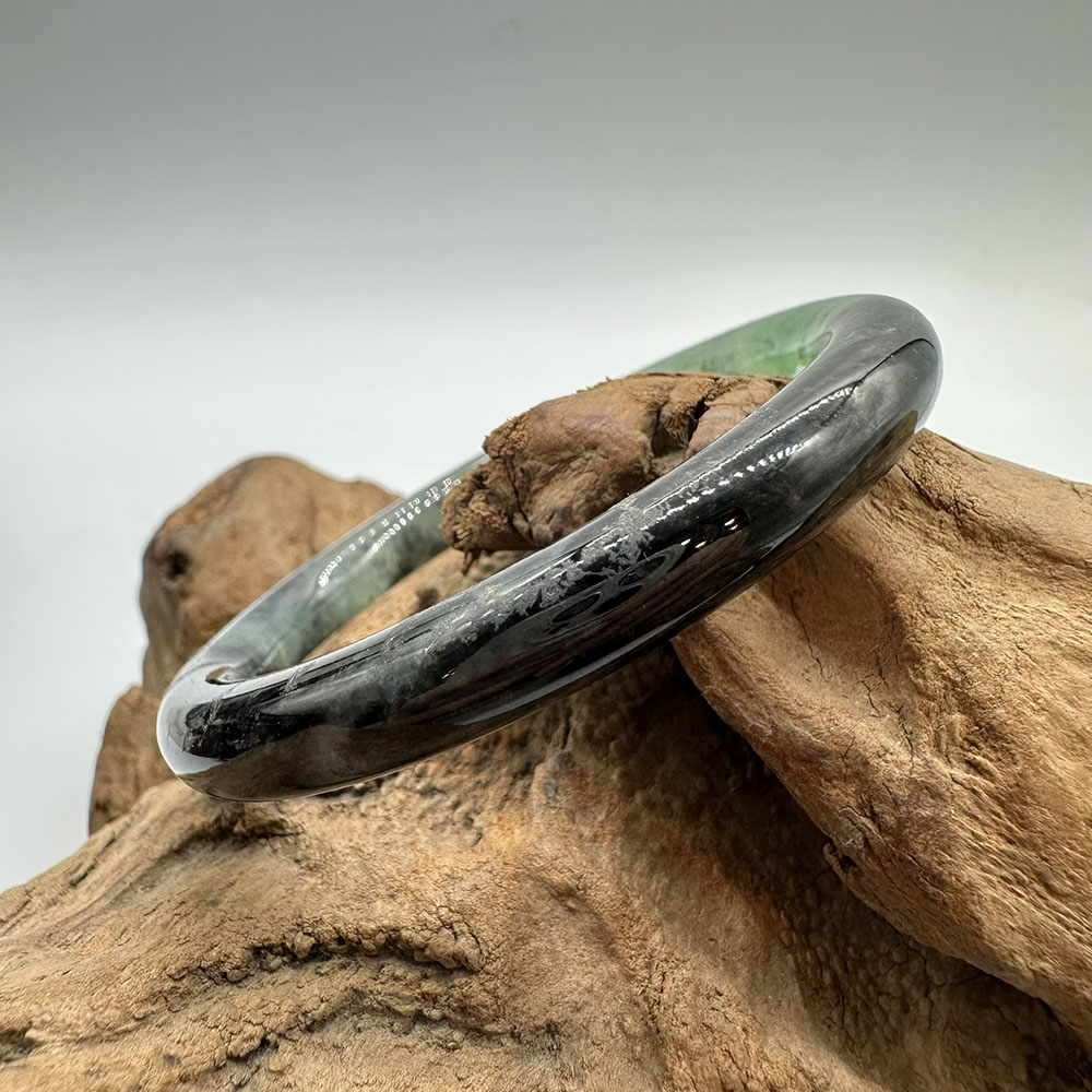 【肌容雪】天然緬甸A貨翡翠冰種綠飄花烏雞美人條手鐲 編號428(鐲圍54.6mm#17號)