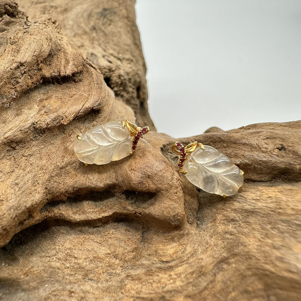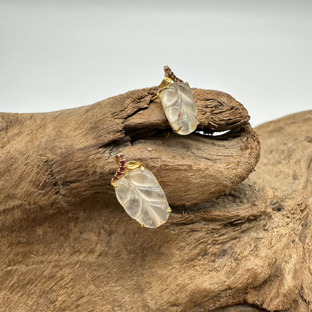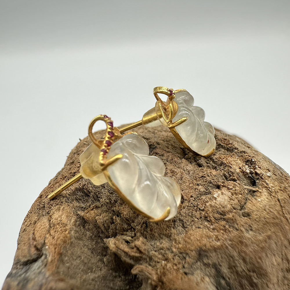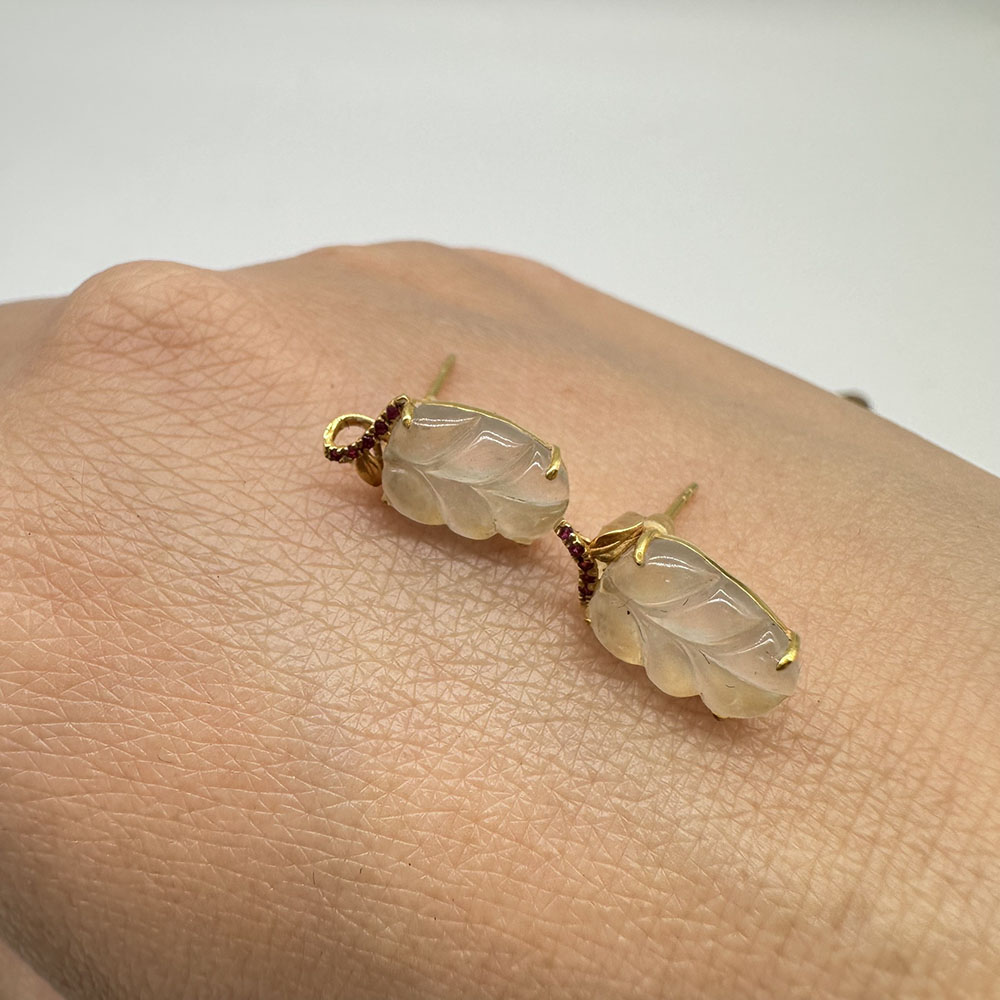 【肌容雪】天然緬甸A貨18K冰翡翠樹葉造型耳針 編號478