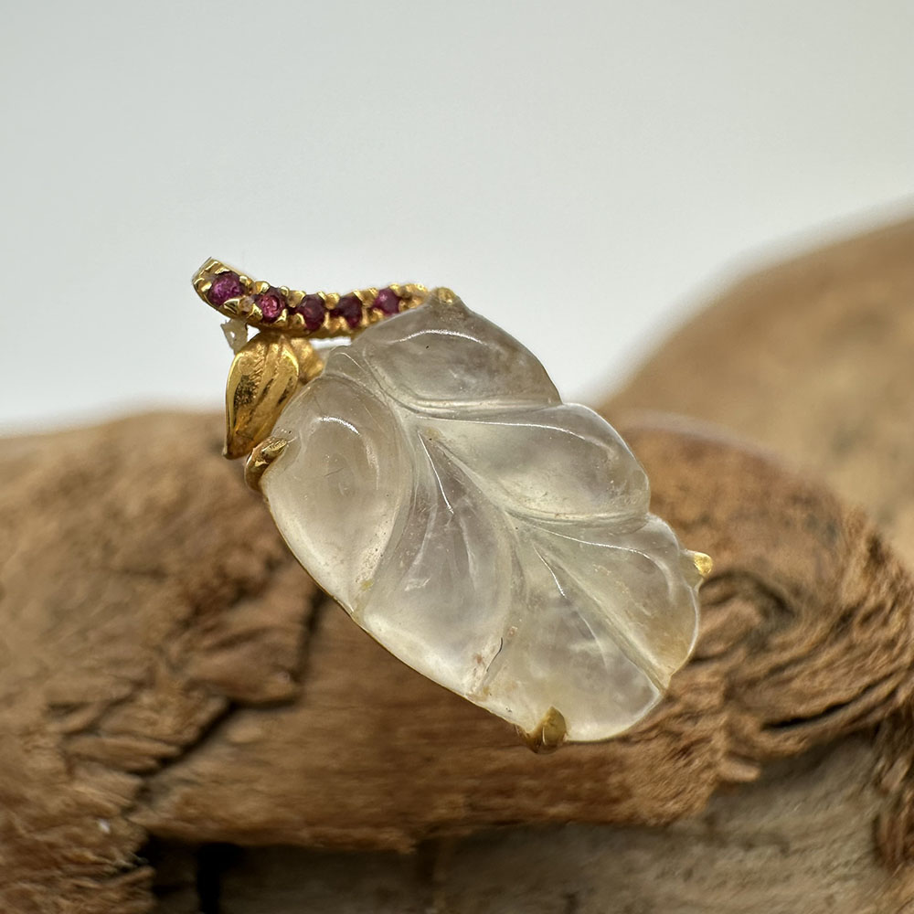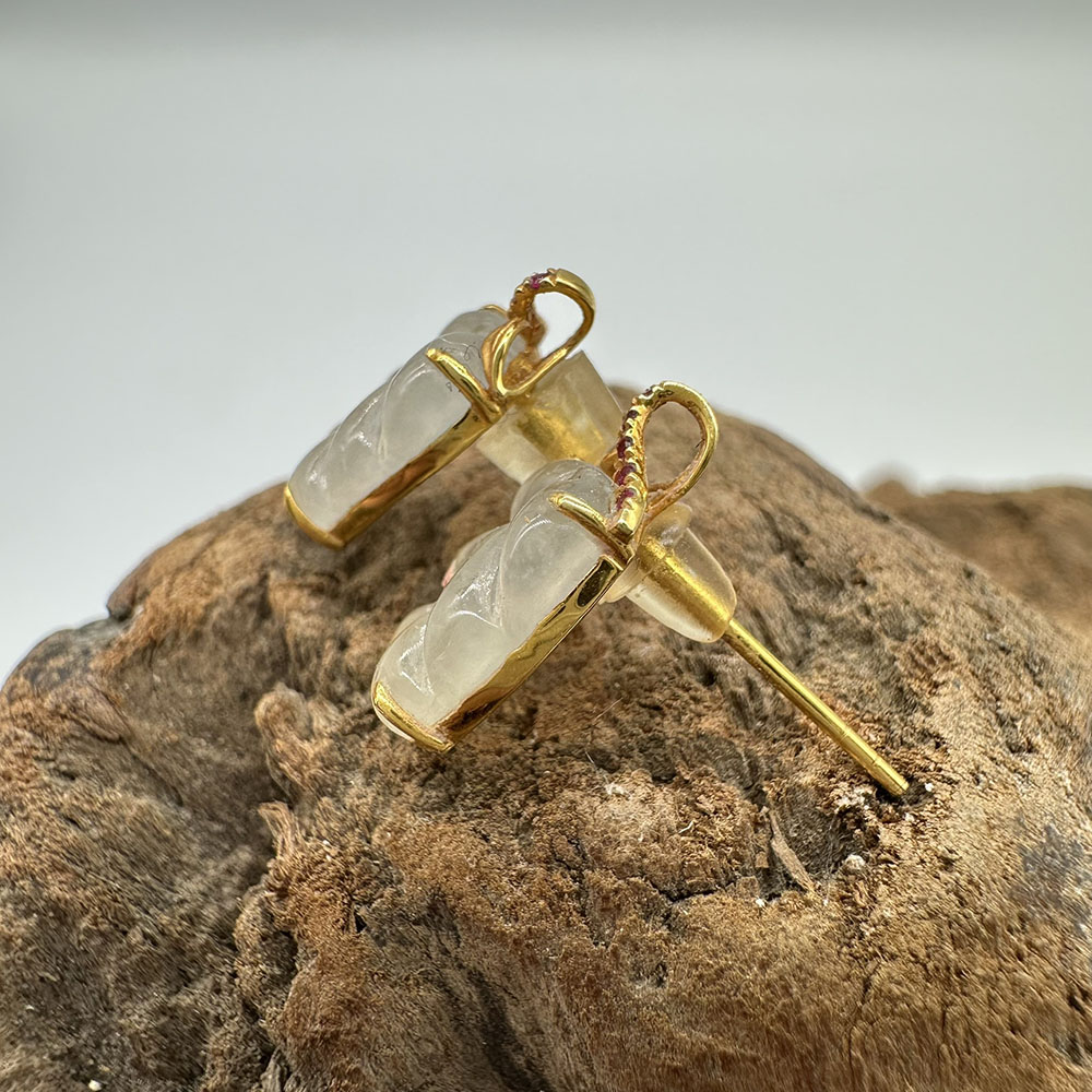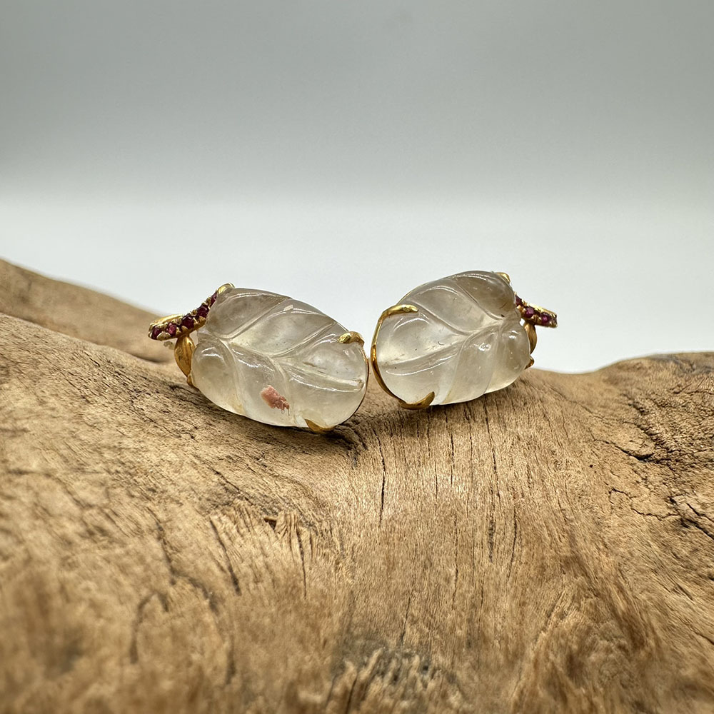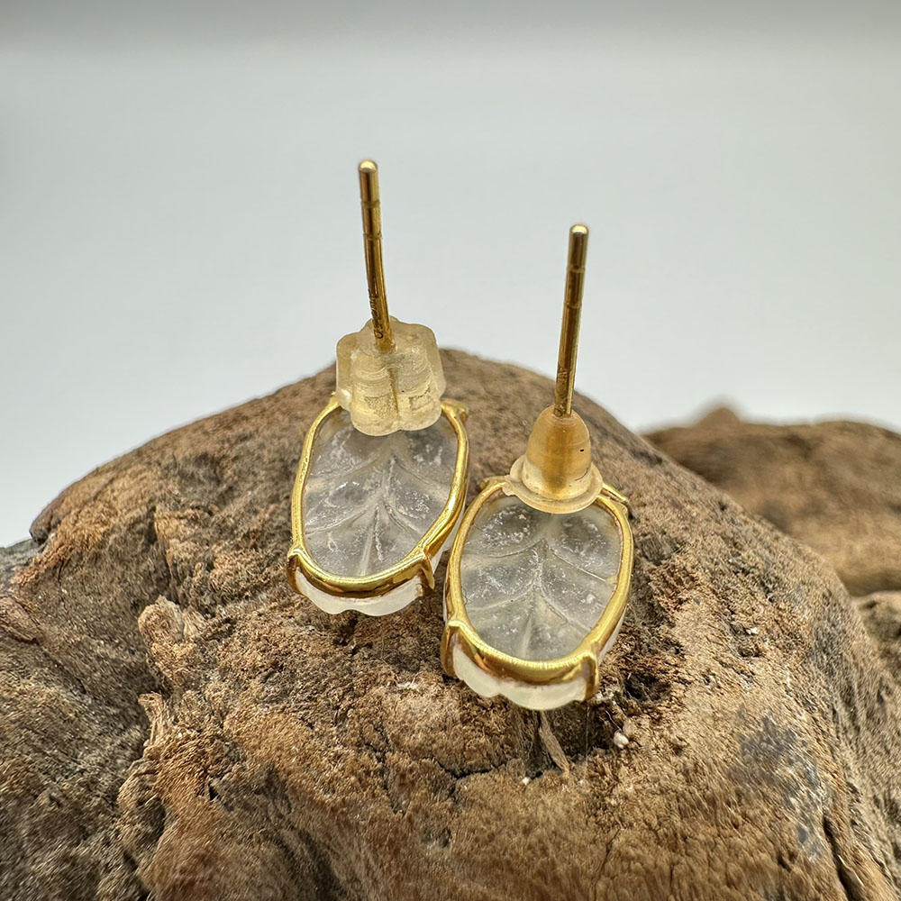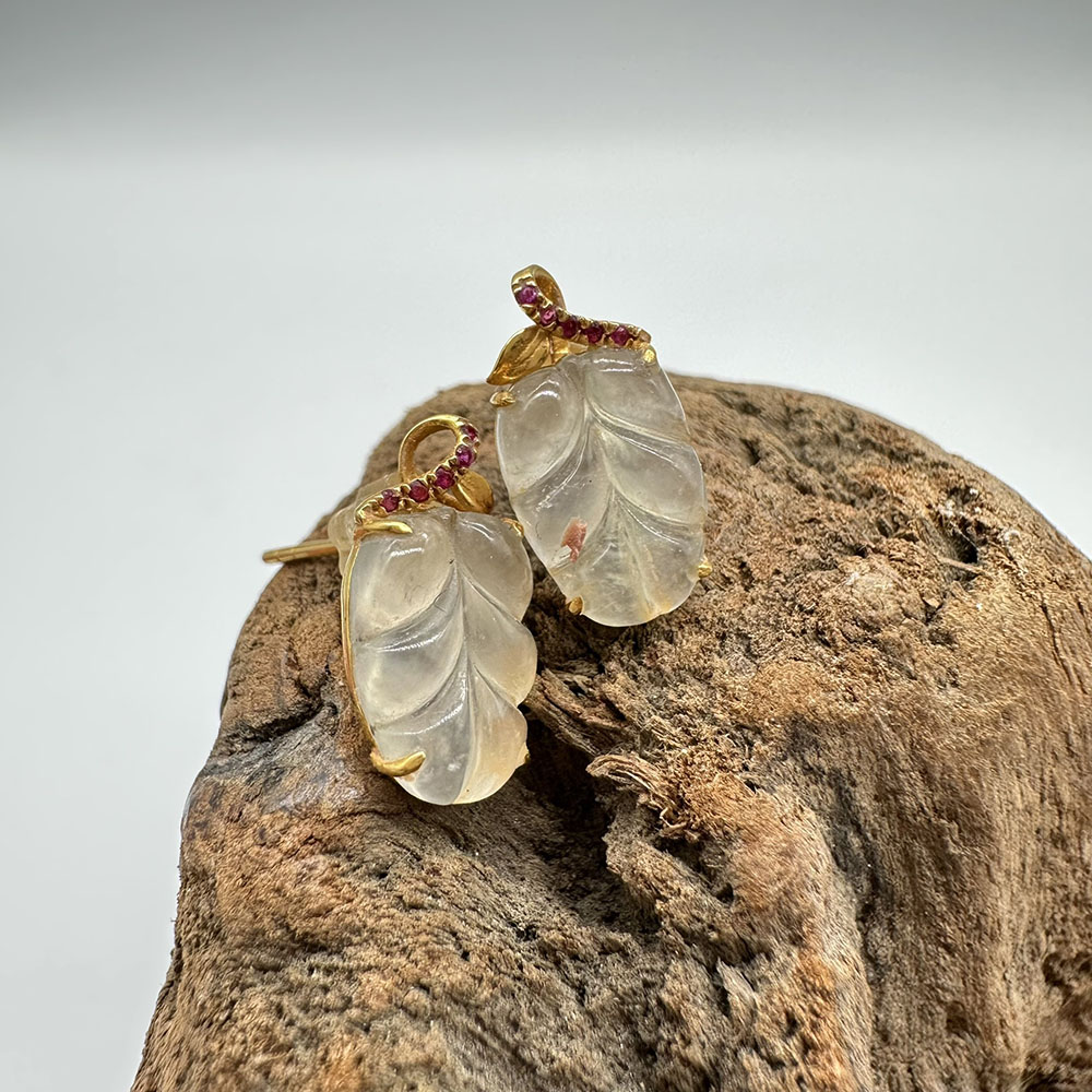 【肌容雪】天然緬甸A貨18K冰翡翠樹葉造型耳針 編號478