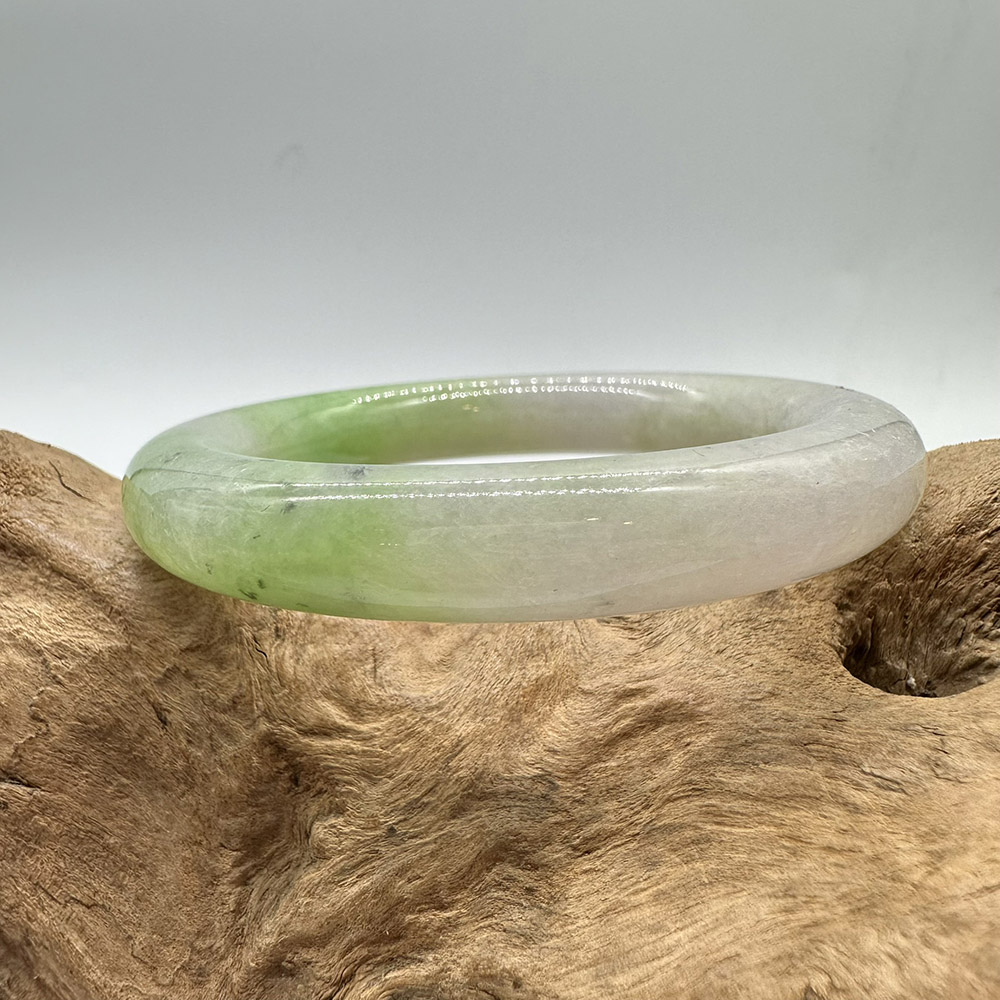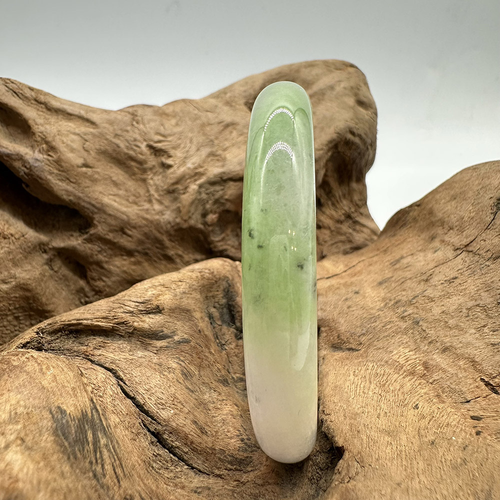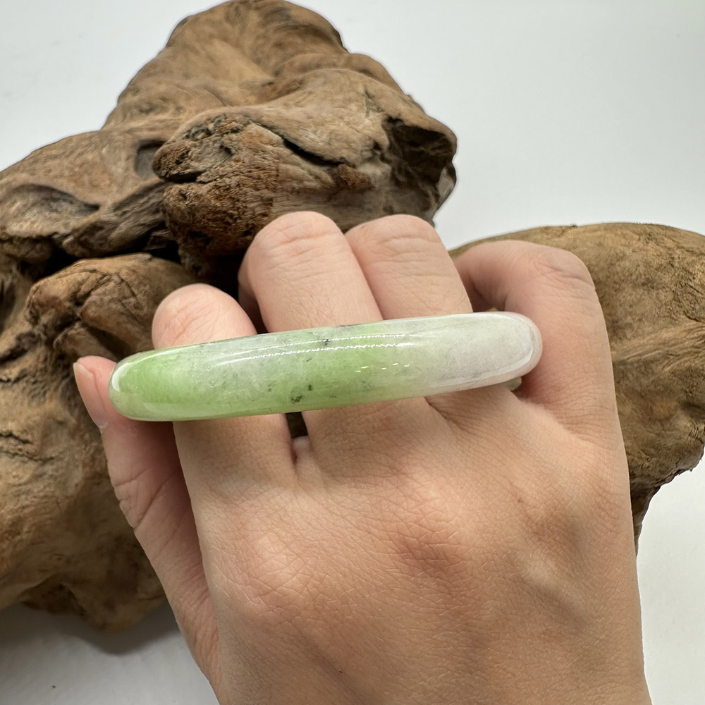 【肌容雪】天然緬甸A貨翠綠春彩翡翠圓條手鐲 編號543(鐲圍53.6mm#17.5號)