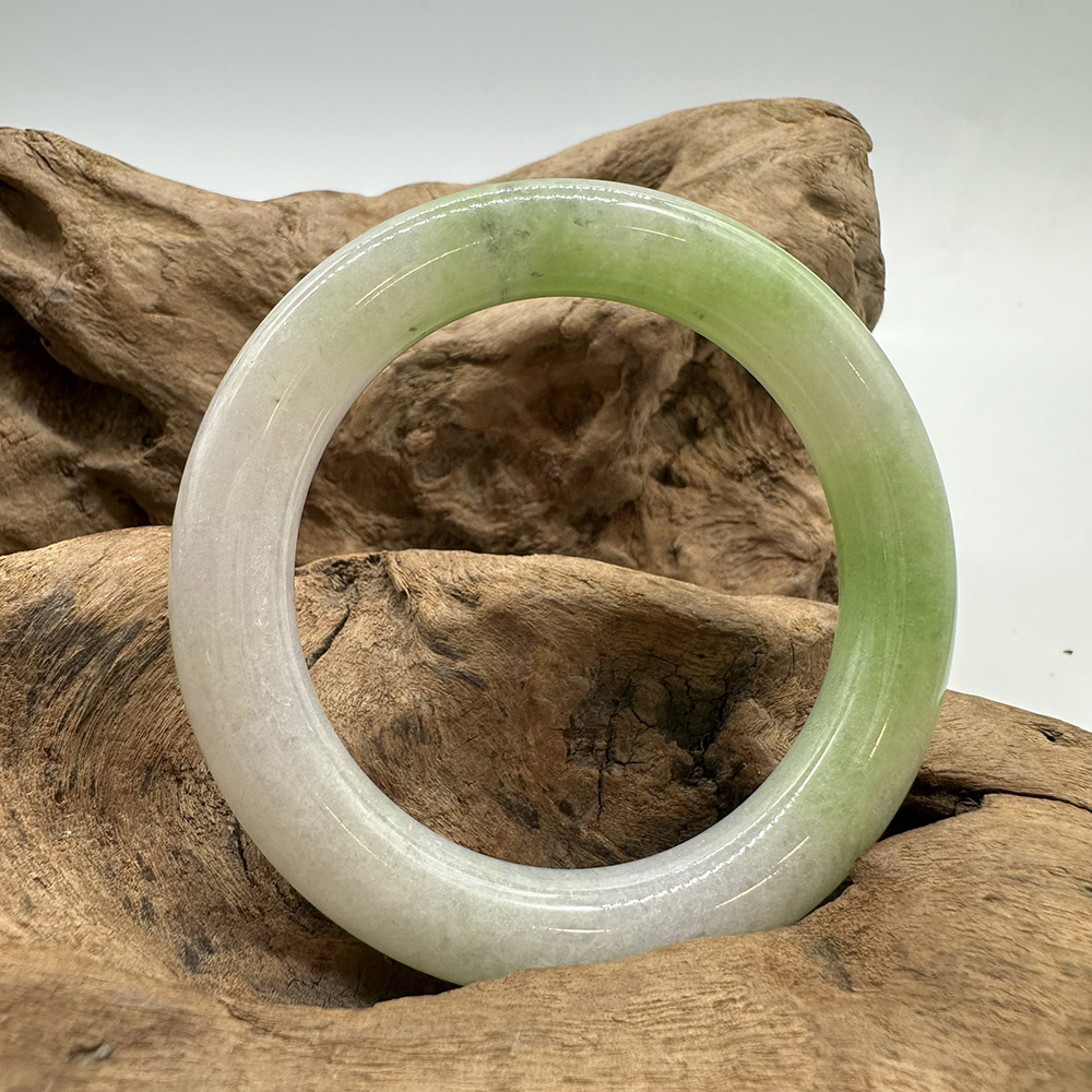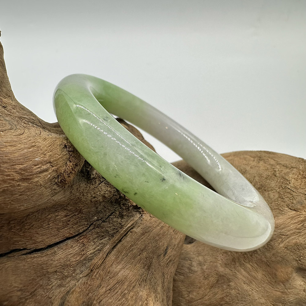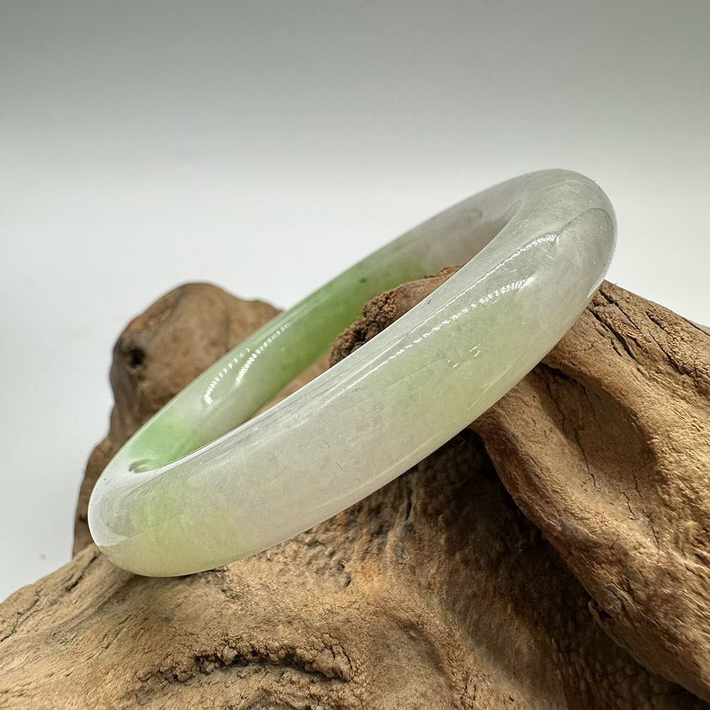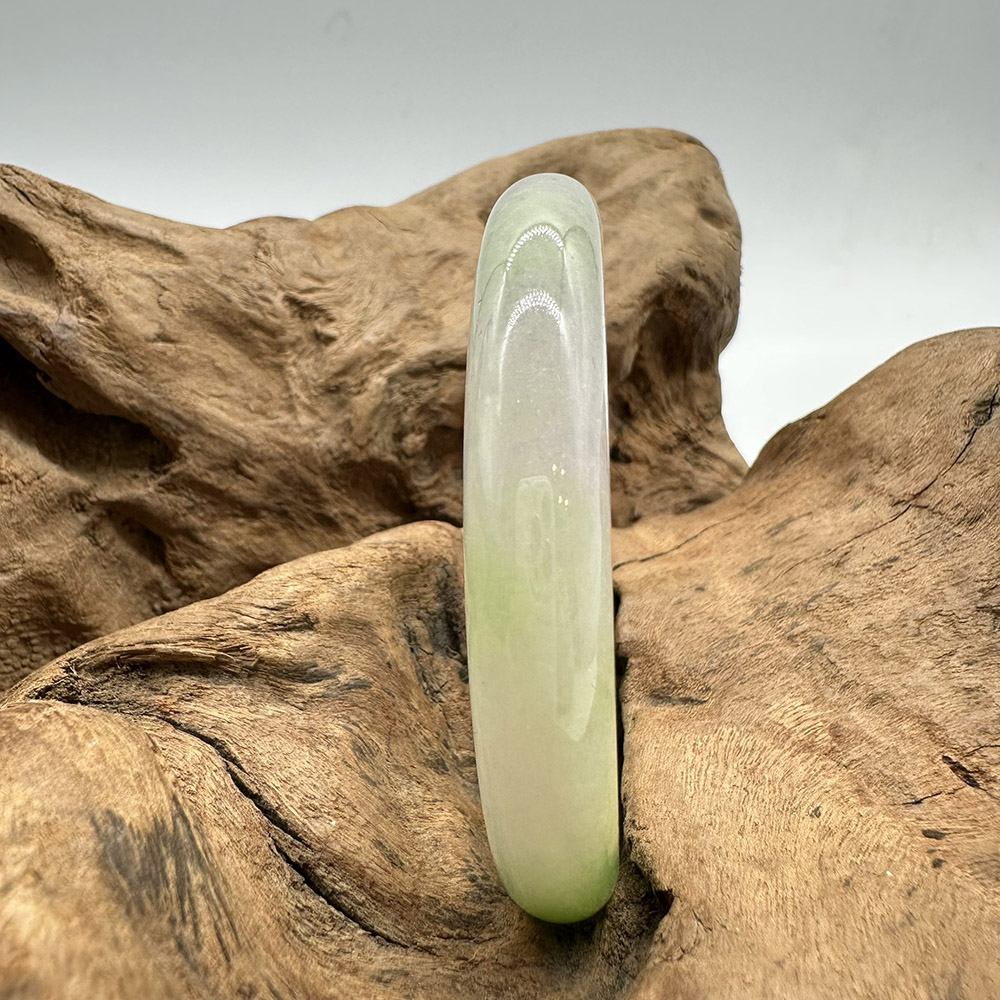 【肌容雪】天然緬甸A貨翠綠春彩翡翠圓條手鐲 編號543(鐲圍53.6mm#17.5號)