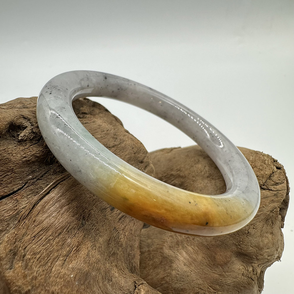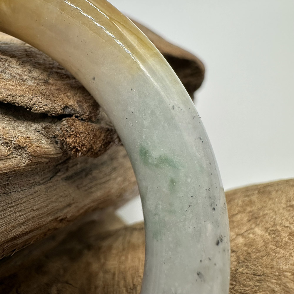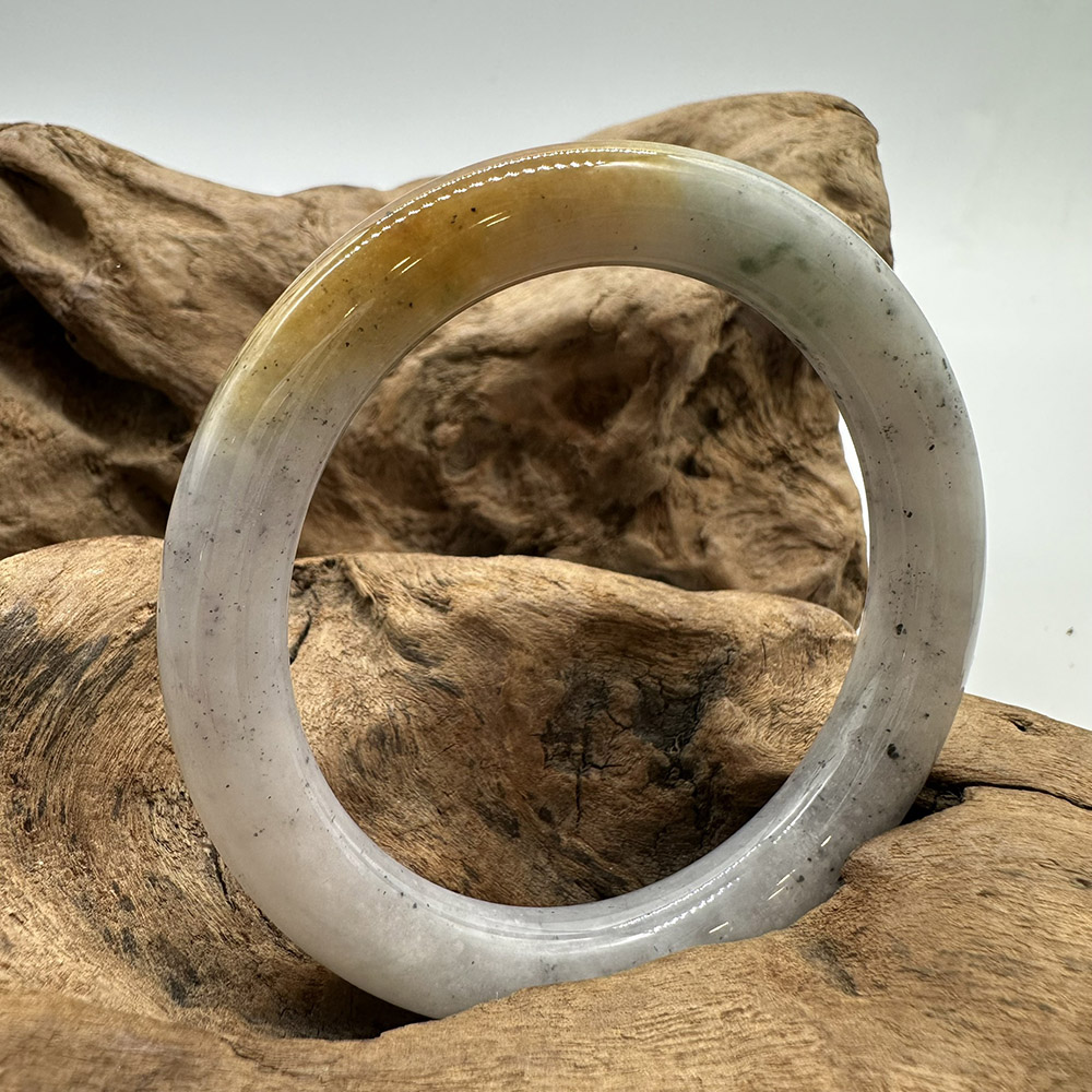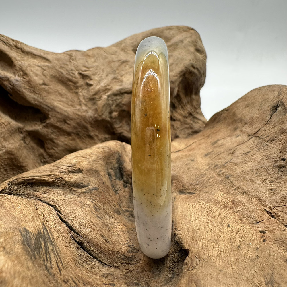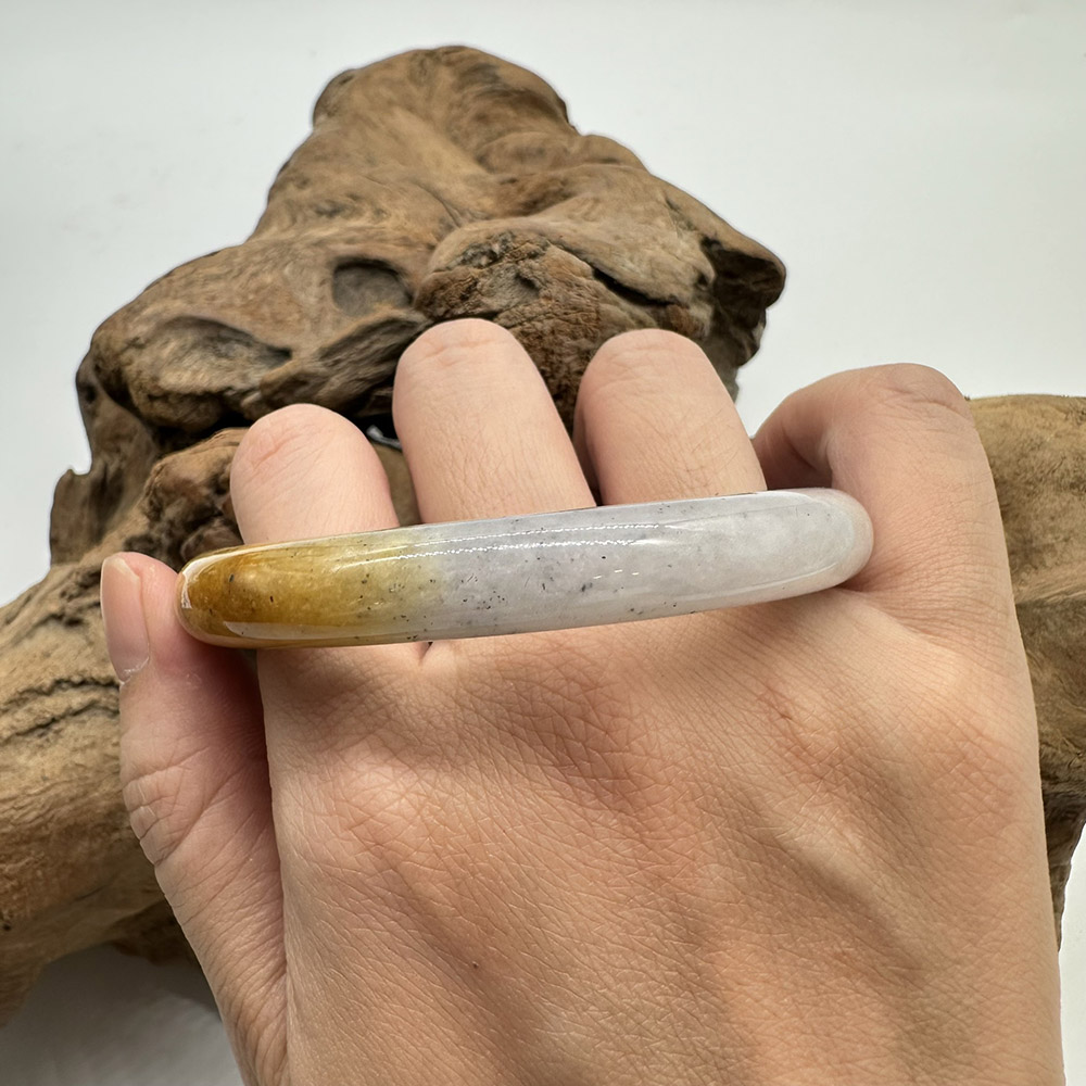 【肌容雪】天然緬甸A貨雞油黃烏雞翡翠圓條手鐲 編號614(鐲圍56.7mm#18號)