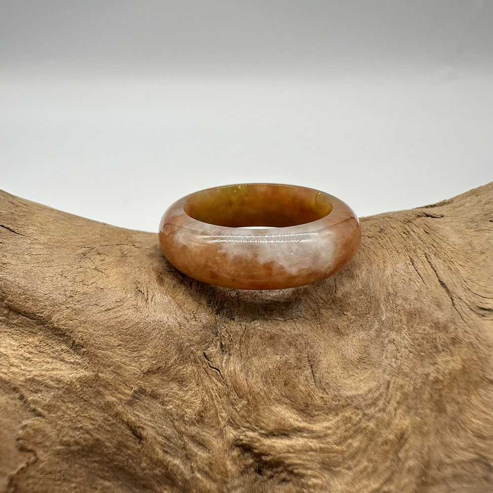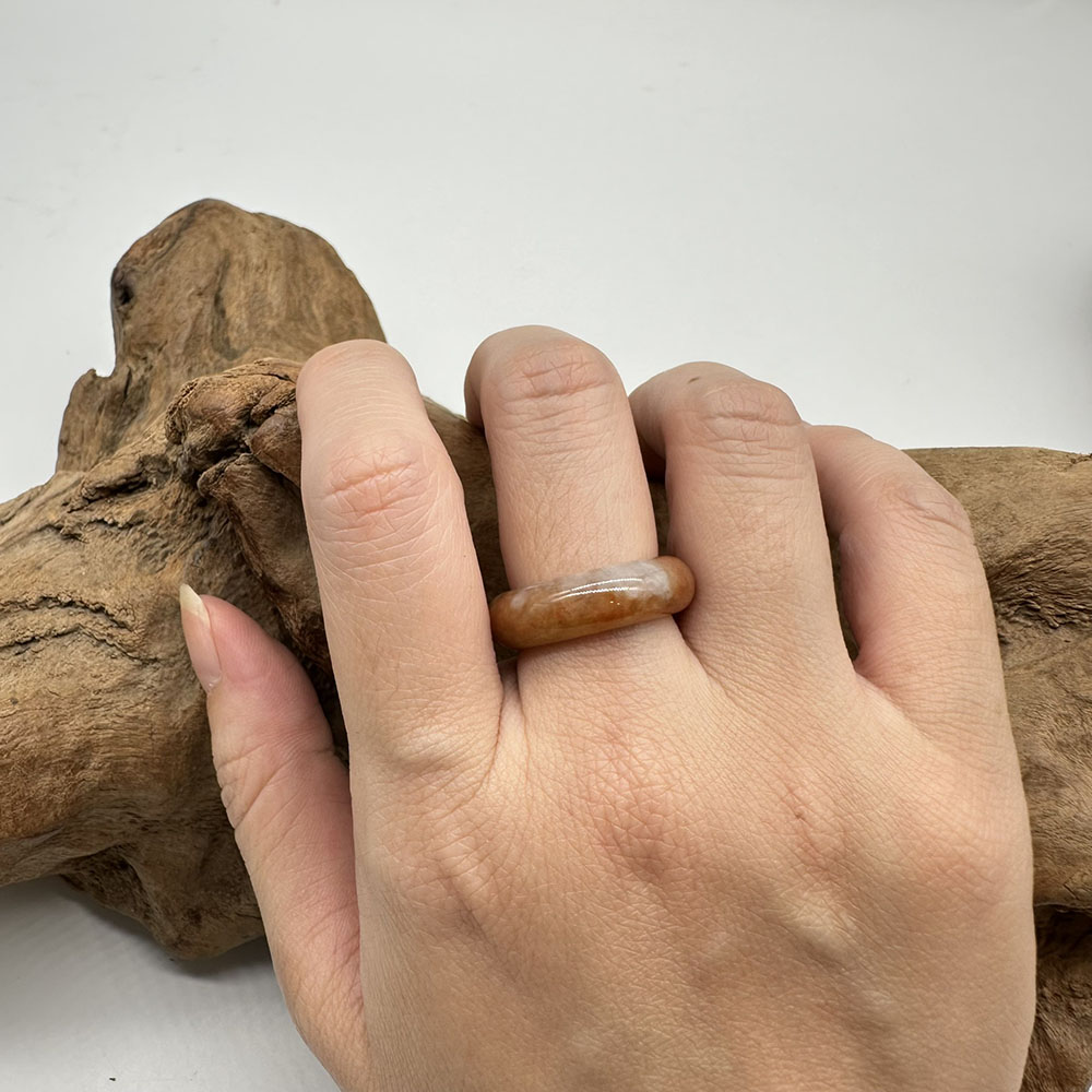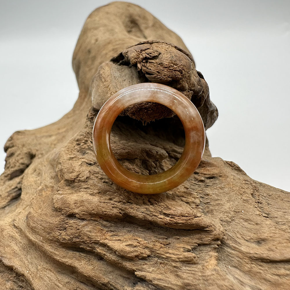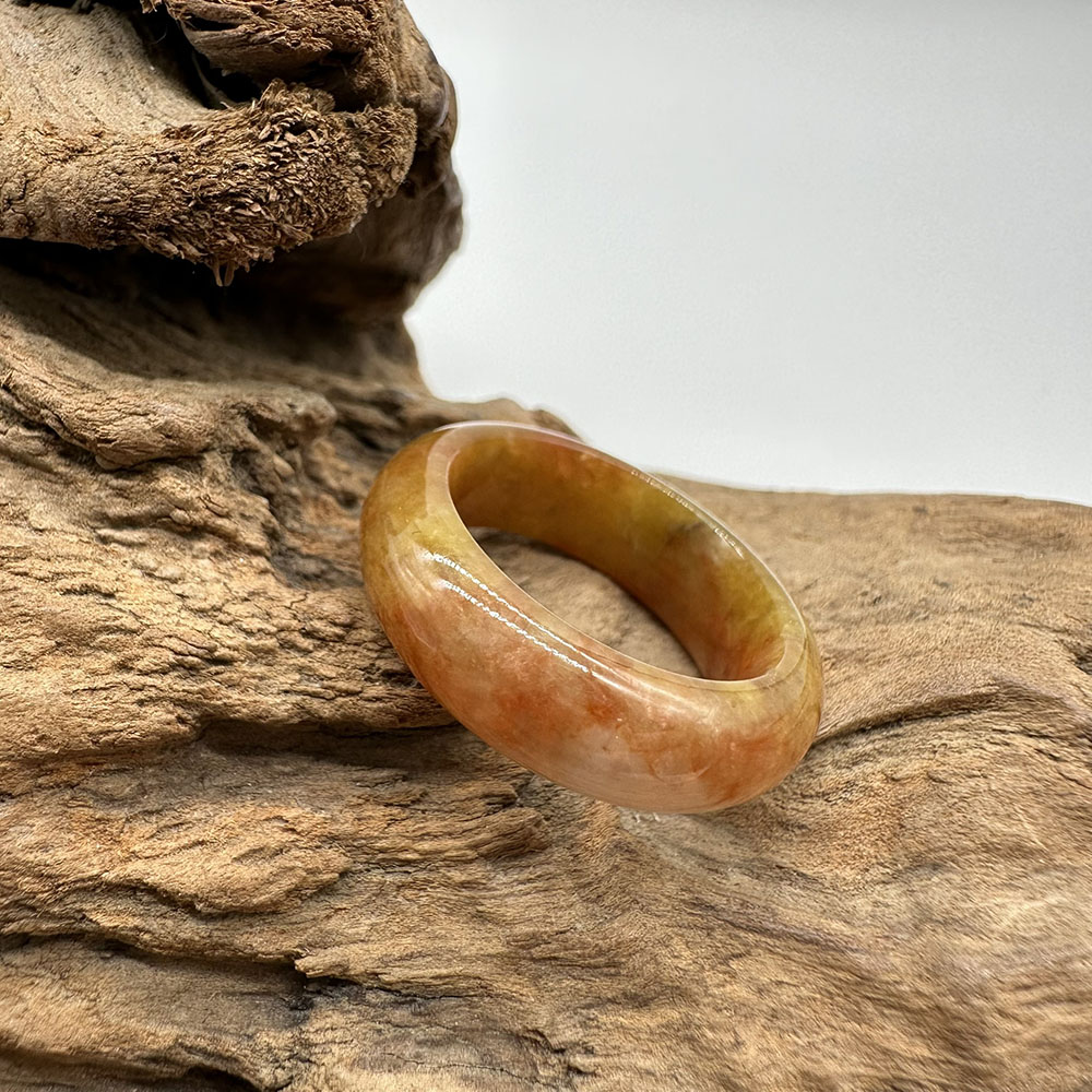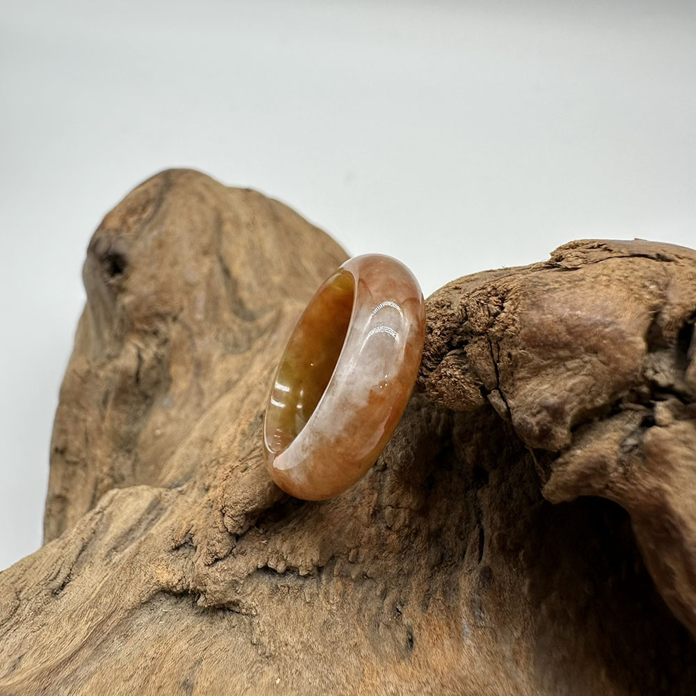 【肌容雪】天然緬甸A貨紅黃翡翠特色戒圈 編號886(戒圍17.5mm#12號)