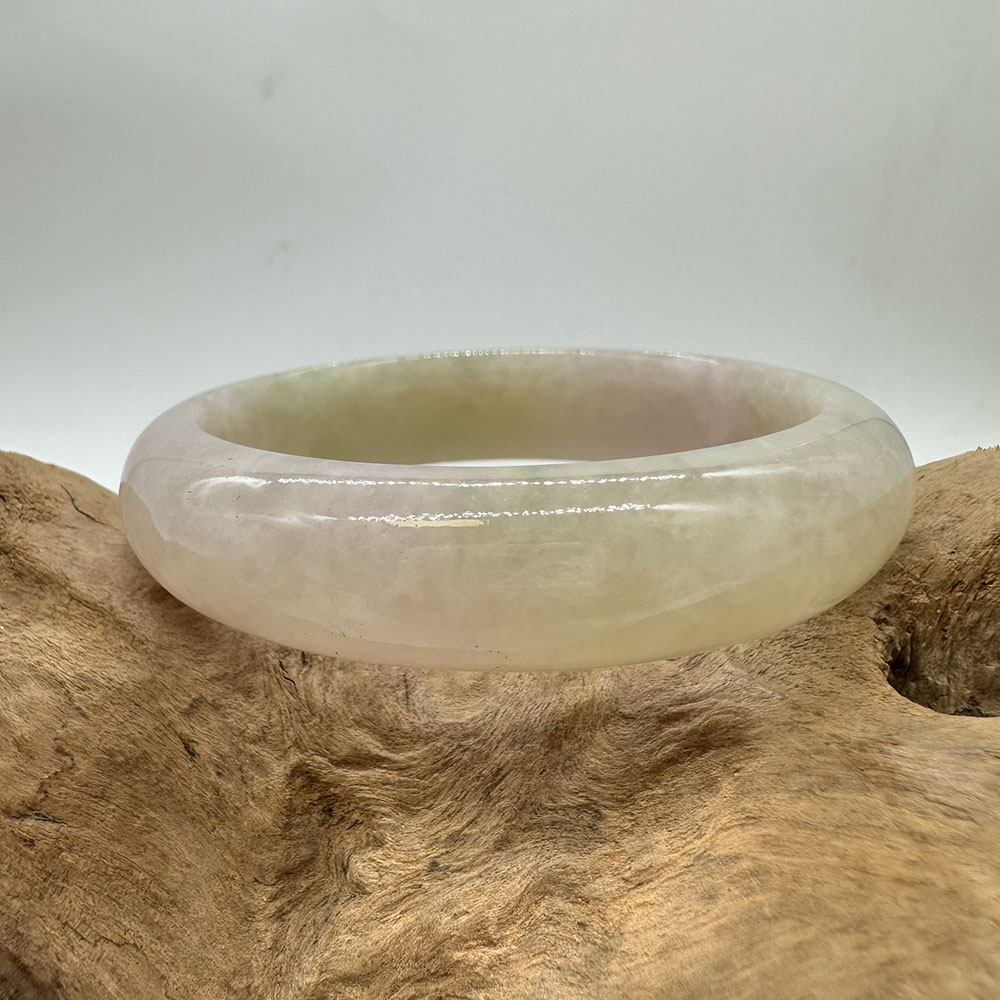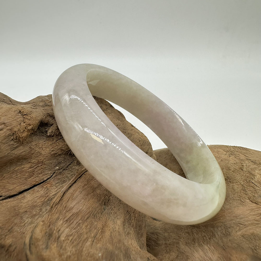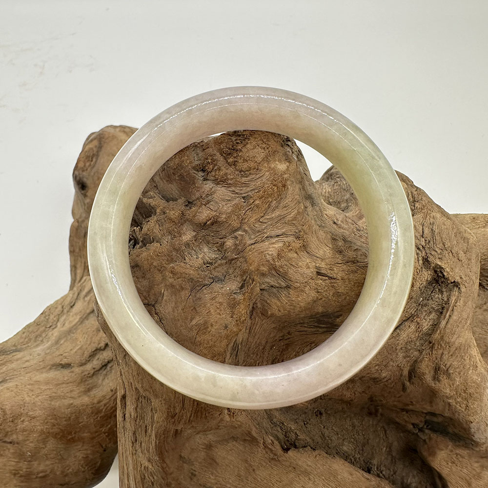 【肌容雪】緬甸天然A貨翡翠春彩奶油粉紫平安鐲 編號776(鐲圍56.7mm#18號)