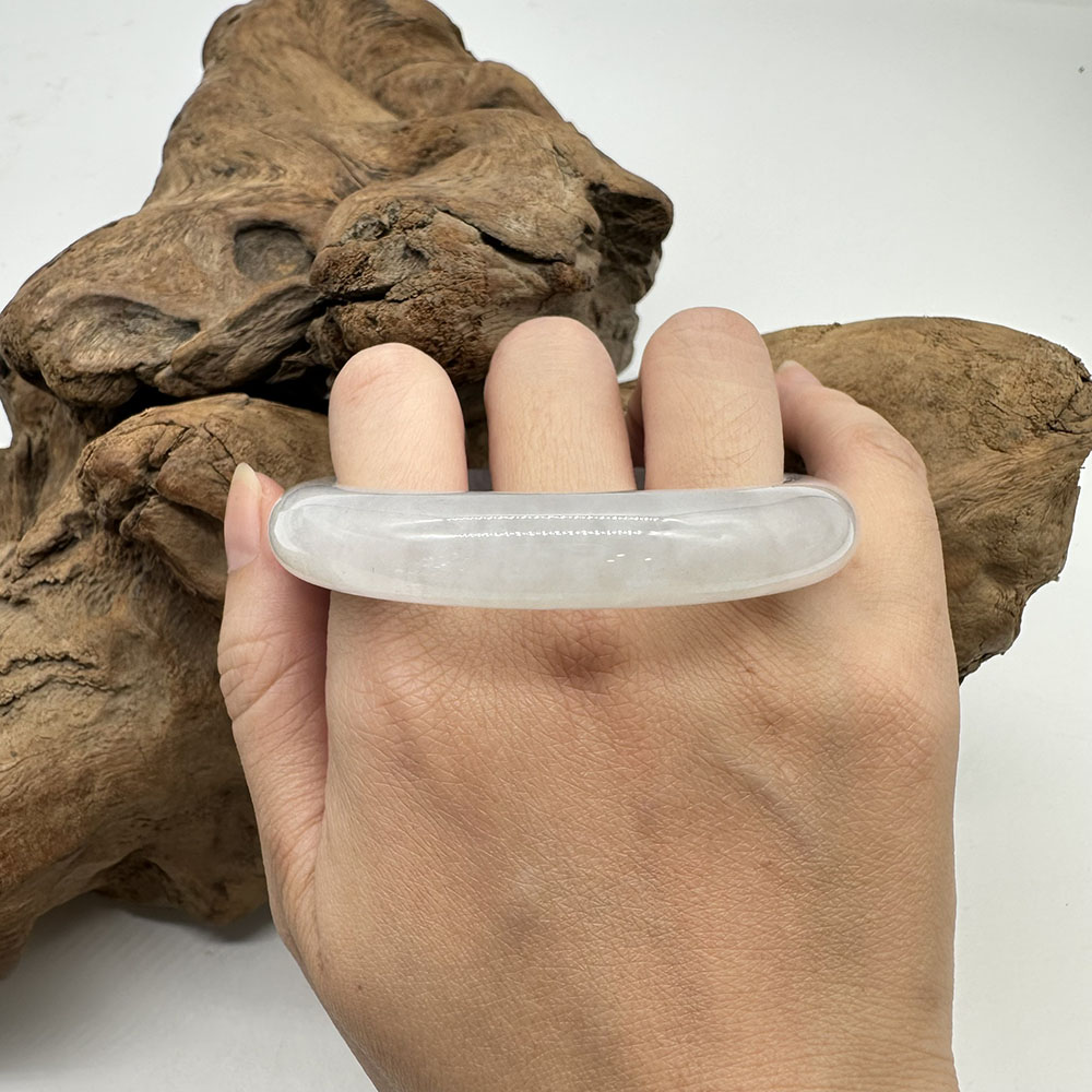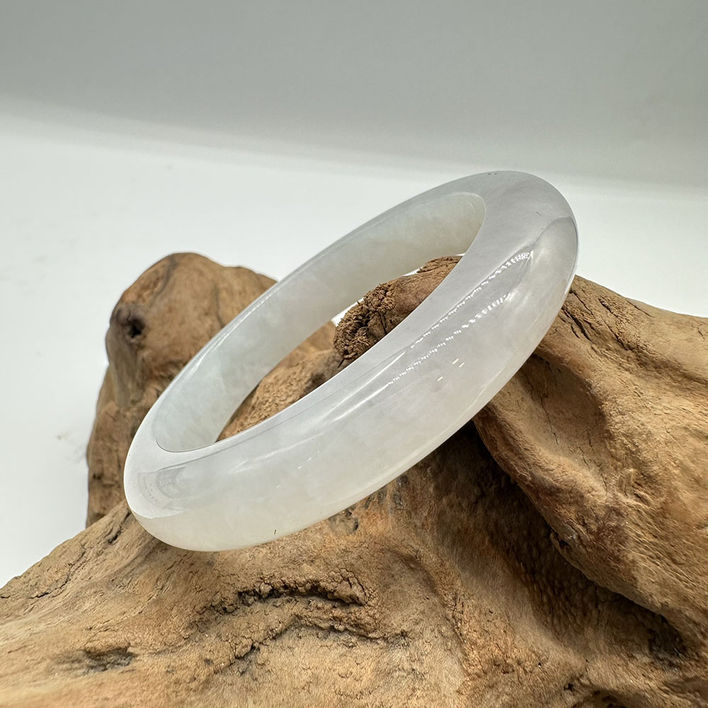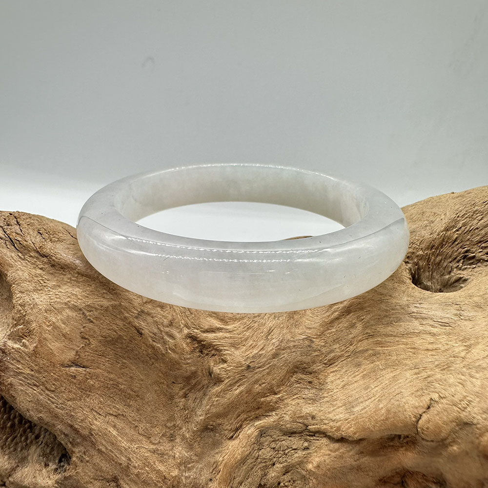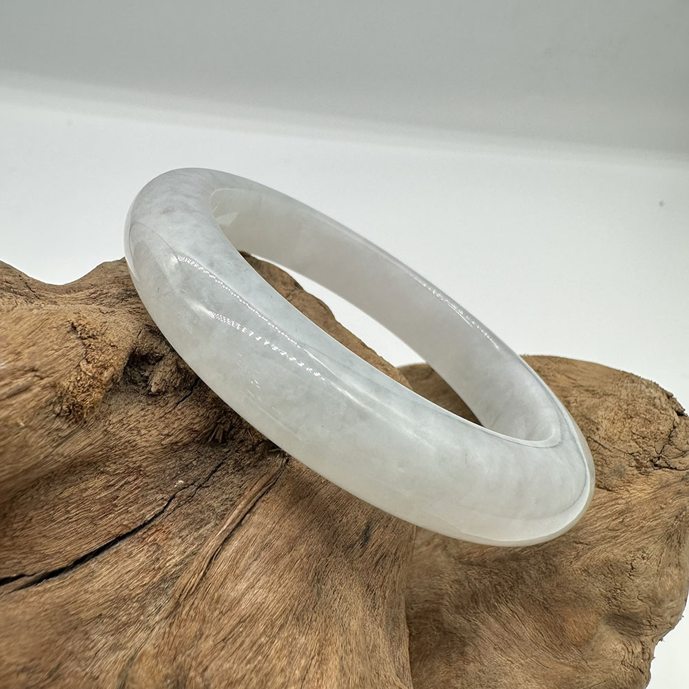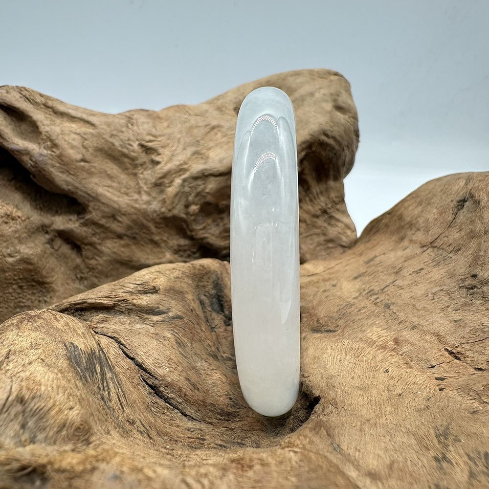 【肌容雪】天然緬甸A貨青白玉翡翠平安鐲 編號110(鐲圍56.0mm#17.5號)