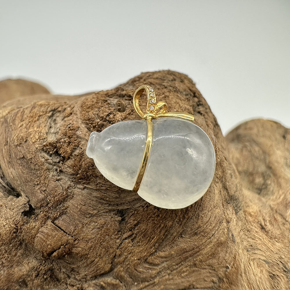 【肌容雪】天然緬甸A貨18K金翡翠葫蘆造型吊墜 編號749