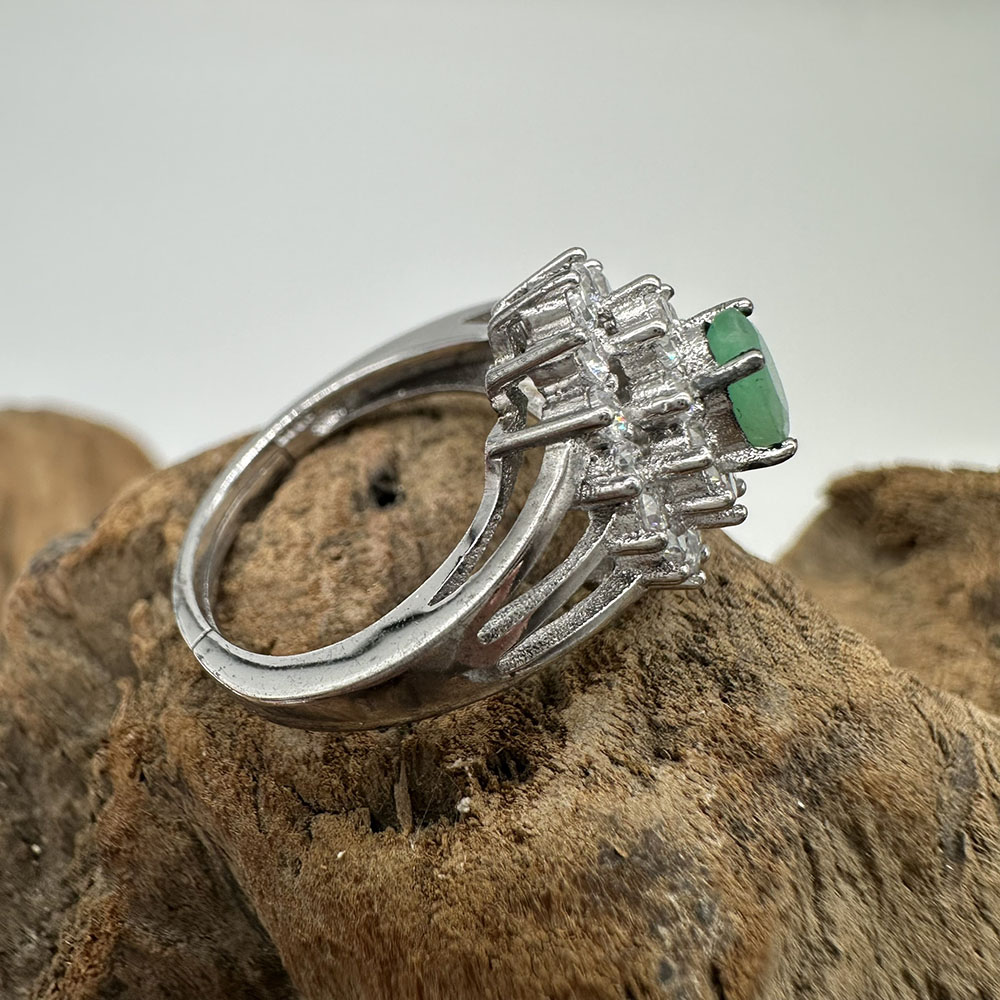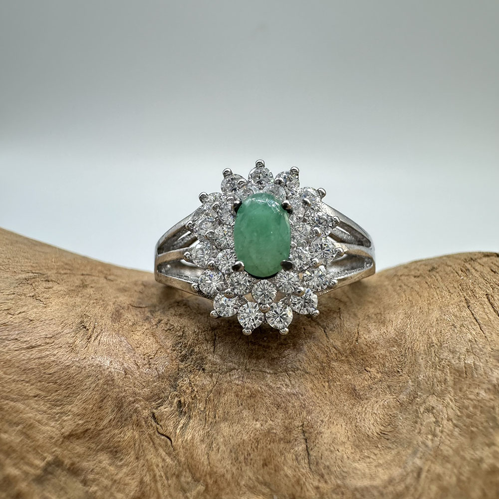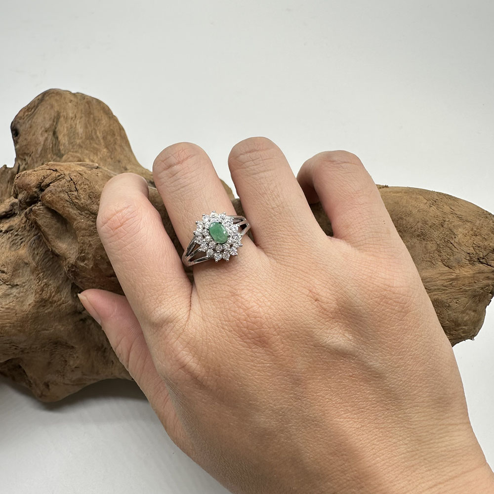 【肌容雪】天然緬甸A貨翡翠蛋面鑲鑽戒指 編號979(戒圍17.7mm#12號)