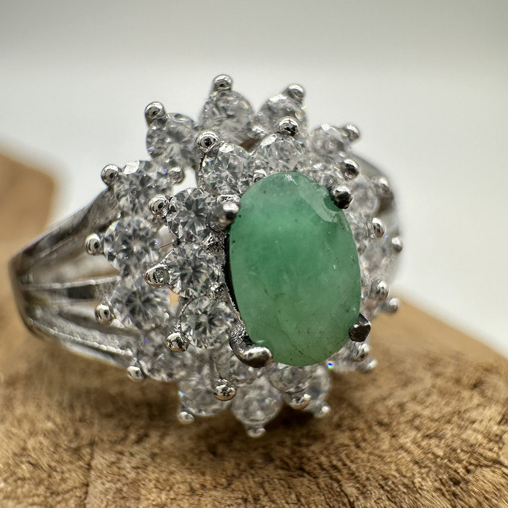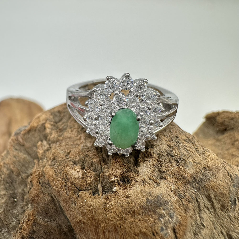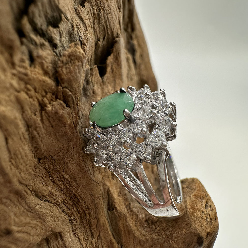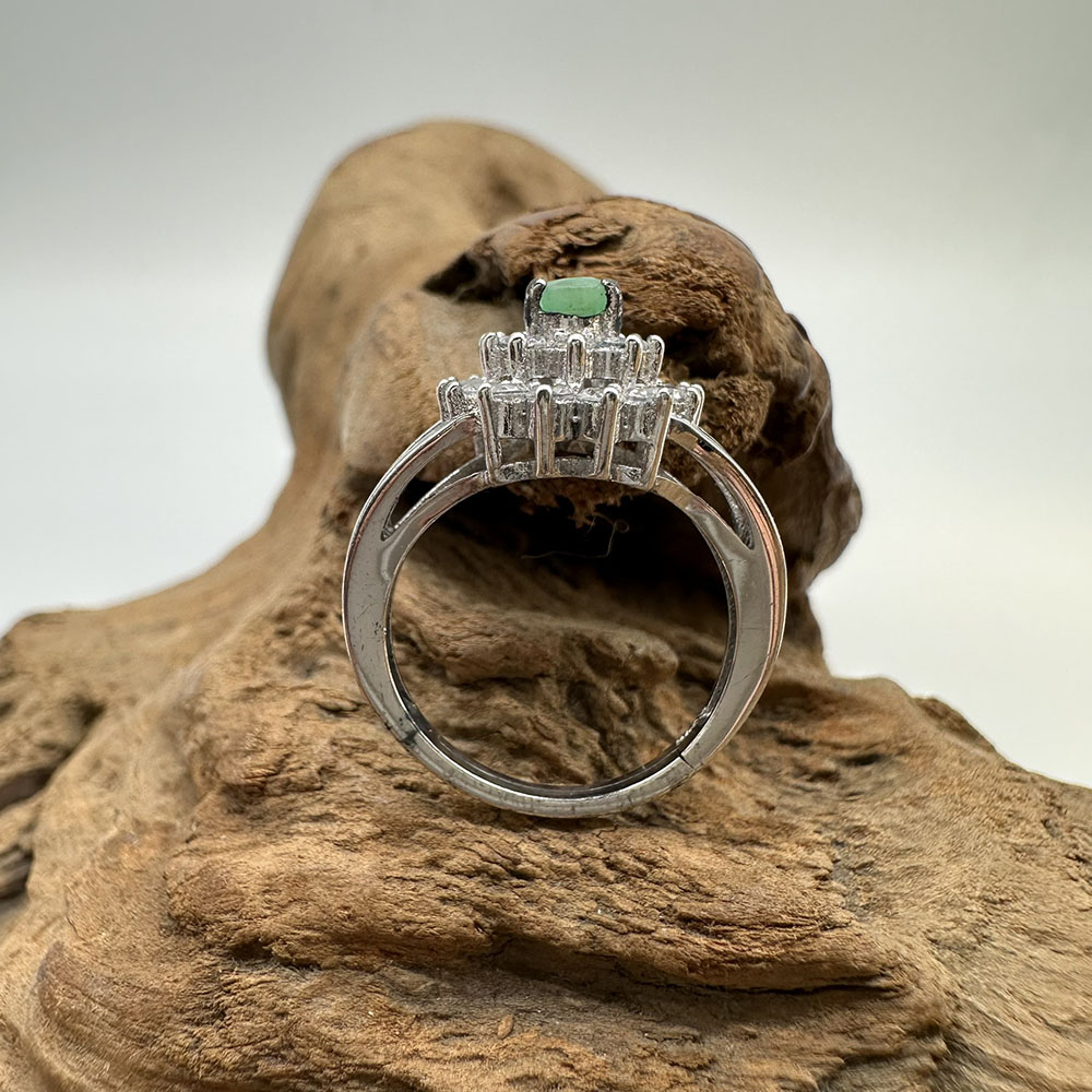【肌容雪】天然緬甸A貨翡翠蛋面鑲鑽戒指 編號979(戒圍17.7mm#12號)