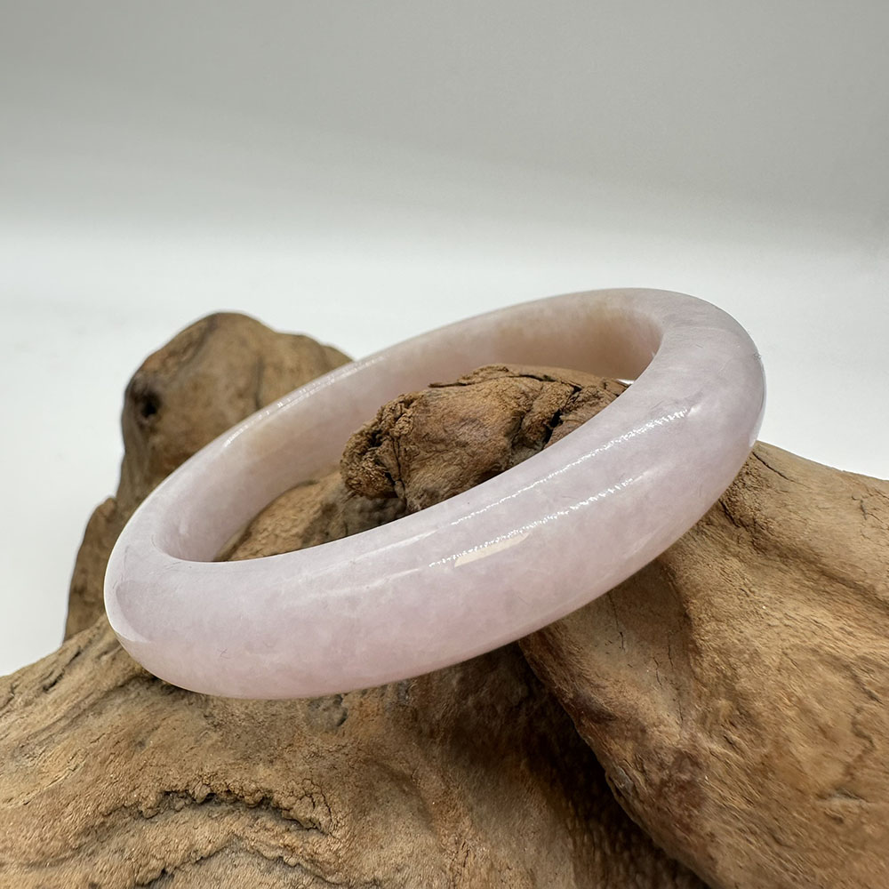【肌容雪】天然緬甸A貨翡翠粉色灑金平安鐲 編號481(鐲圍55.6mm#17.5號)