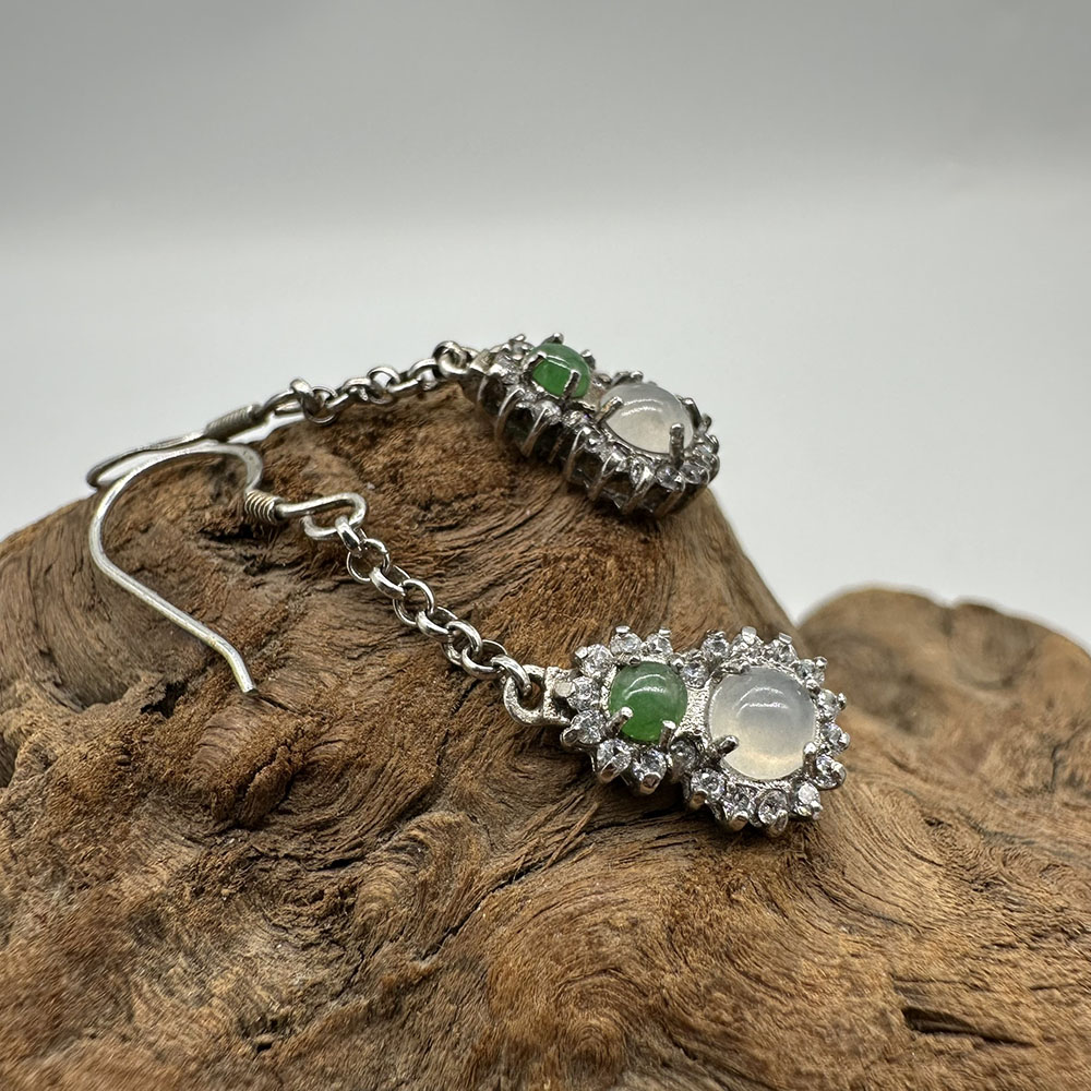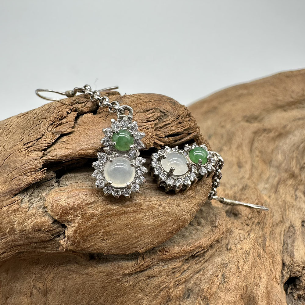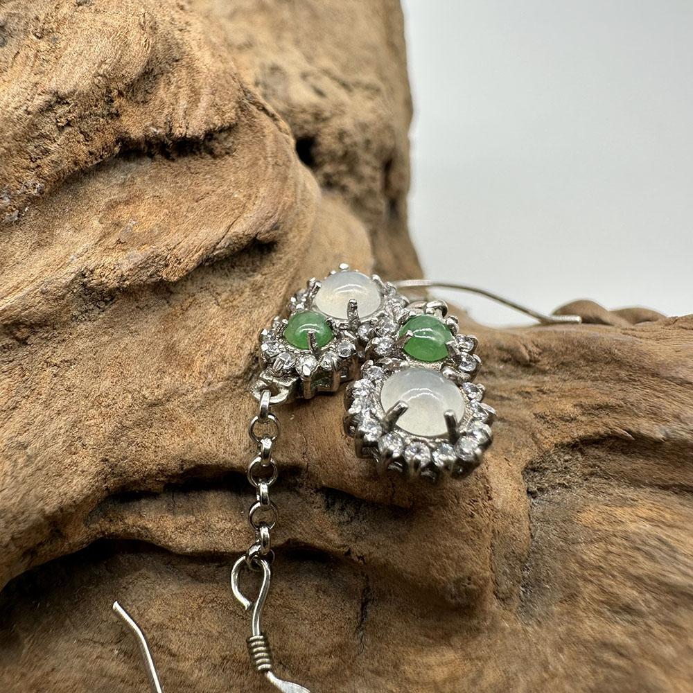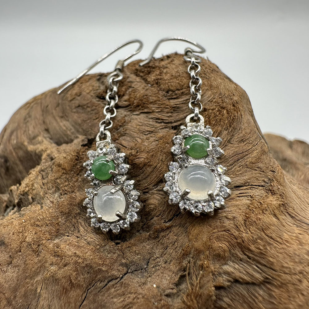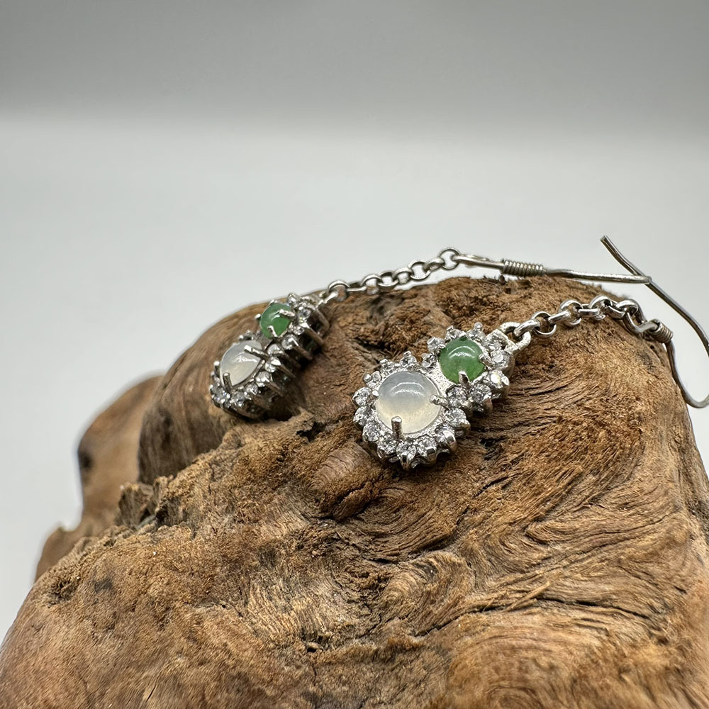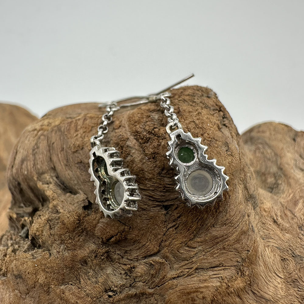 【肌容雪】天然緬甸A貨翡翠葫蘆造型鑲鑽耳針 編號56