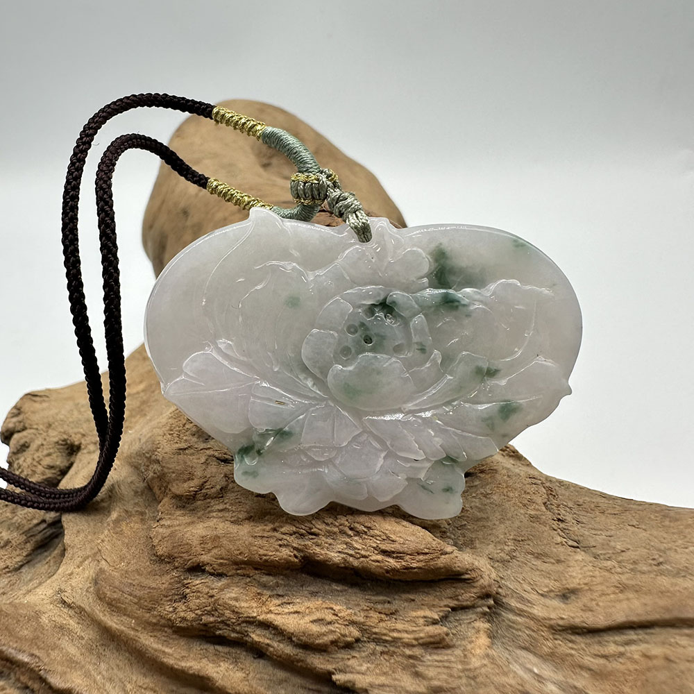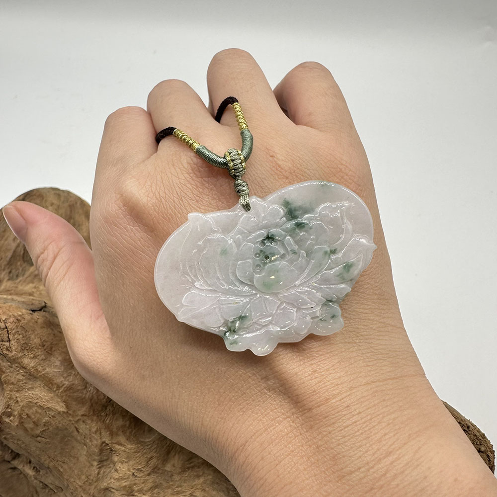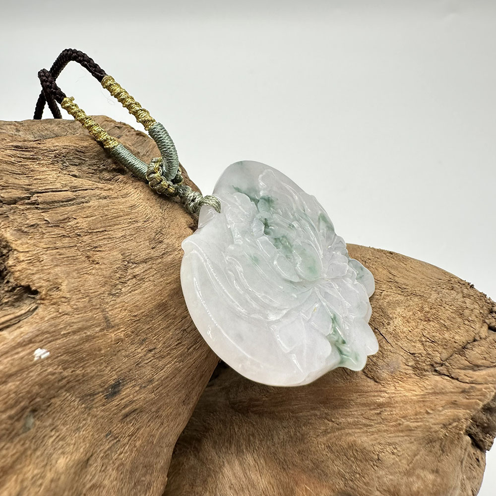 【肌容雪】天然緬甸A貨翡翠蓮花造型吊墜繩 編號1006