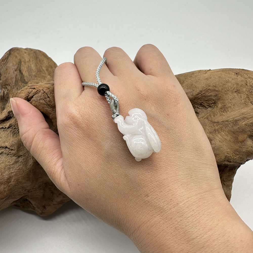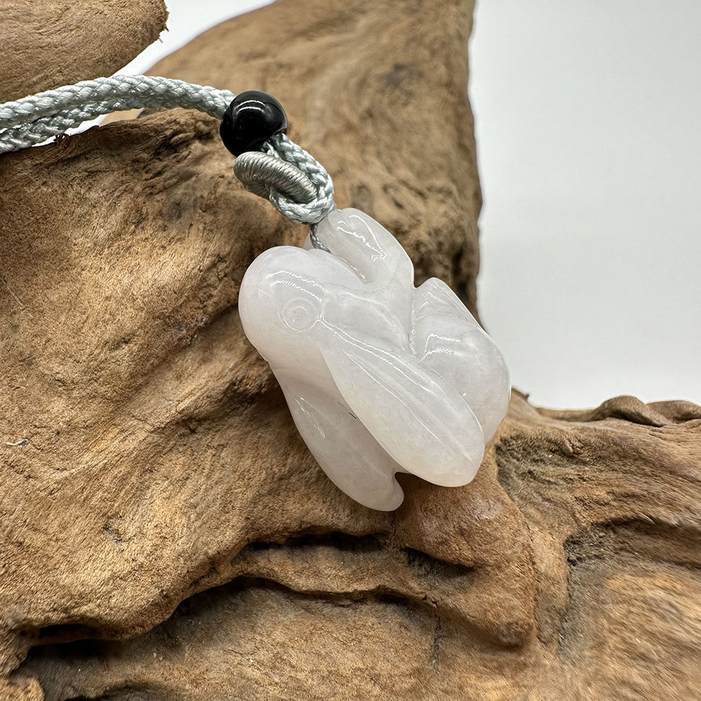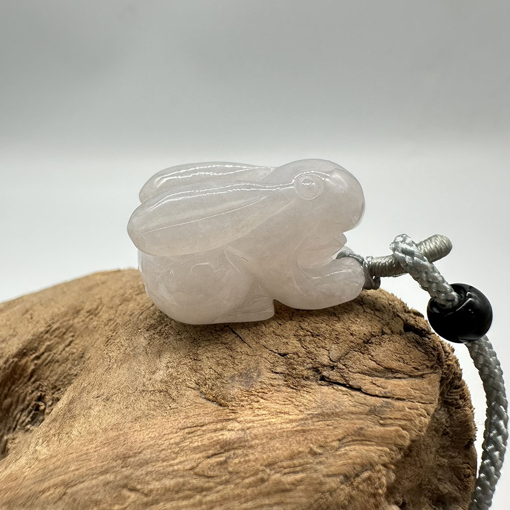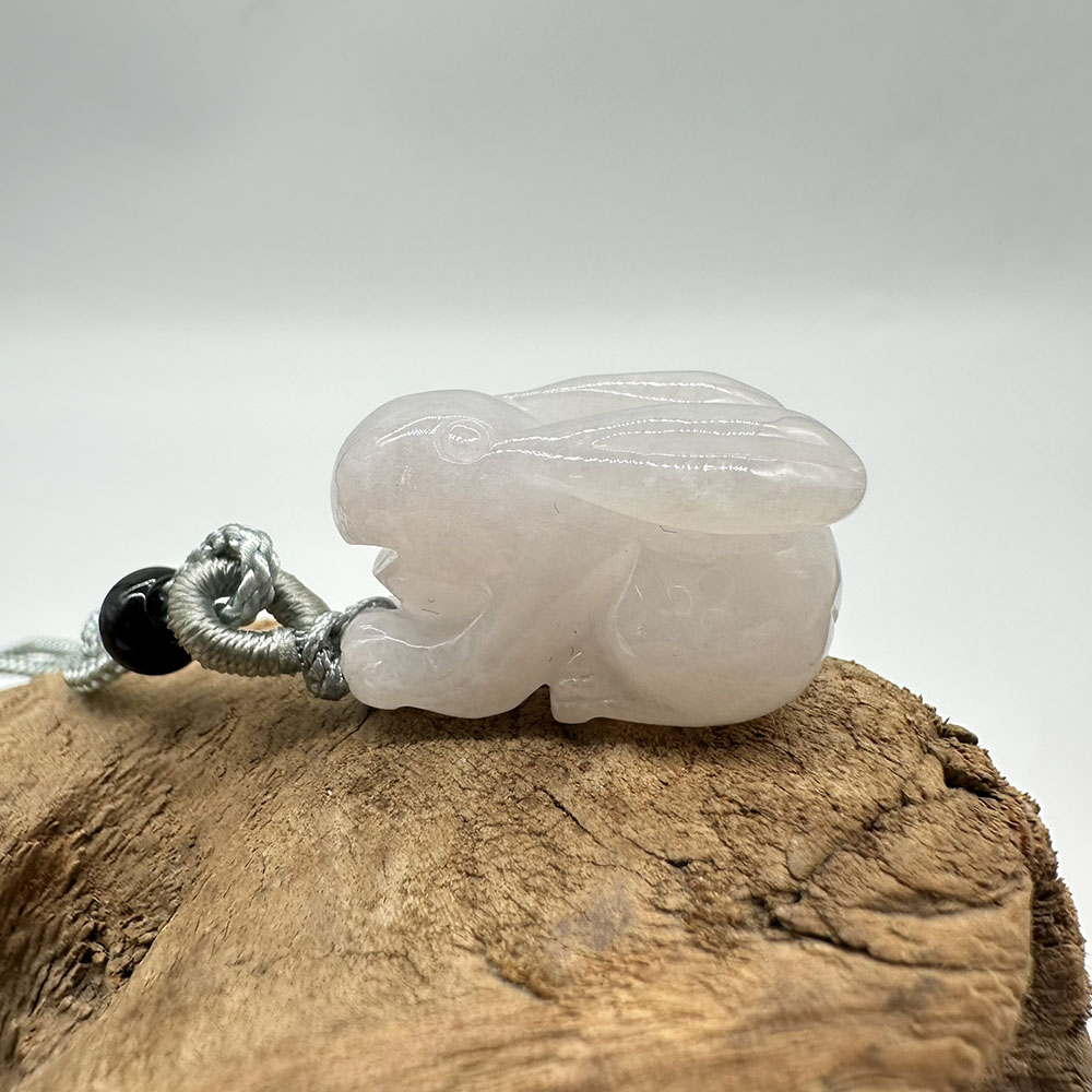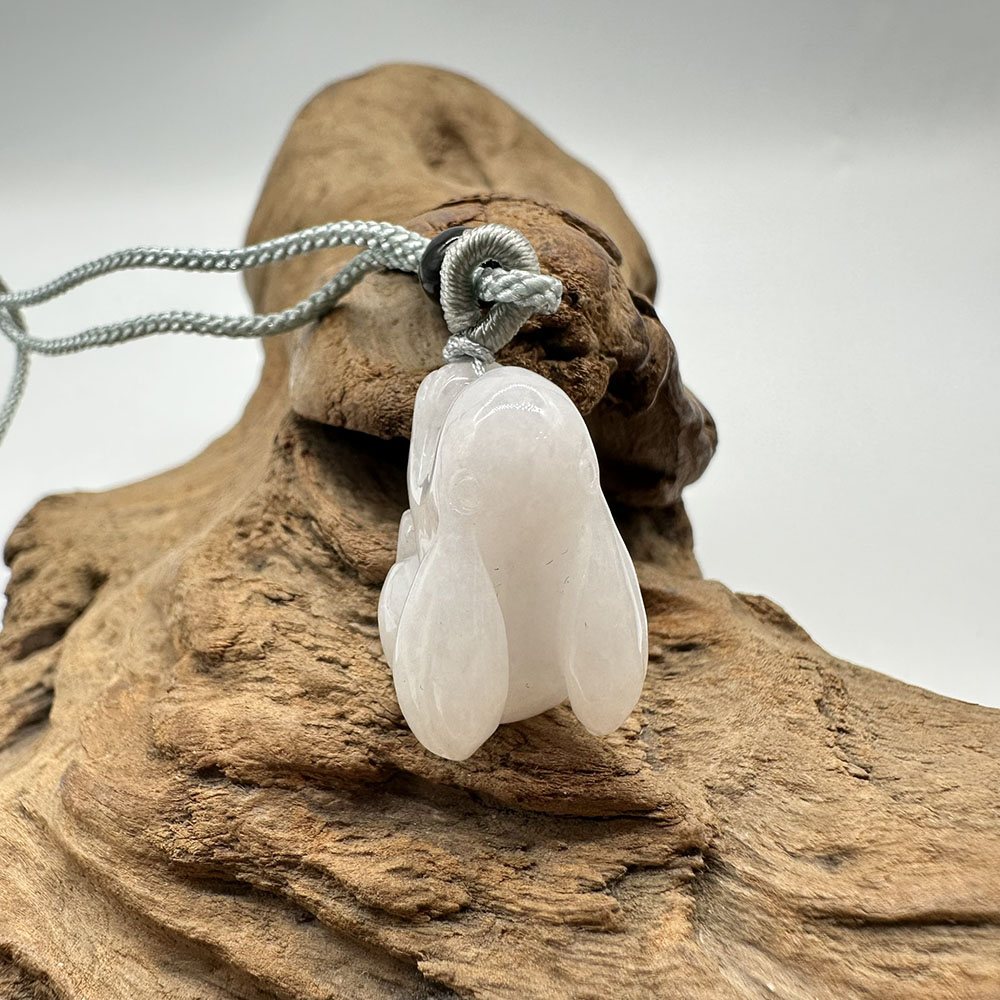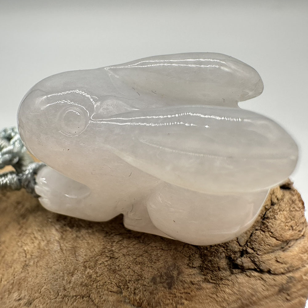 【肌容雪】天然緬甸A貨翡翠糯冰兔子造型吊墜繩 編號324