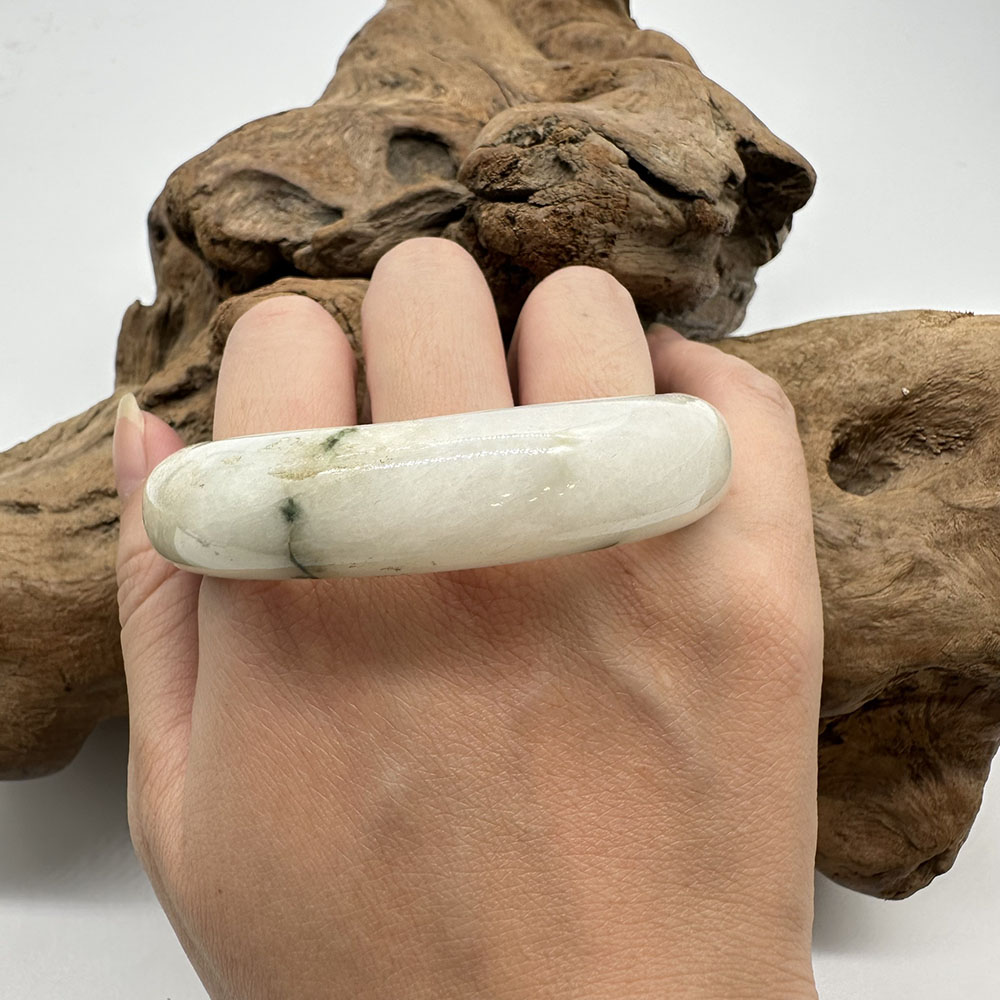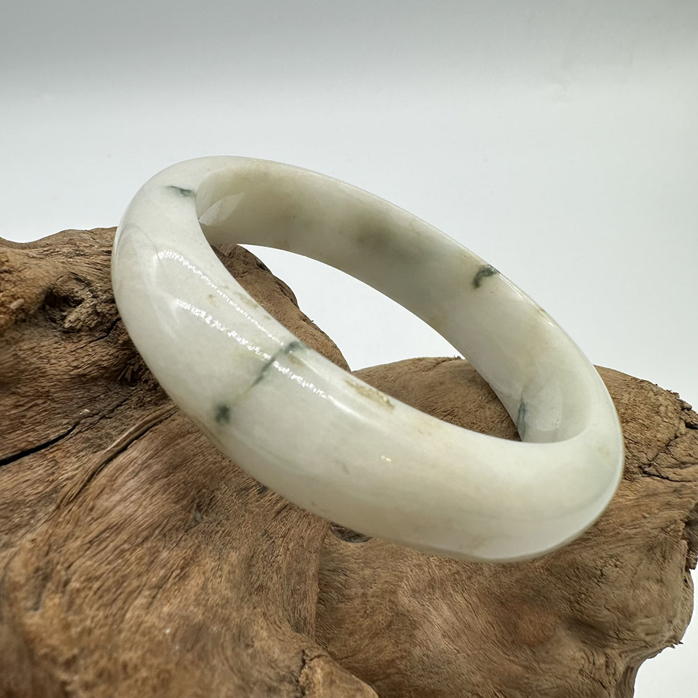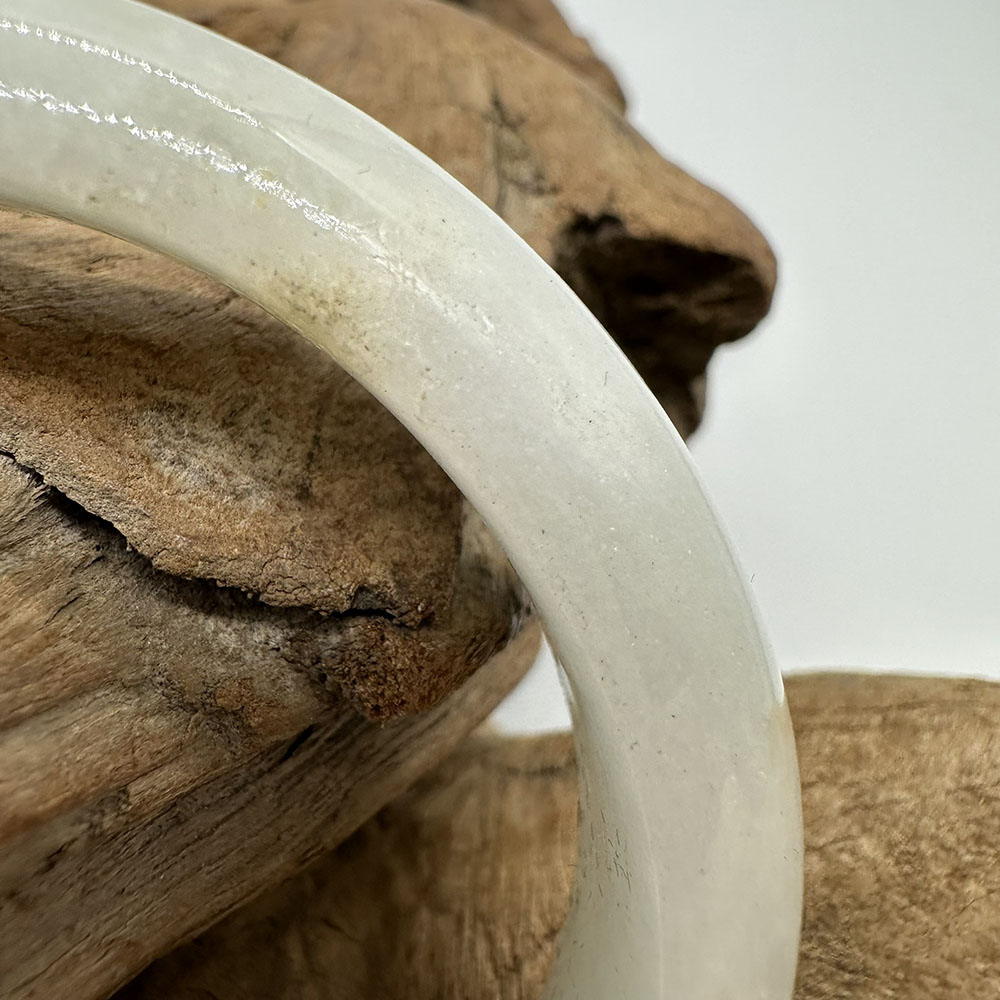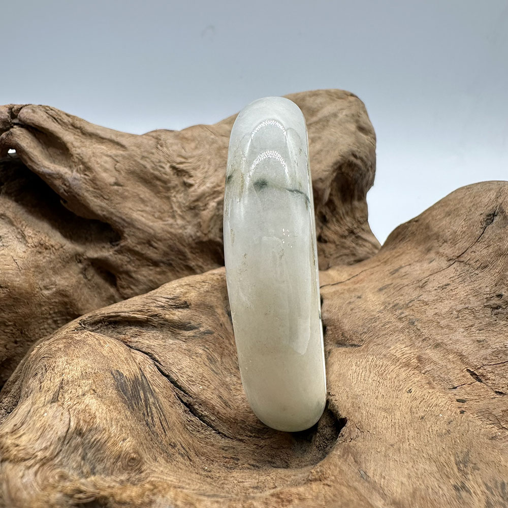 【肌容雪】天然緬甸A貨白底飄花翡翠平安鐲 編號146(鐲圍58.4mm#18.5號)