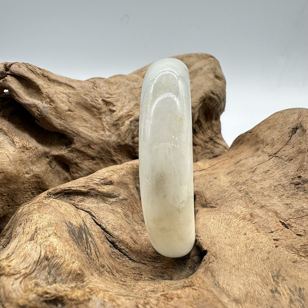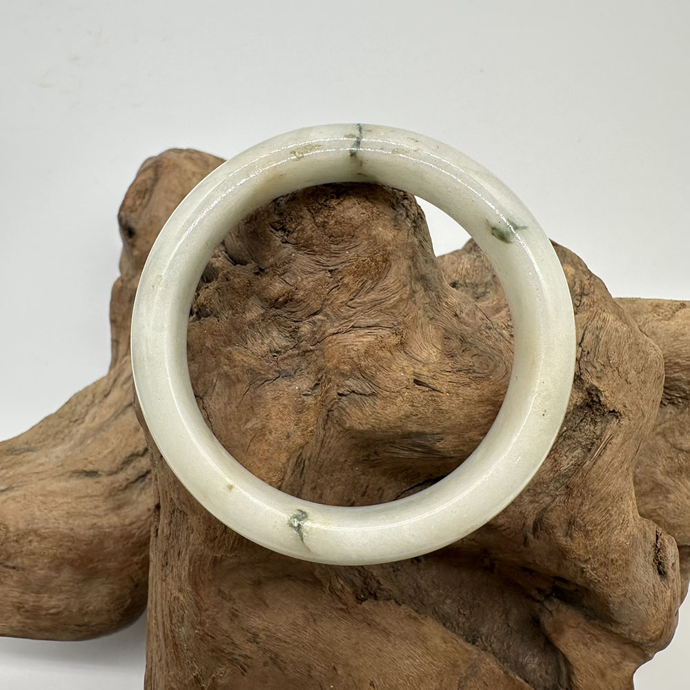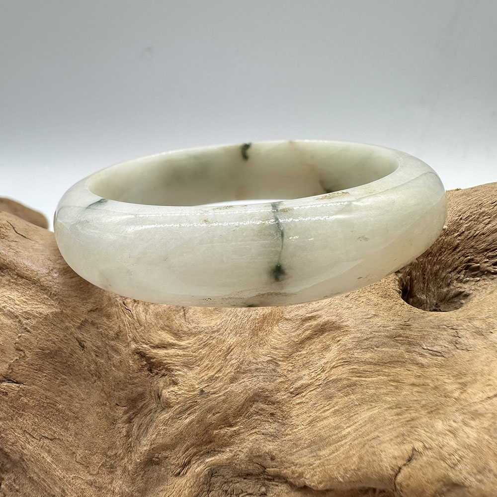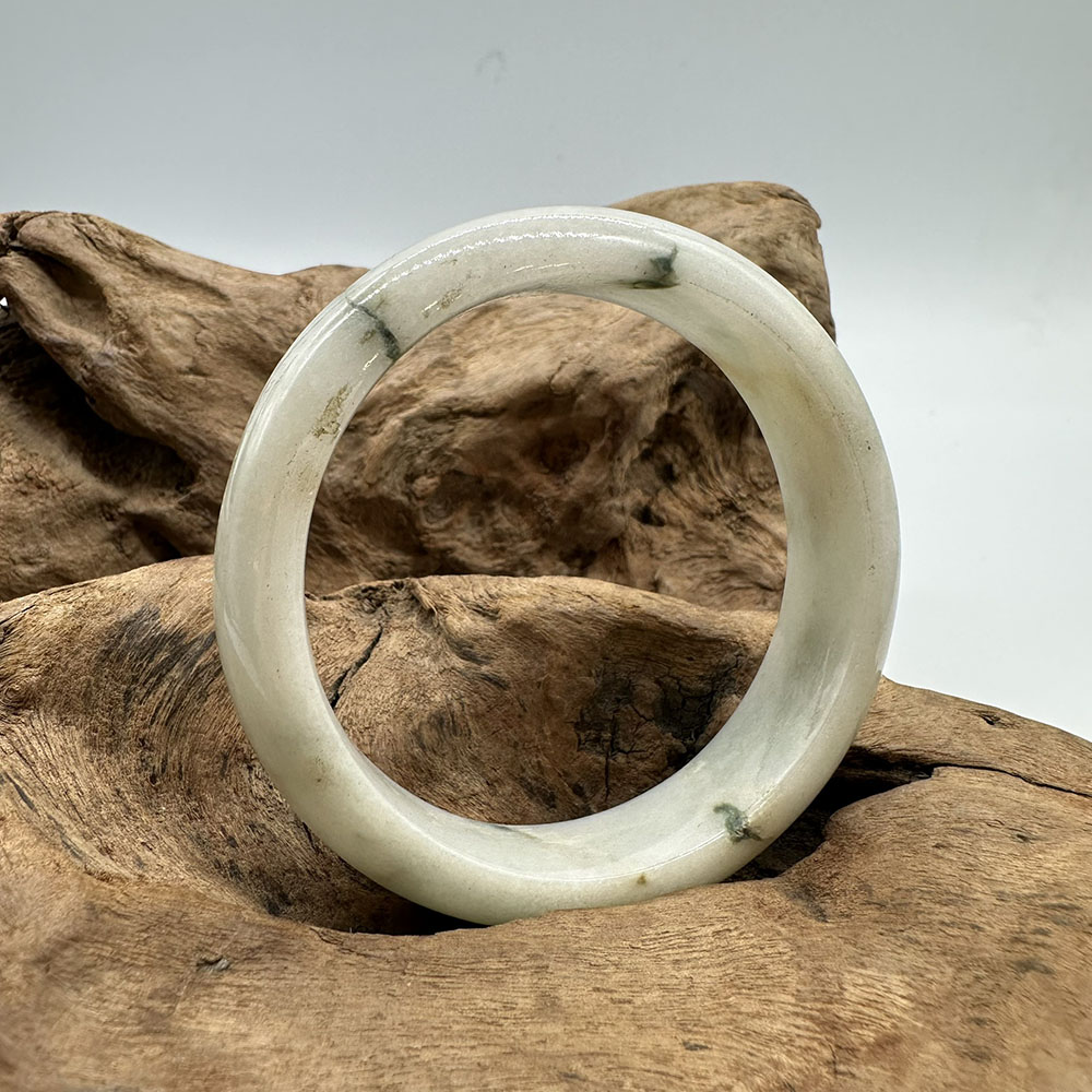 【肌容雪】天然緬甸A貨白底飄花翡翠平安鐲 編號146(鐲圍58.4mm#18.5號)