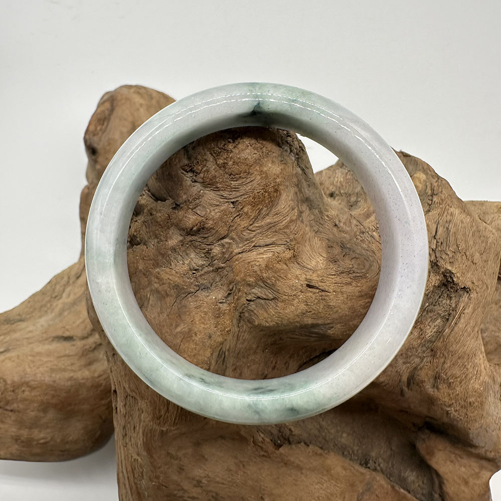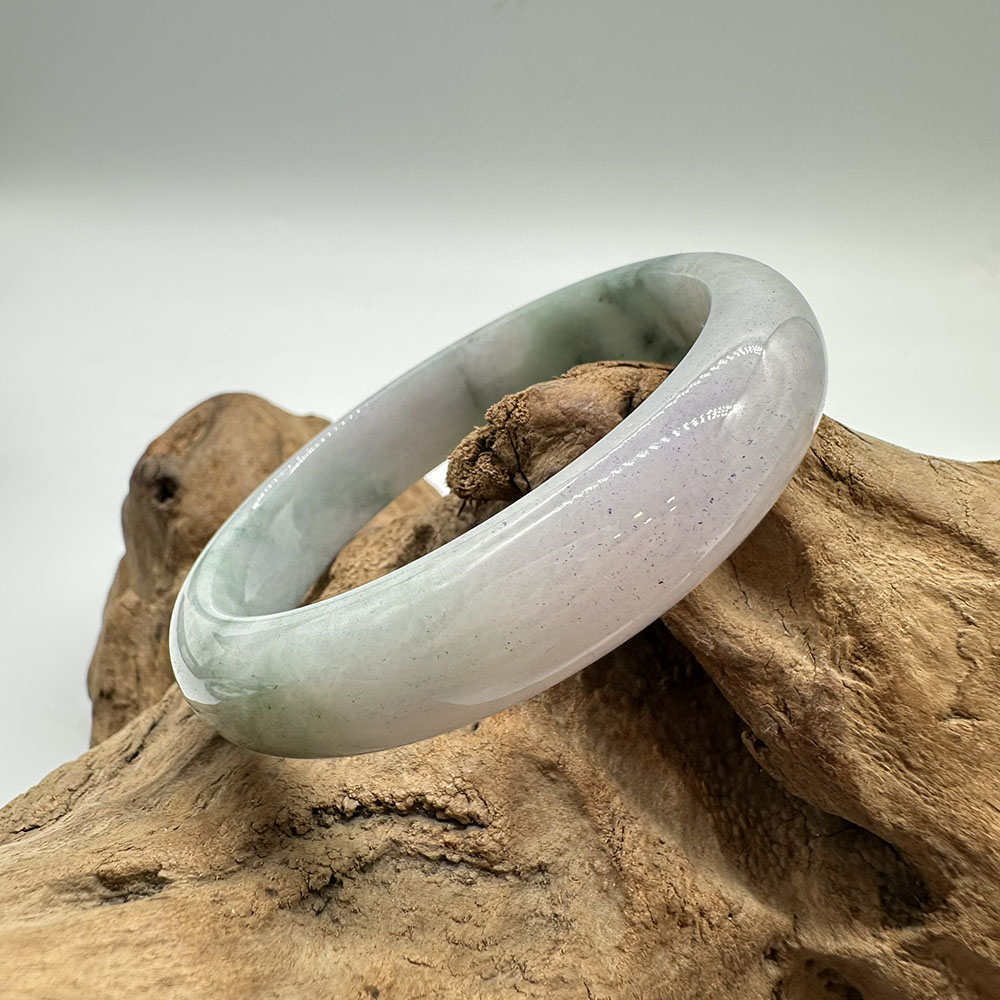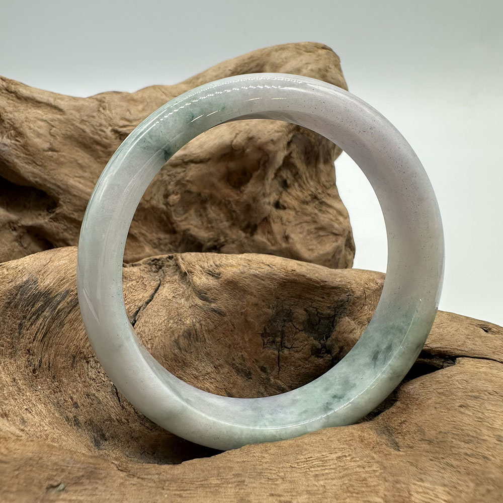 【肌容雪】天然緬甸A貨紫底飄綠花翡翠平安鐲 編號150(鐲圍57.6mm#18號)