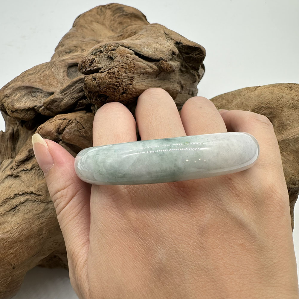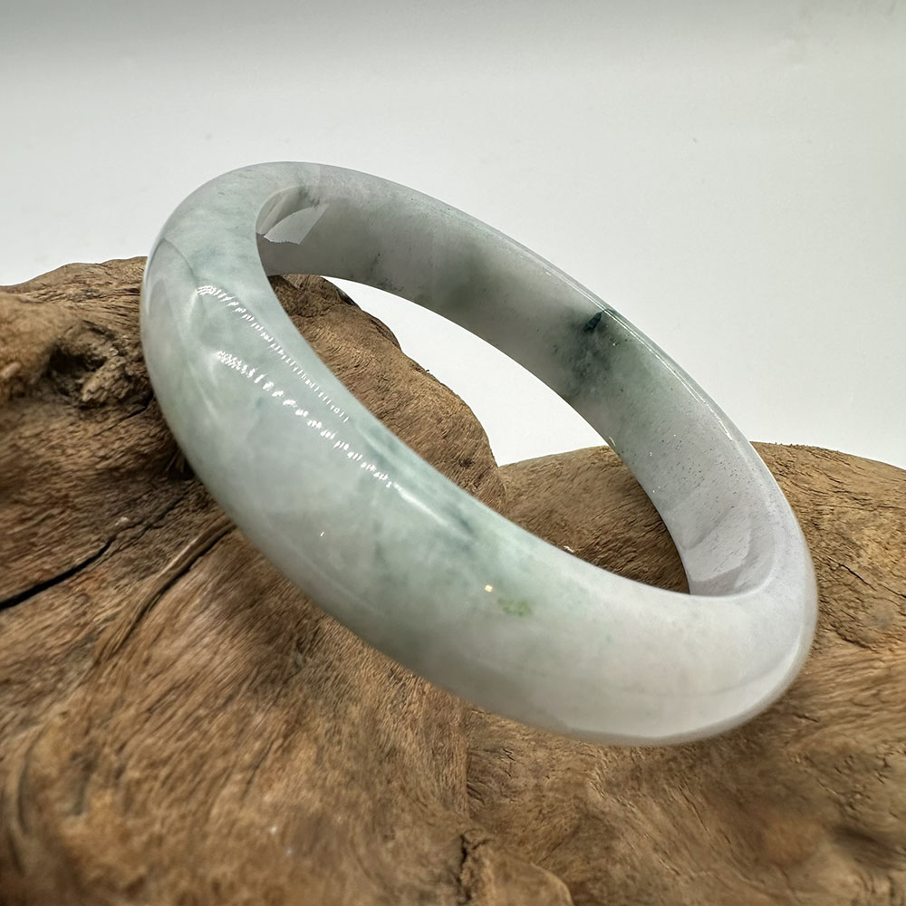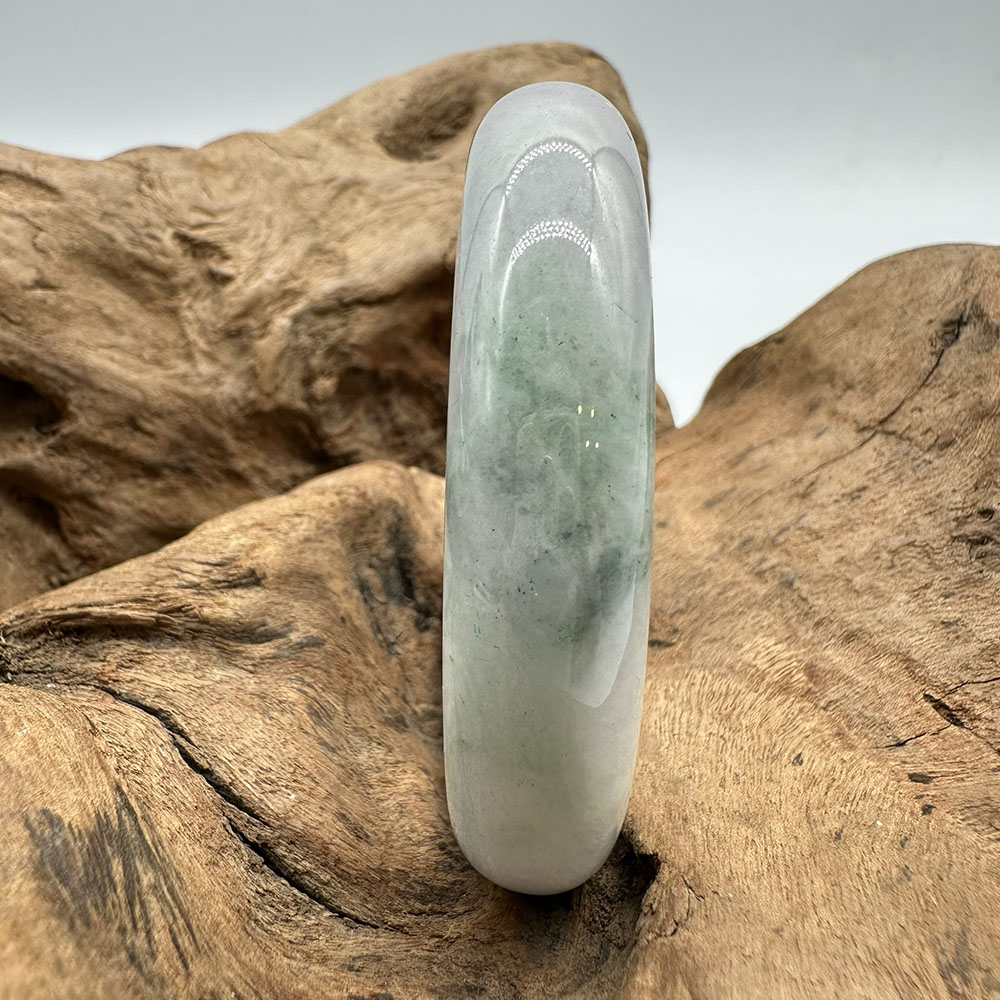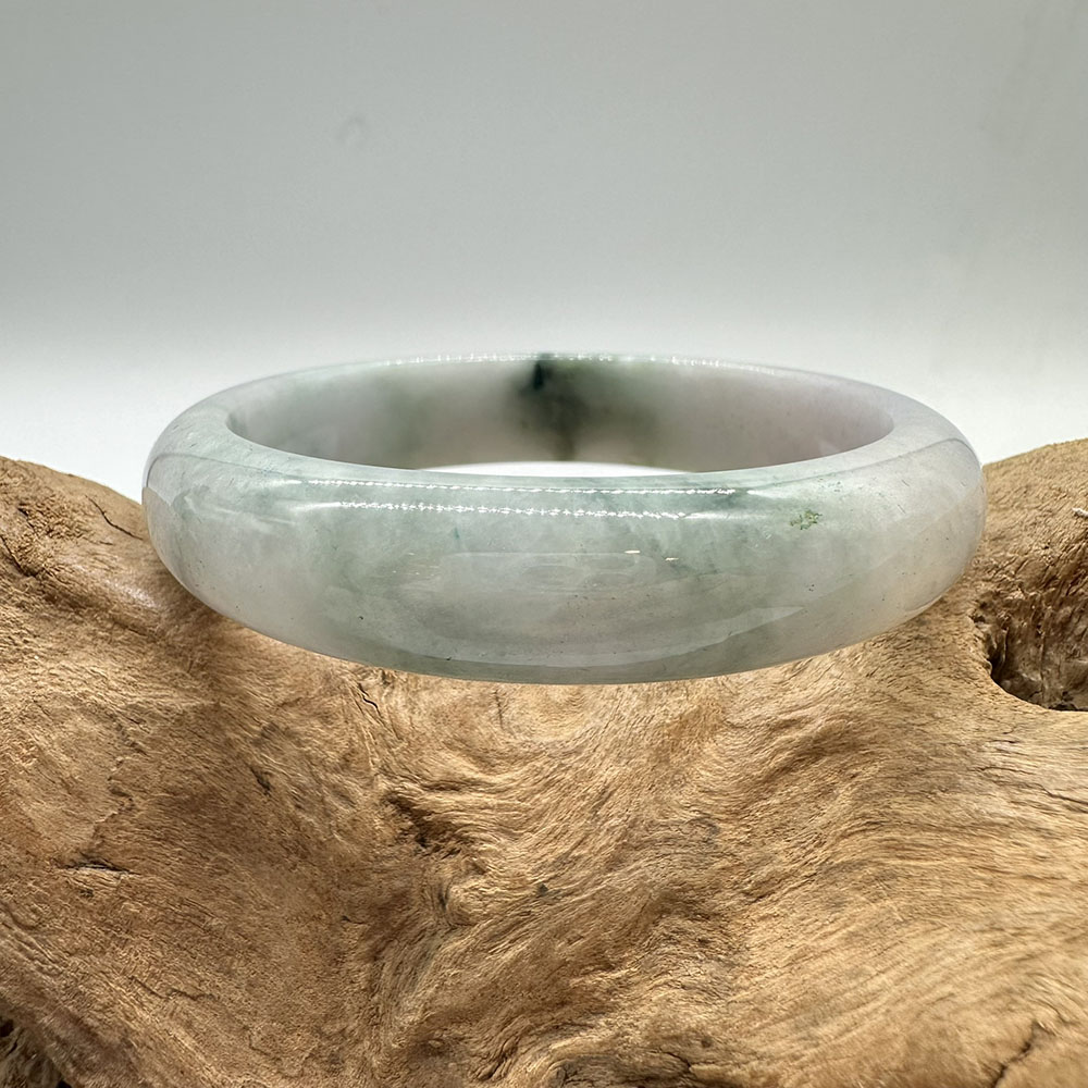 【肌容雪】天然緬甸A貨紫底飄綠花翡翠平安鐲 編號150(鐲圍57.6mm#18號)