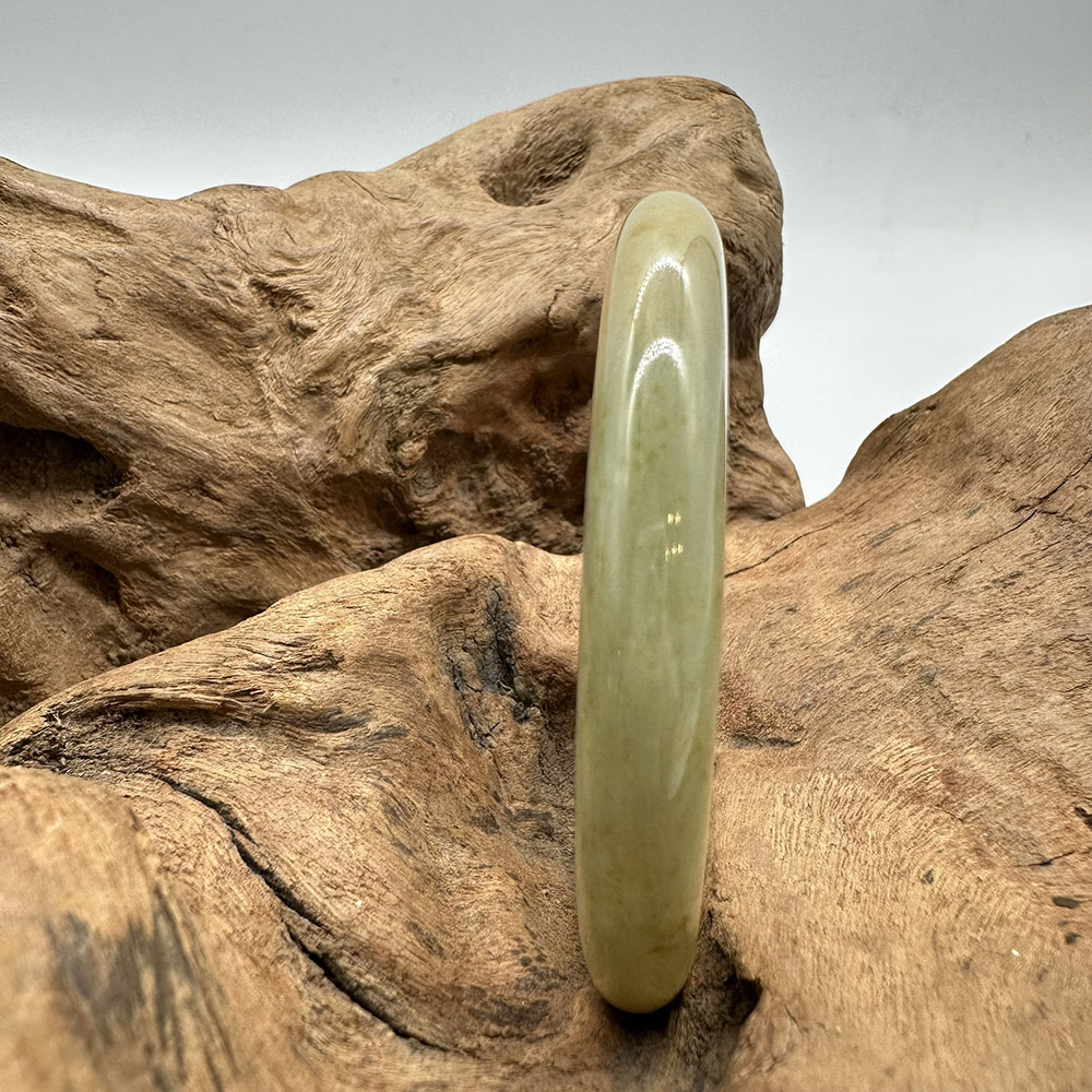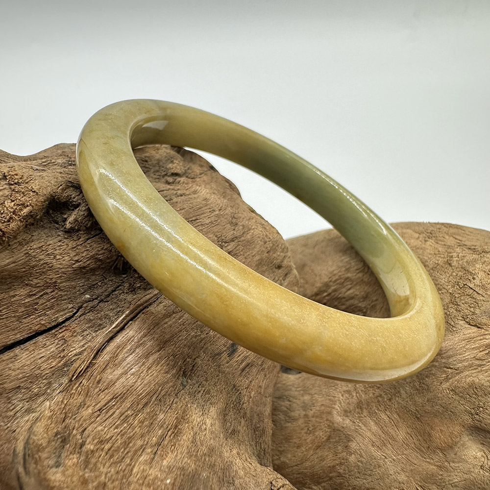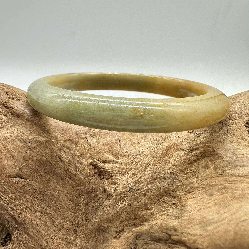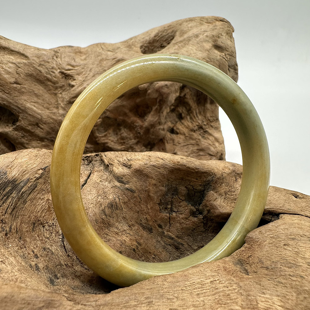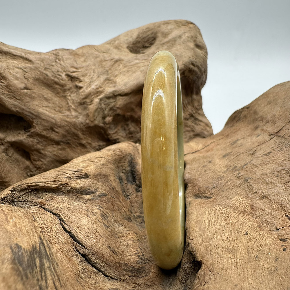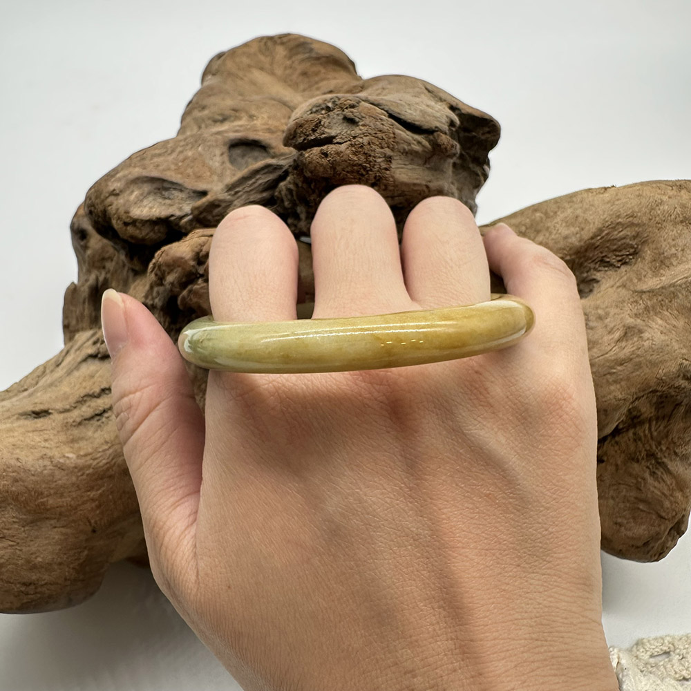 【肌容雪】天然緬甸A貨黃翡飄花翡翠圓條手鐲 編號162(鐲圍56.3mm#17.5號)
