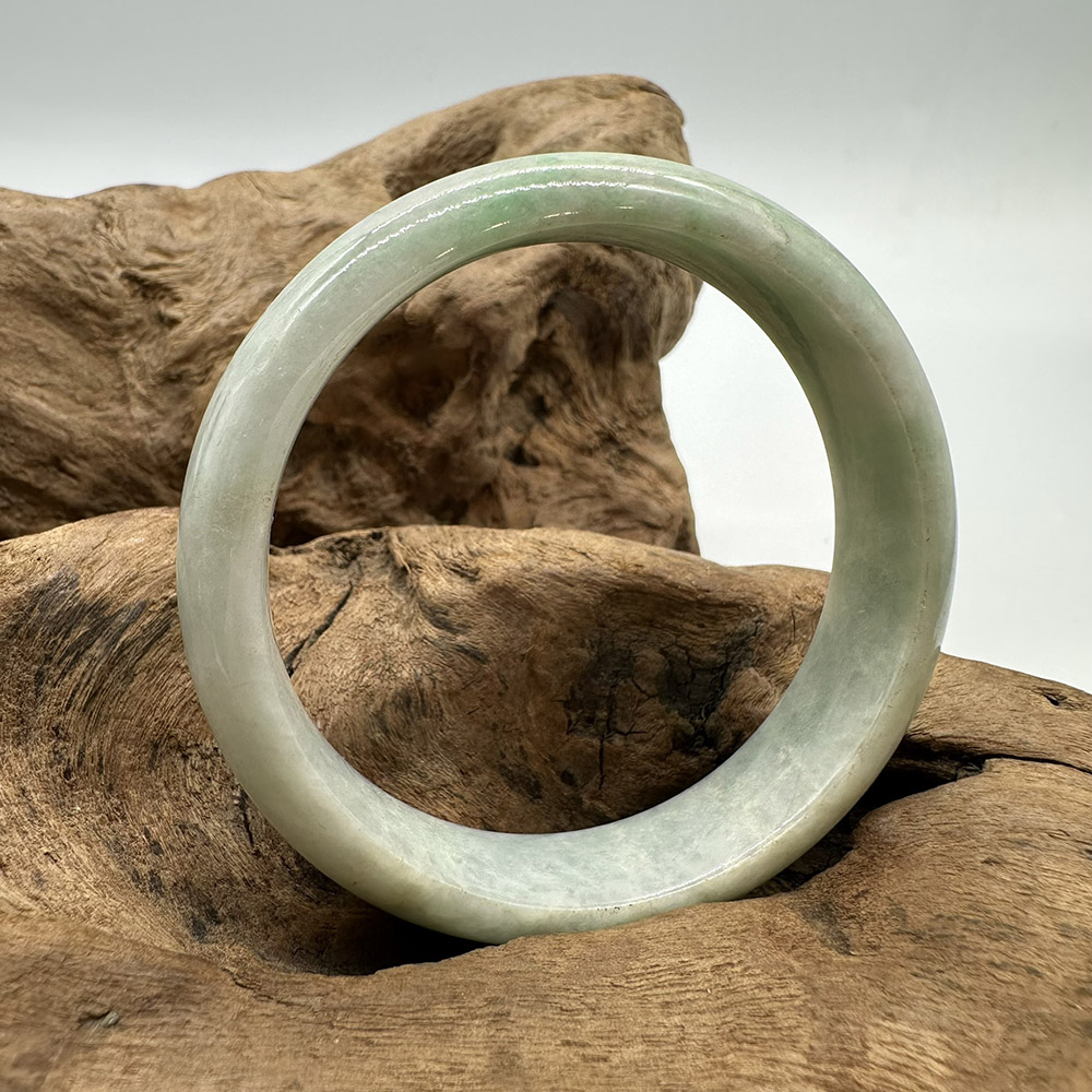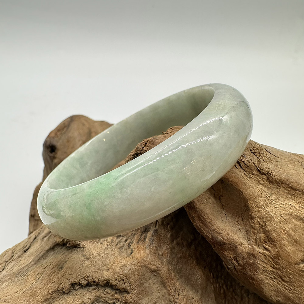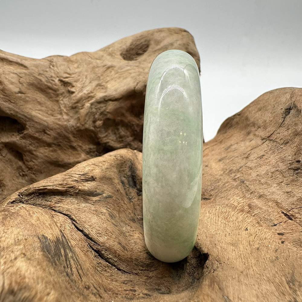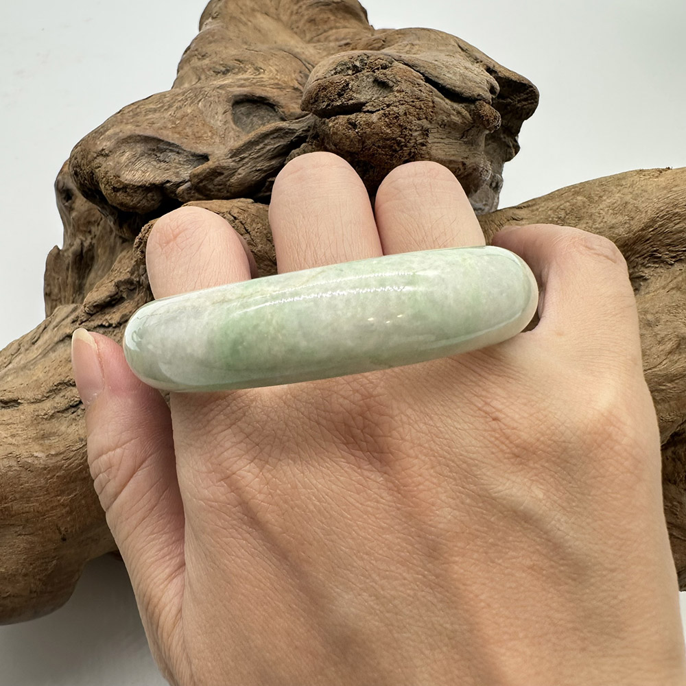 【肌容雪】天然緬甸A貨綠飄花翡翠平安鐲 編號163(鐲圍55.5mm#17.5號)
