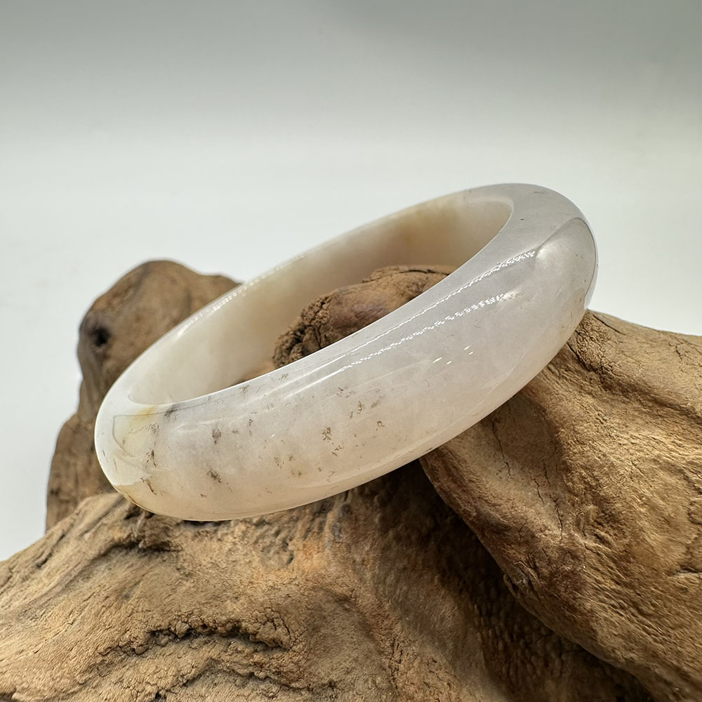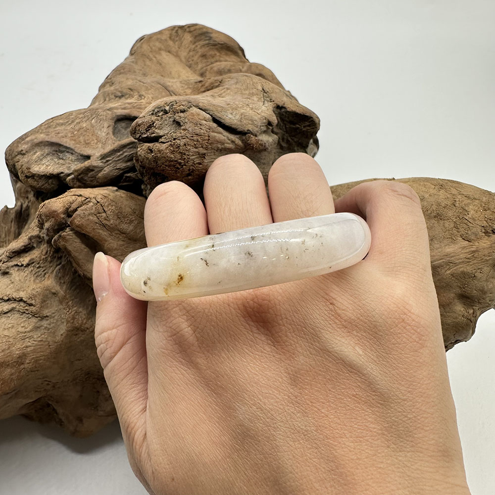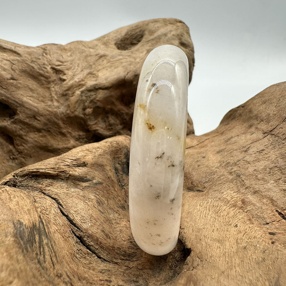 【肌容雪】天然緬甸A貨白底灑金翡翠平安鐲 編號179(鐲寬53.5mm#17號)