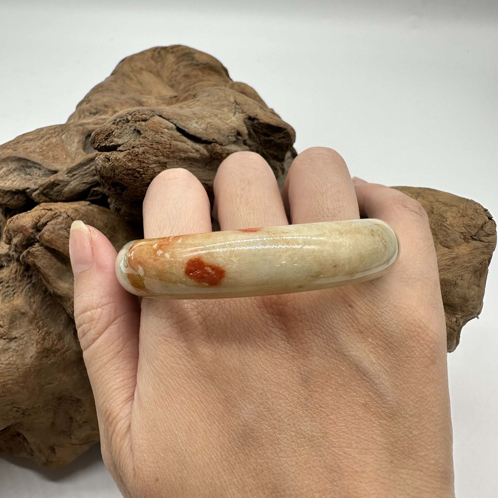 【肌容雪】天然緬甸A貨紅翡烏雞翡翠平安鐲 編號277(鐲圍57.3mm#18號)