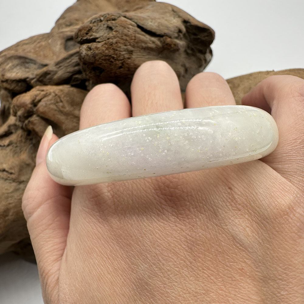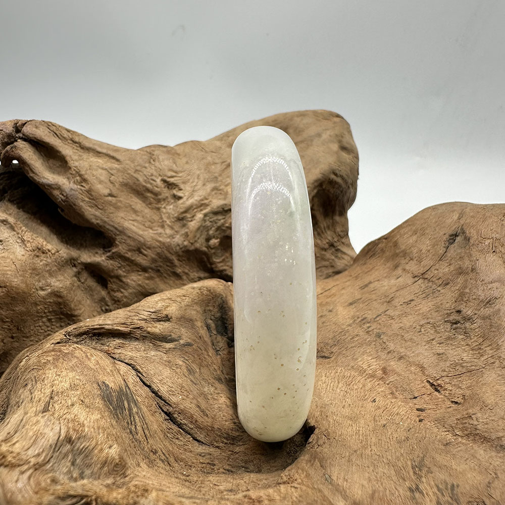 【肌容雪】天然緬甸A貨冰白月光翡翠平安鐲 編號296(鐲圍58.1mm#18.5號)