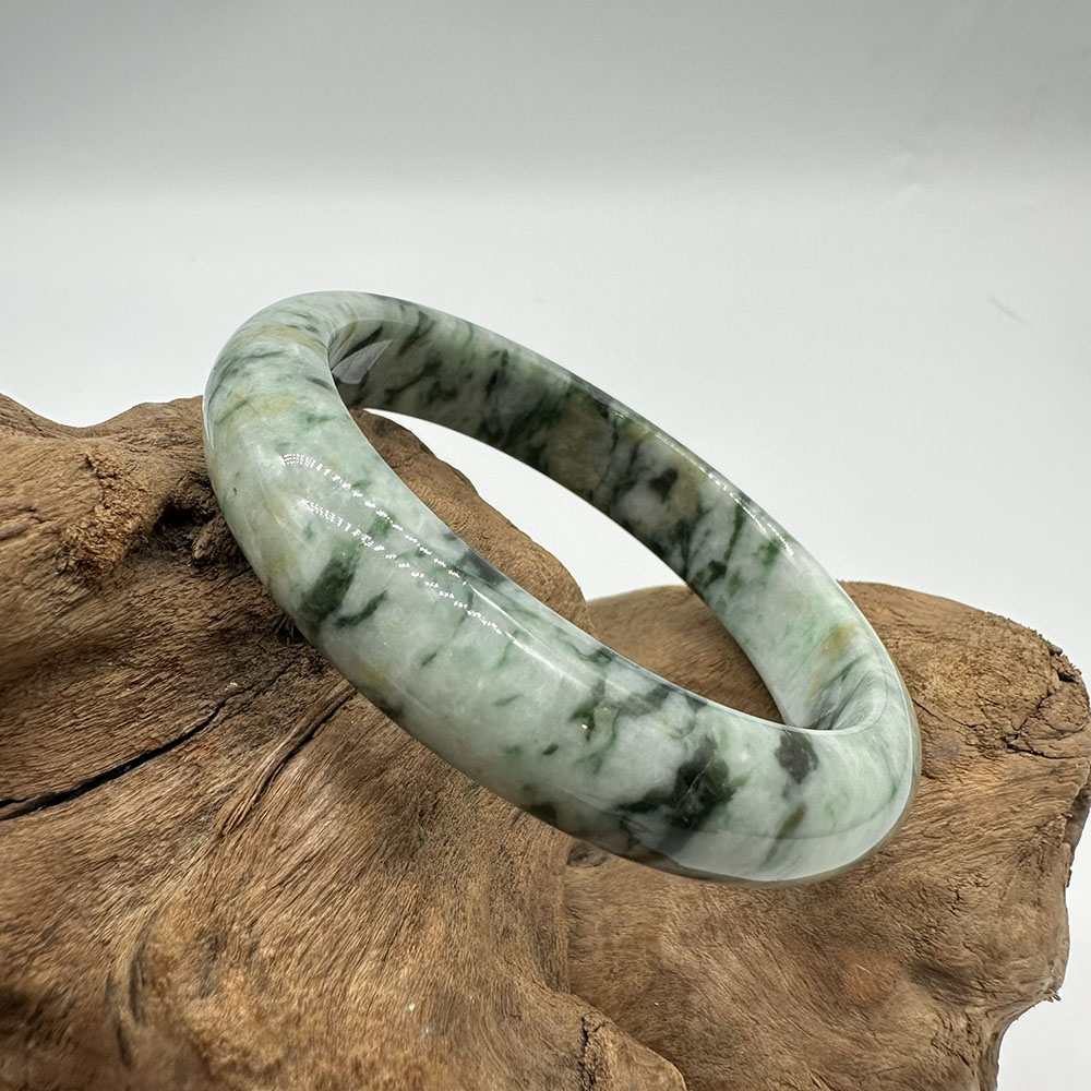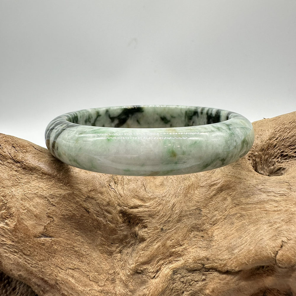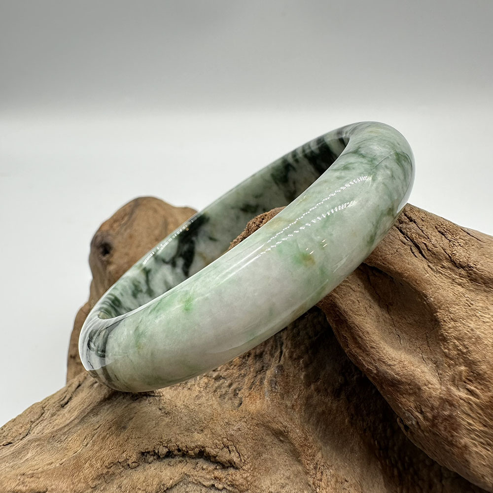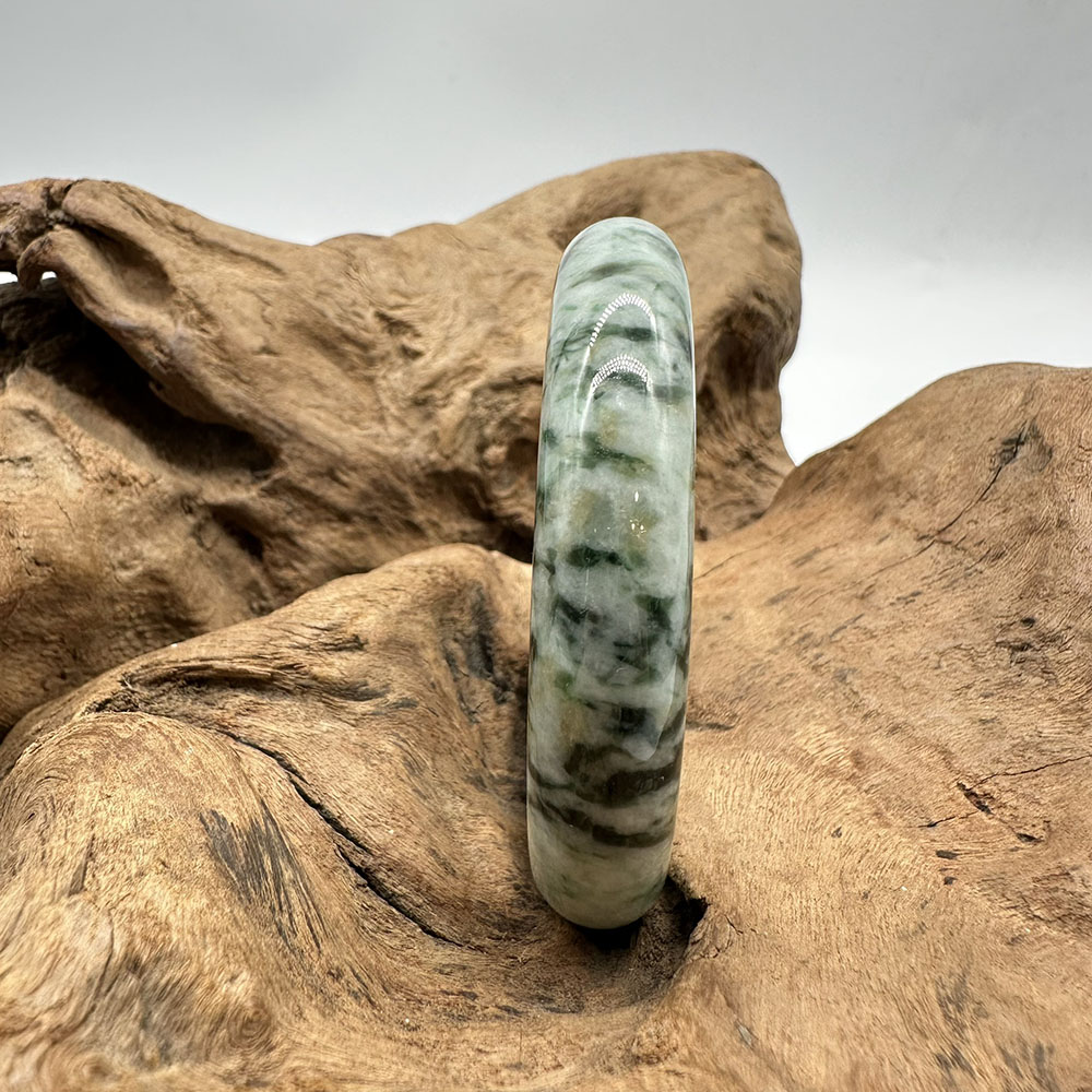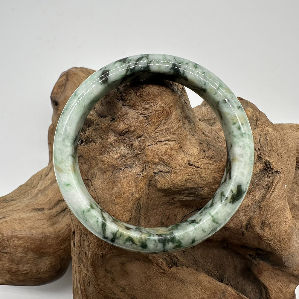 【肌容雪】天然緬甸A貨綠飄花翡翠平安鐲 編號303(鐲圍58.3mm#18.5號)