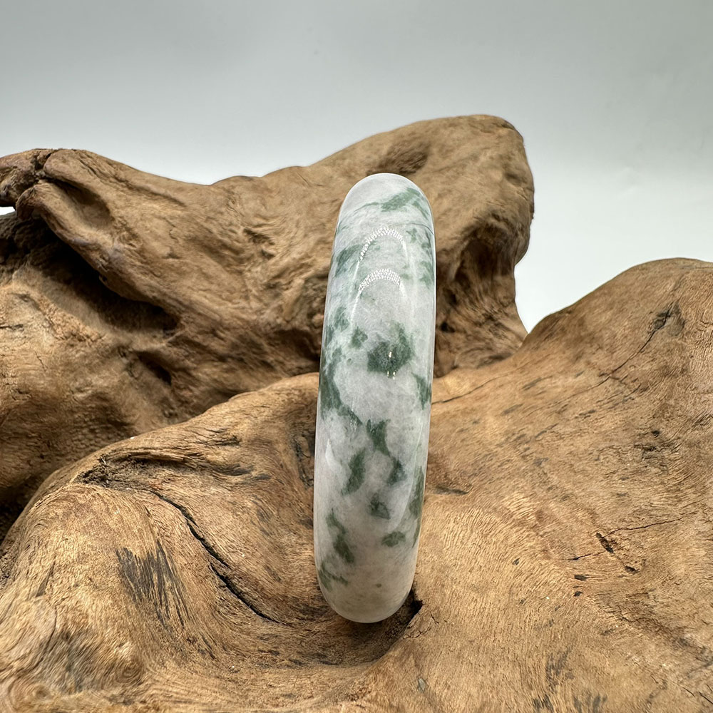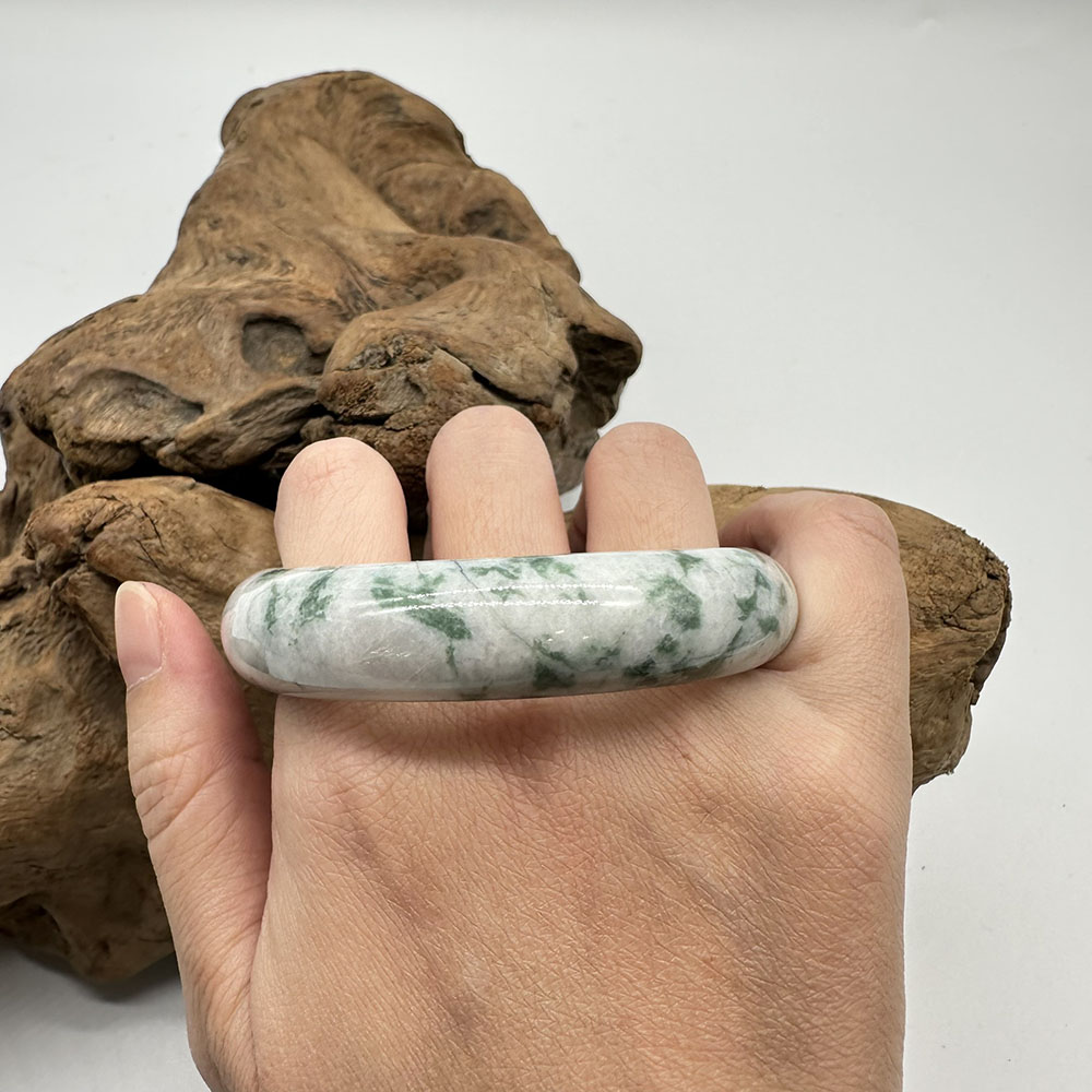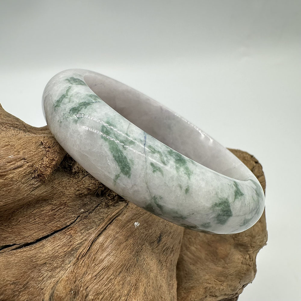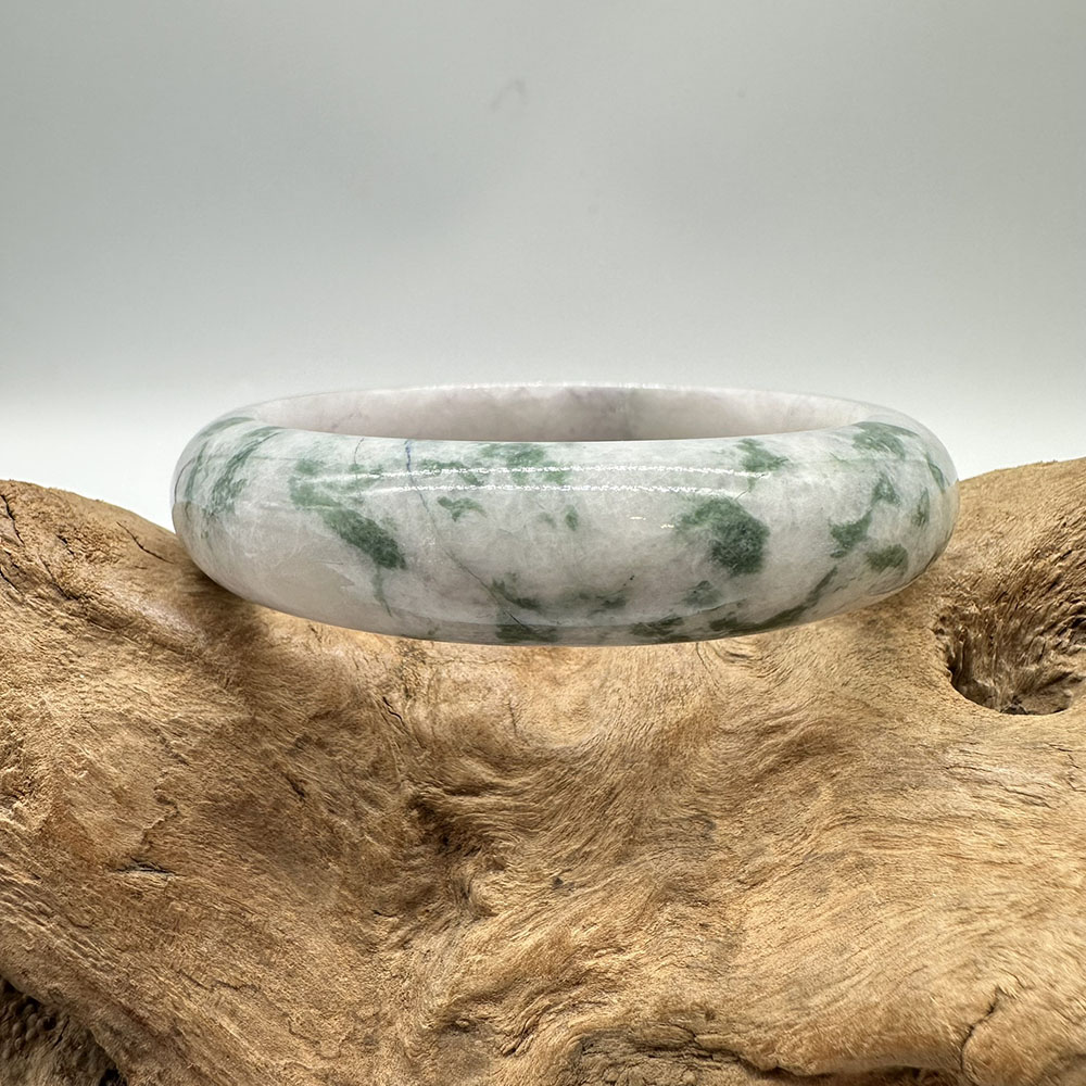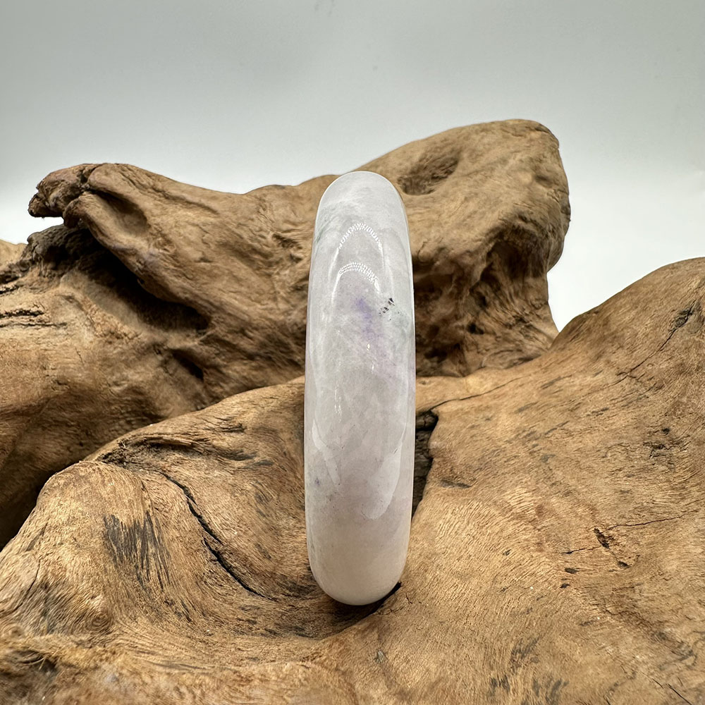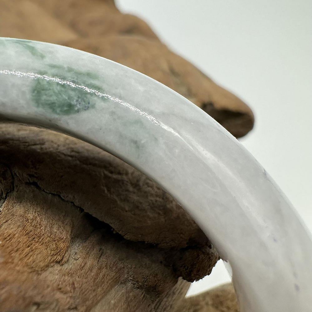 【肌容雪】天然緬甸A貨翡翠白底飄花平安鐲 編號316(鐲圍58.3mm#18.5號)