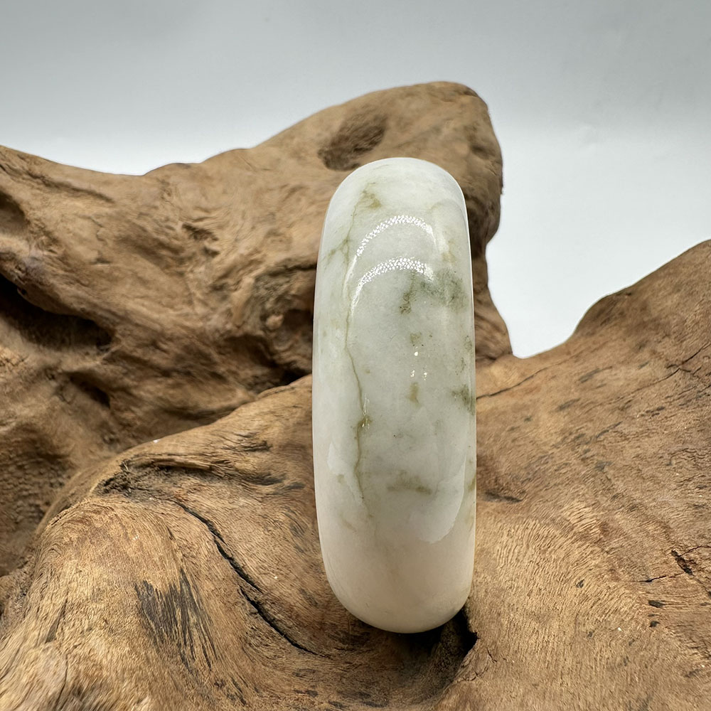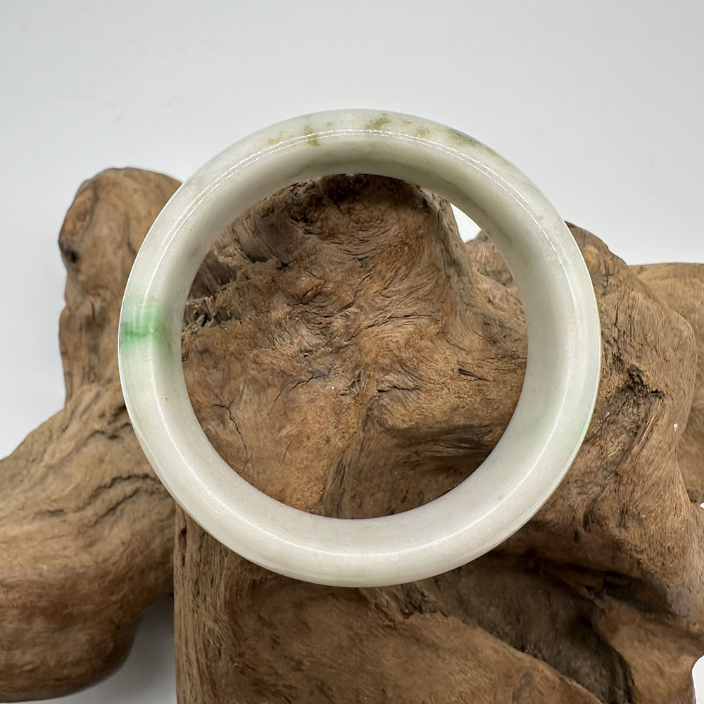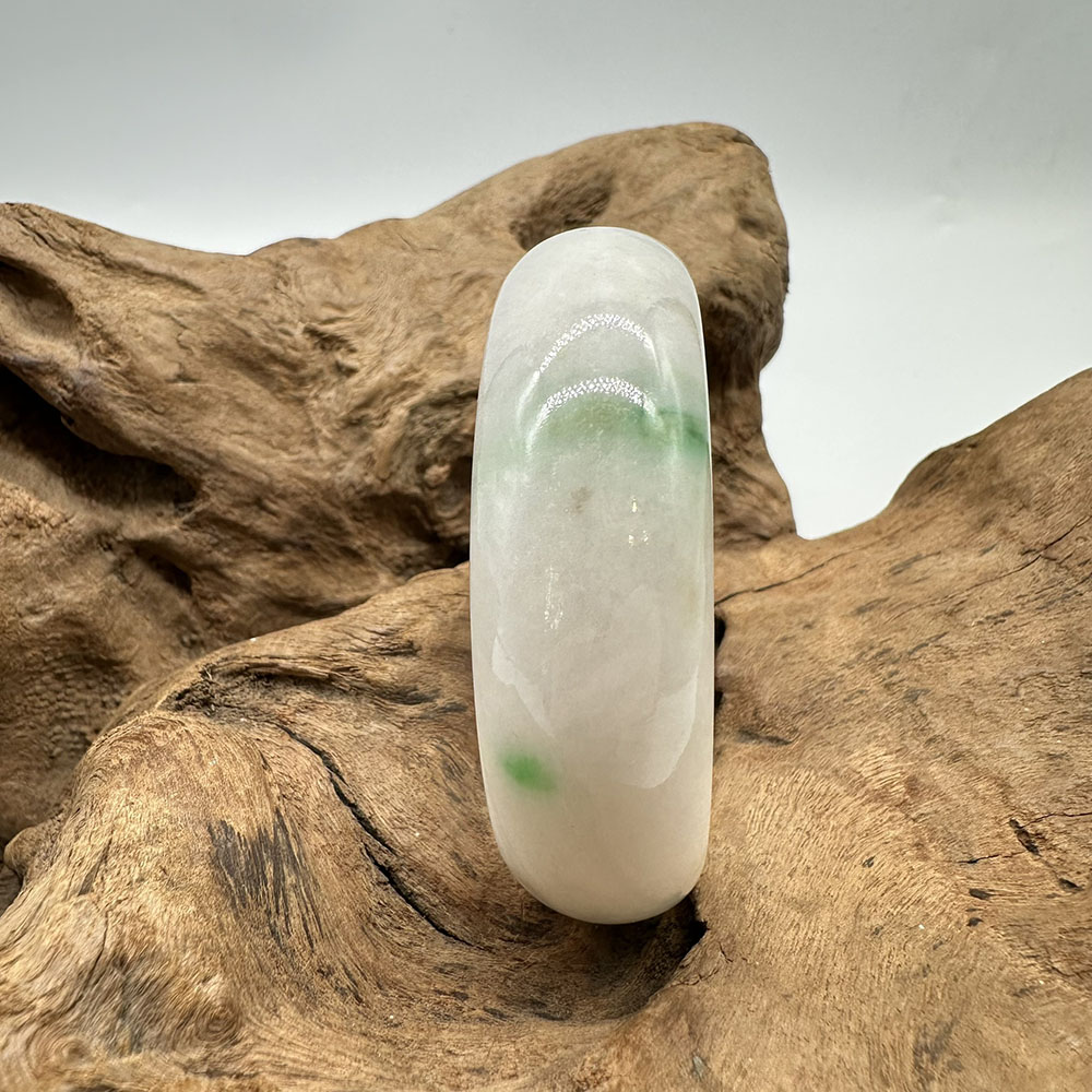 【肌容雪】天然緬甸A貨翡翠白底飄綠花平安鐲 編號319(鐲圍57.7mm#18號)