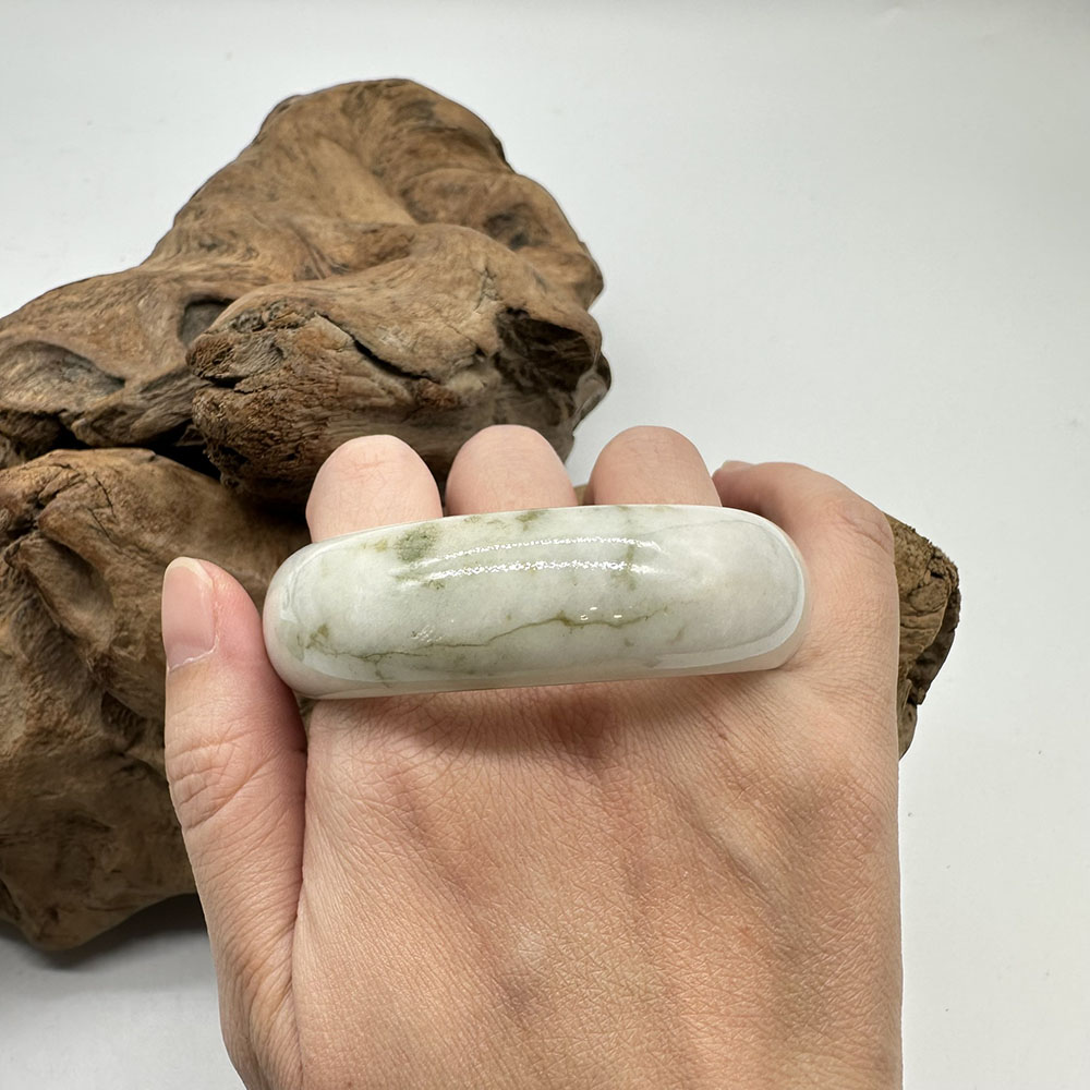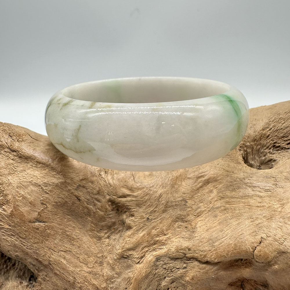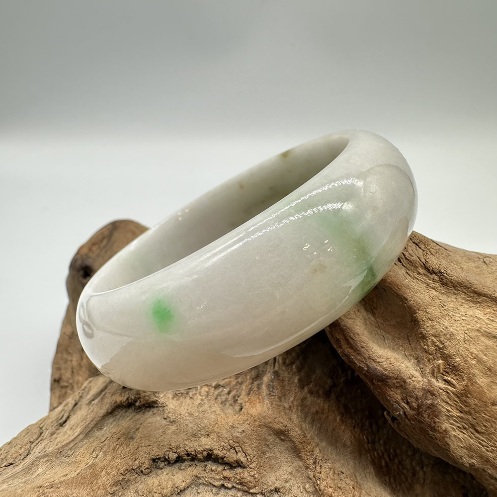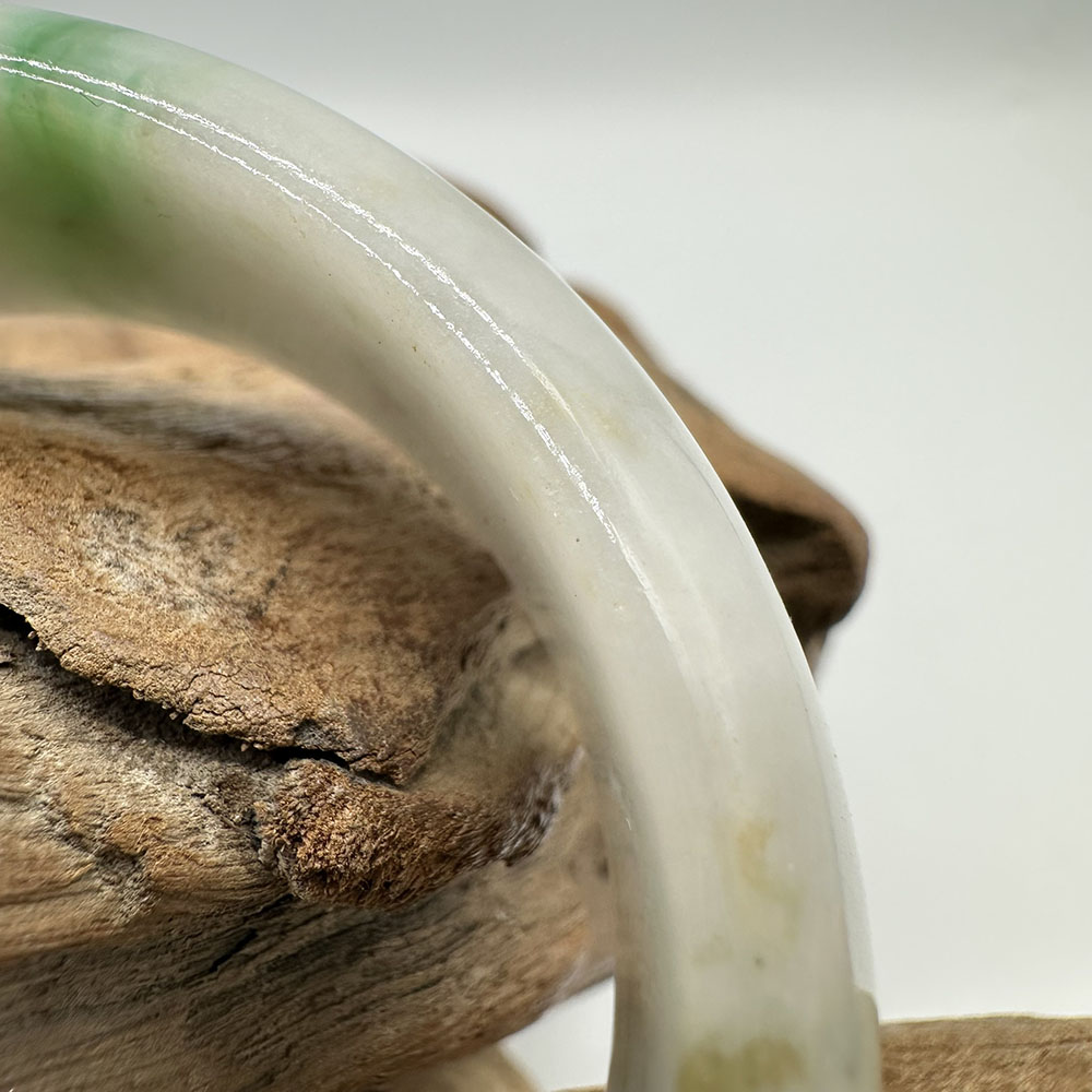 【肌容雪】天然緬甸A貨翡翠白底飄綠花平安鐲 編號319(鐲圍57.7mm#18號)