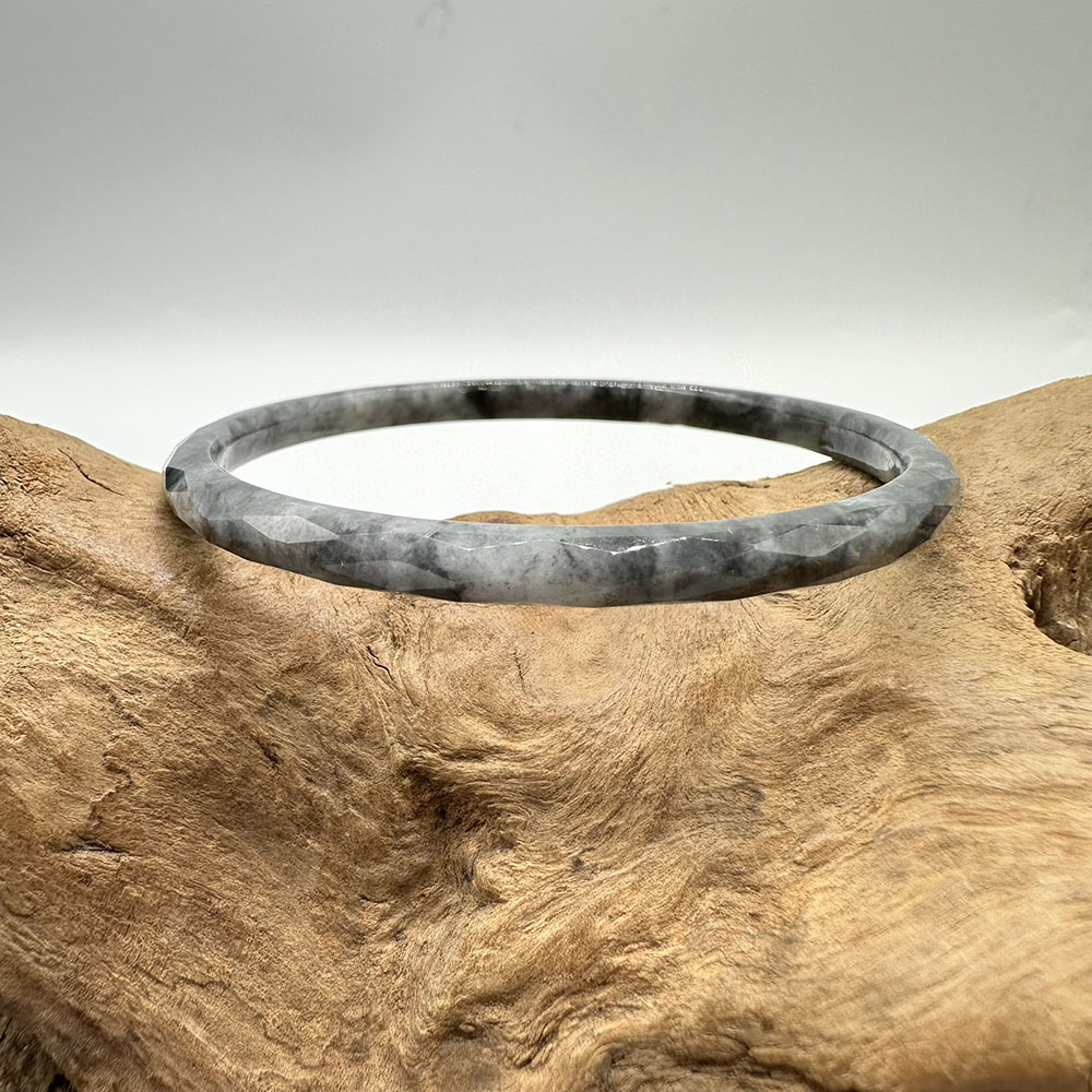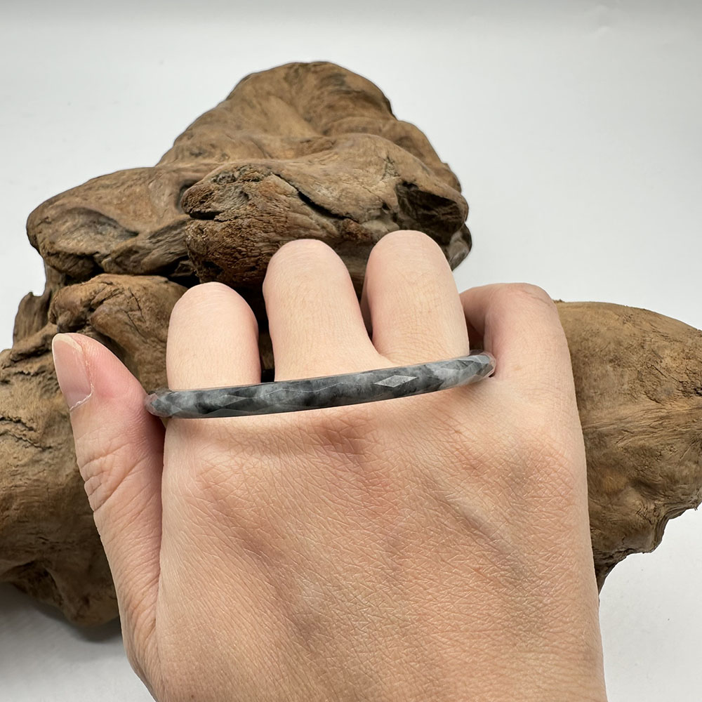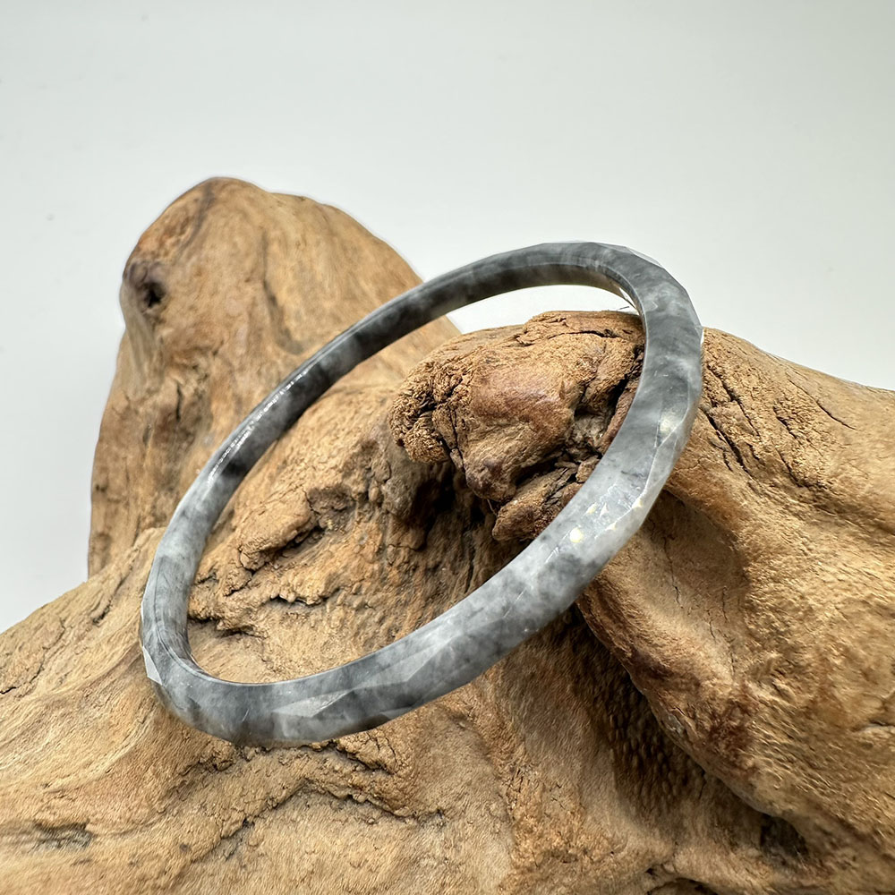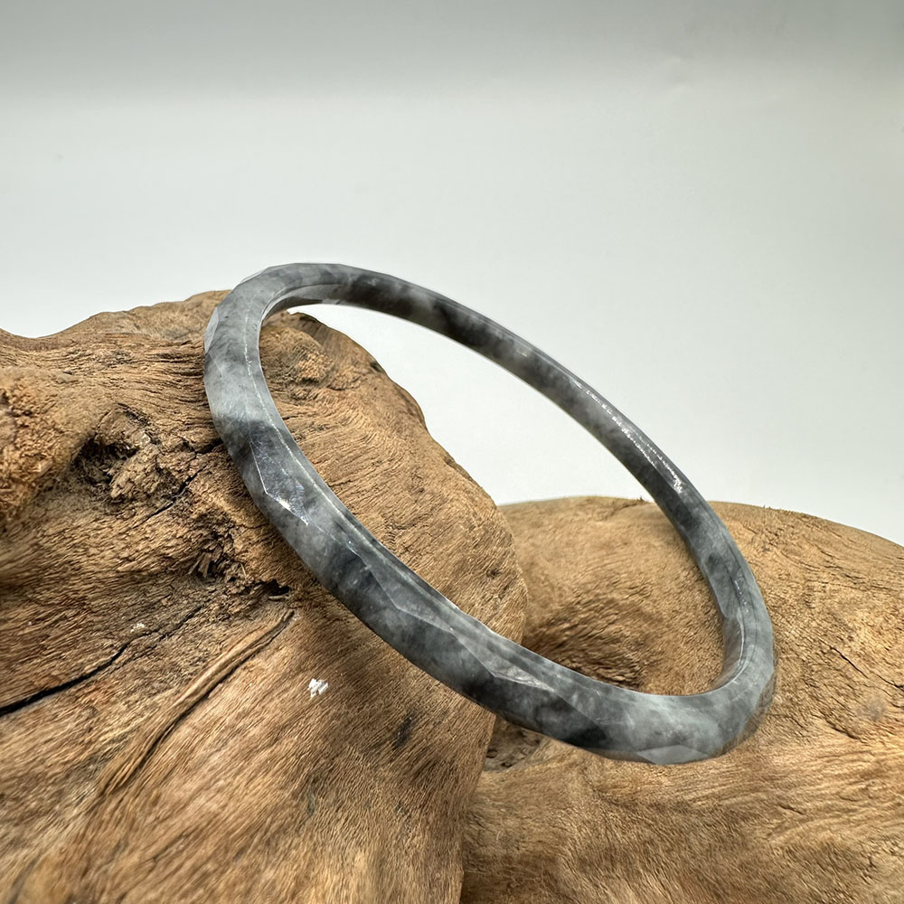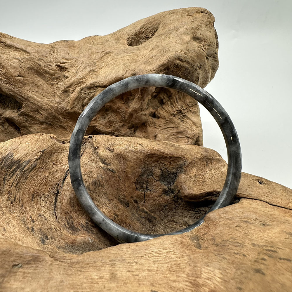 【肌容雪】天然緬甸A貨翡翠冰烏雞叮噹鐲 編號320(鐲圍58.8mm#18.5號)