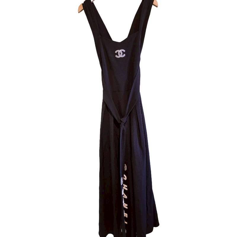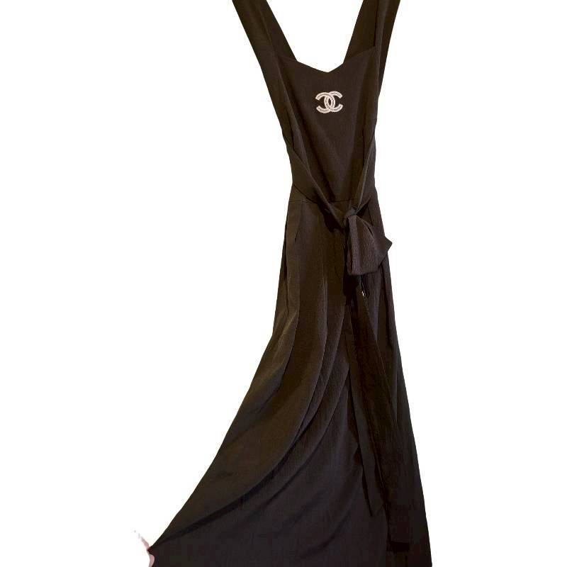 二手奢侈品香奈兒CHANEL裝胸前和腰帶處可見標誌性的雙C標誌洋裝 (9.9新, 肩36胸30長128)-編號S71