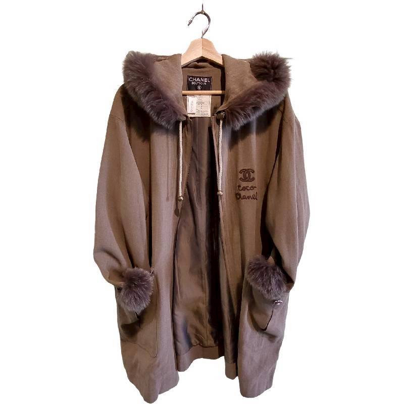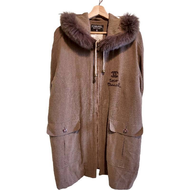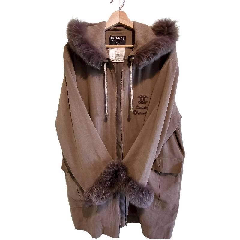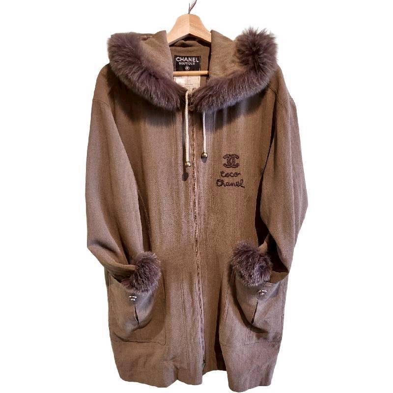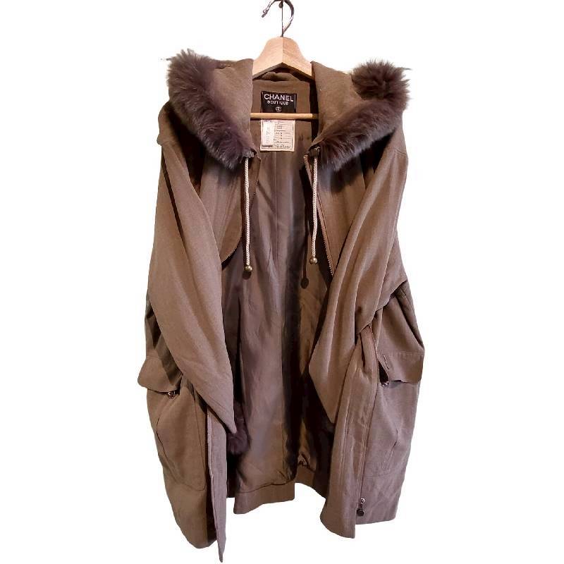 二手奢侈品香奈兒CHANEL咖色羊毛外套(9.8新, 肩54胸60長84)-編號L235