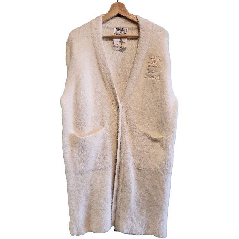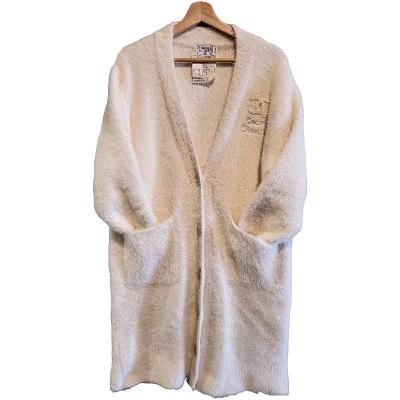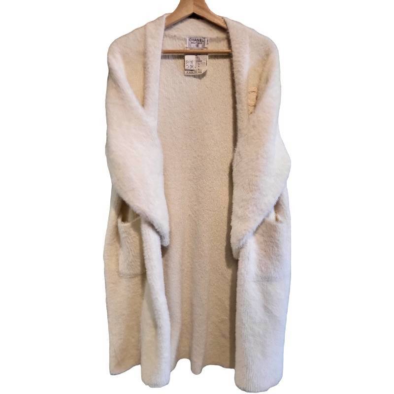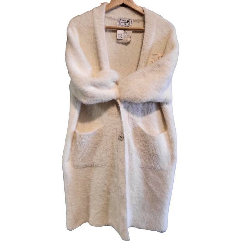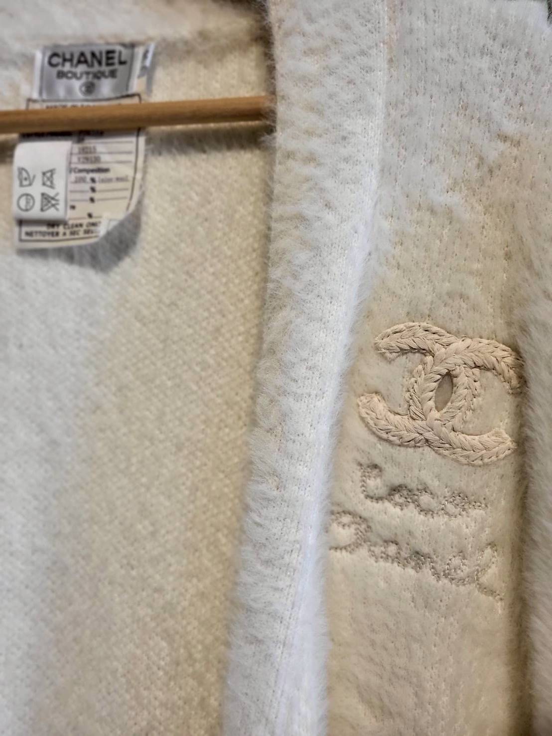 二手奢侈品香奈兒CHANEL白色羊絨毛外套(9.9新, 肩56胸64長100)-編號L245