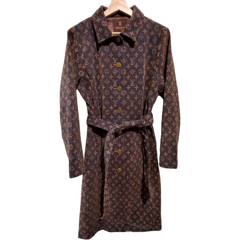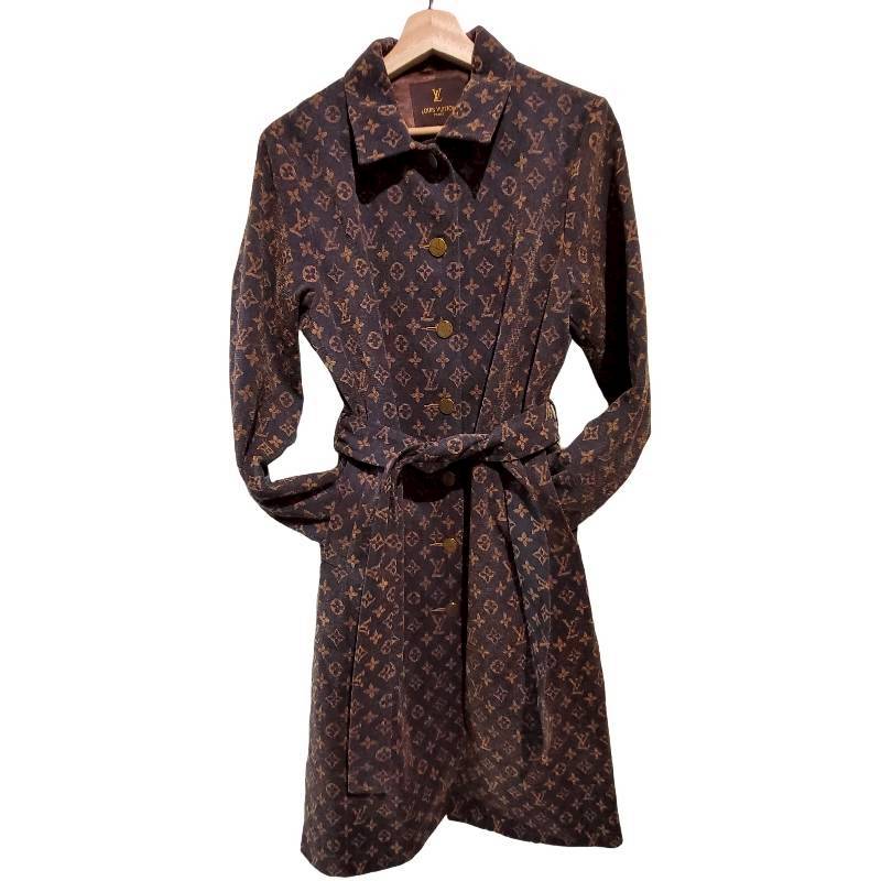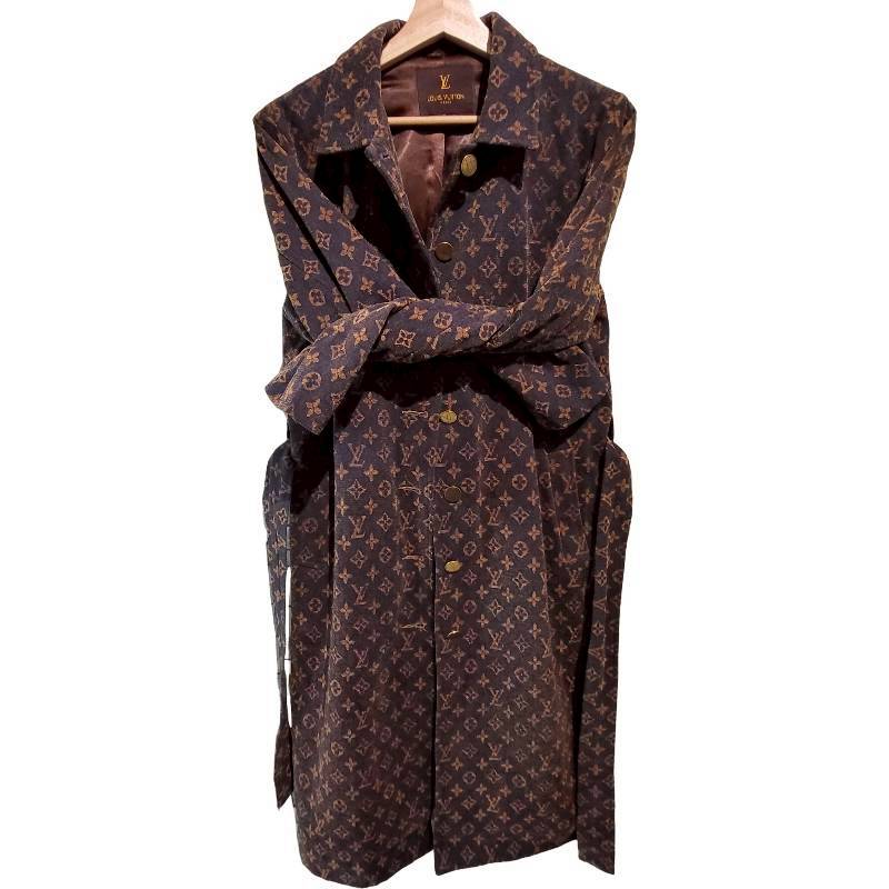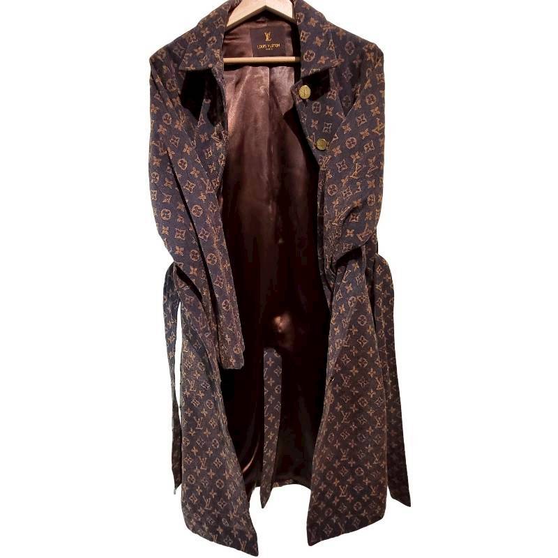 二手奢侈品LV滿版 Monogram 印花風衣 (9.9新, 肩40胸50長114)-編號S146