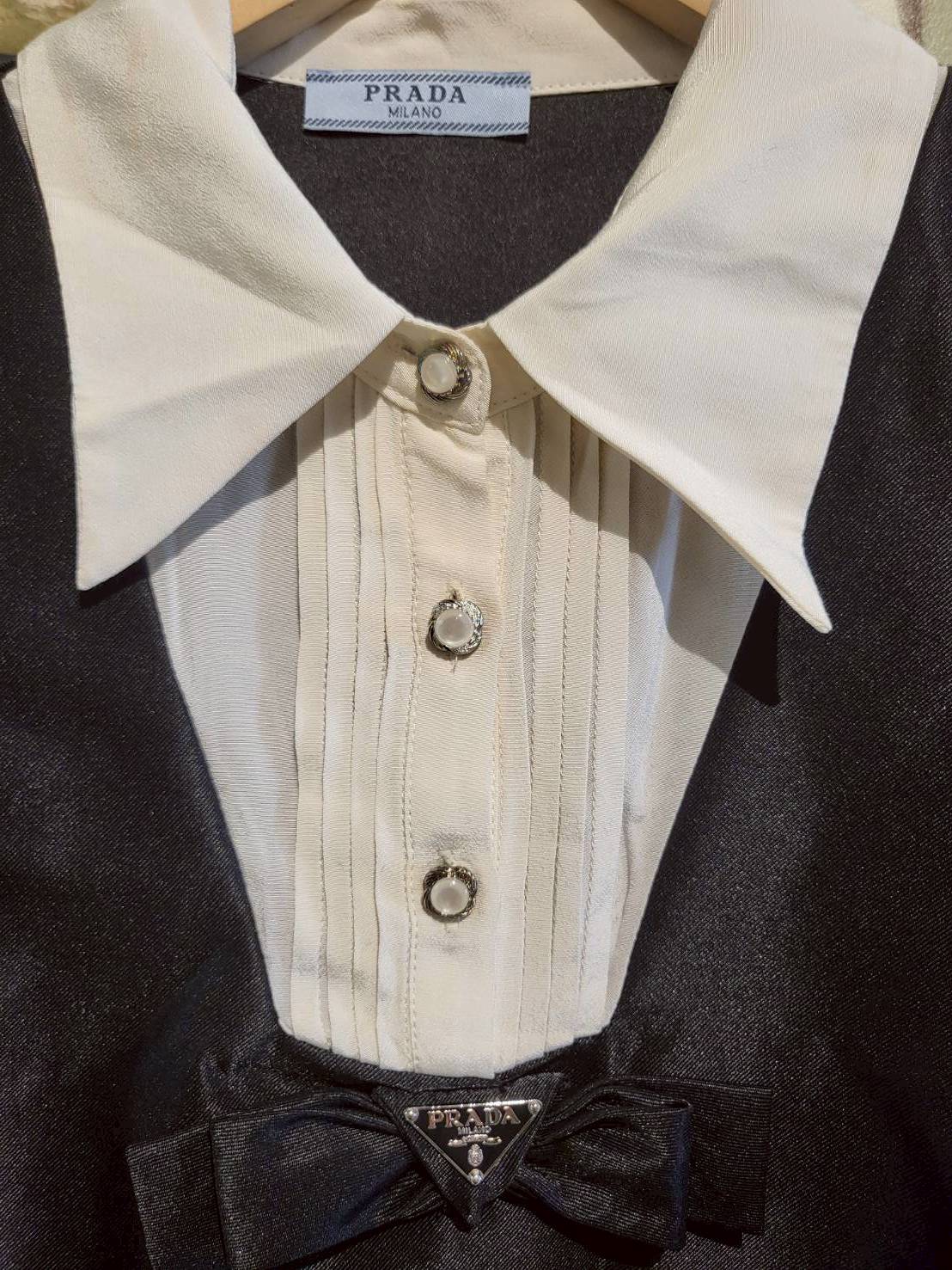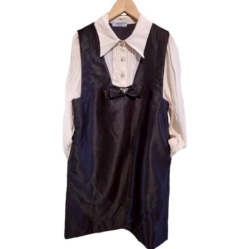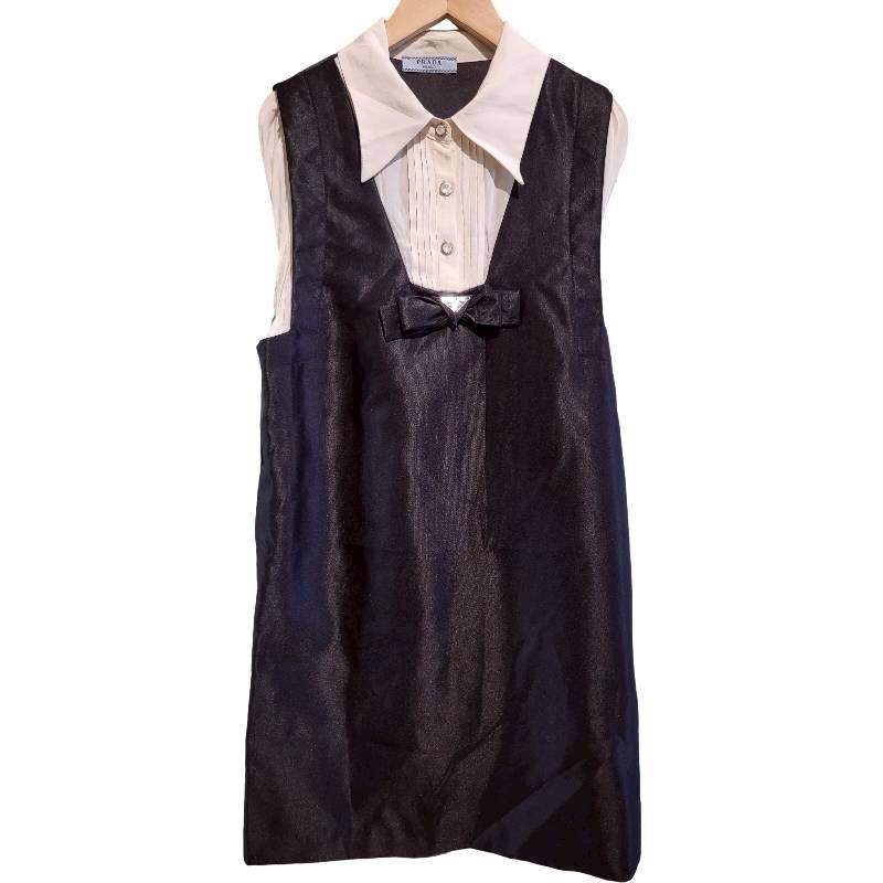 二手奢侈品Prada普拉達黑白配色無袖連身裙搭配長袖 (9.9新, 肩34胸42長85)-編號S75