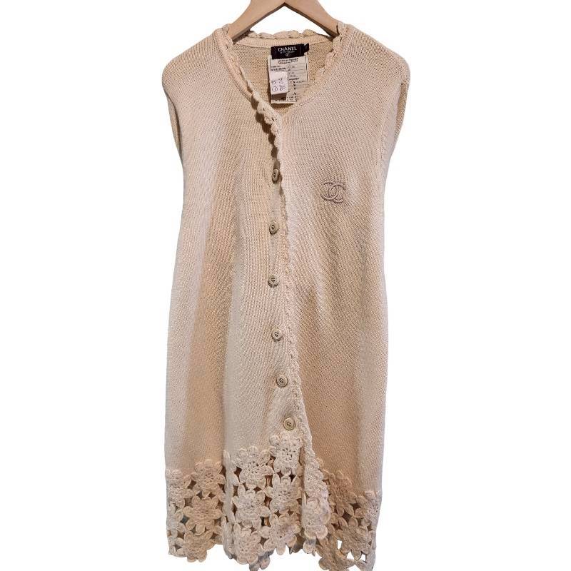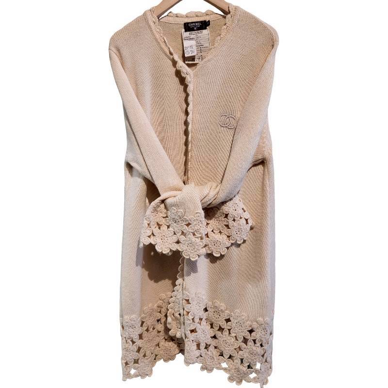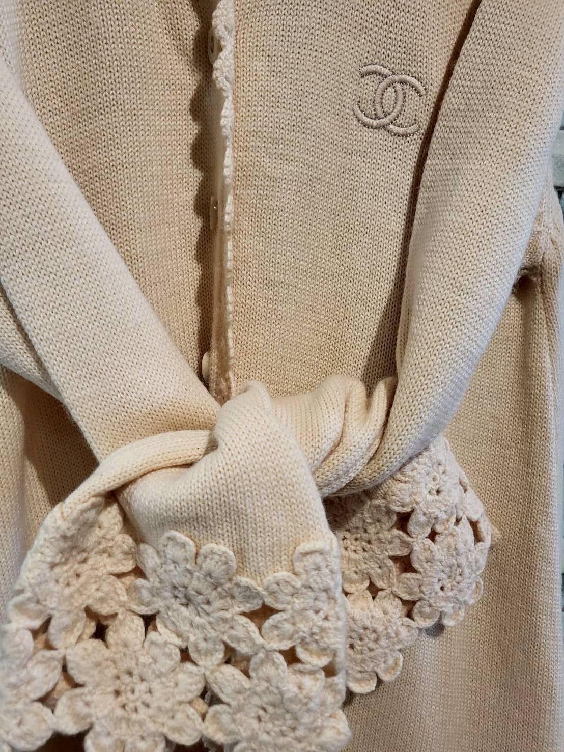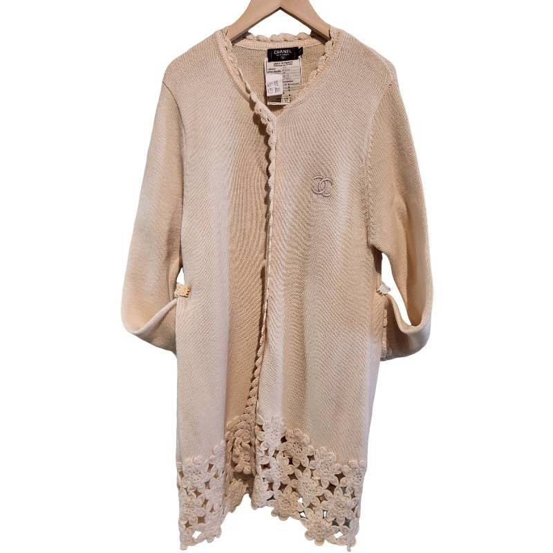 二手奢侈品香奈兒Chanel米色針織開襟衫 (9.9新, 肩42胸48長82)-編號S77