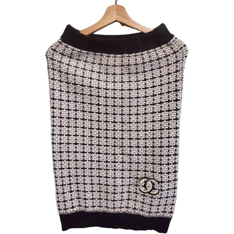 二手奢侈品香奈兒Chanel黑白花呢針織毛裙 (9.9新, 腰30有彈性臀42長60)-編號S103