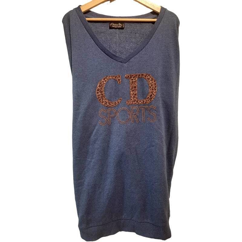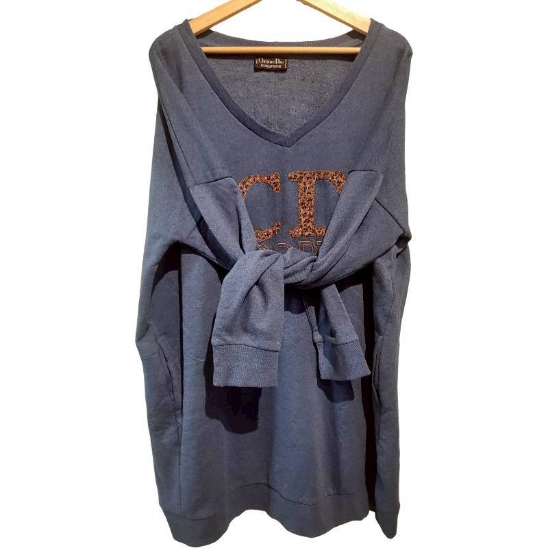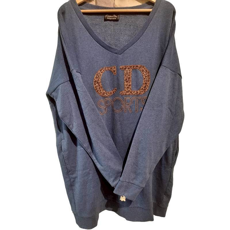 二手奢侈品迪奧藍色Christian Dior Sports 落肩V領長袖上衣(9.9新, 肩82胸72長89)-編號S113