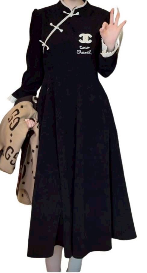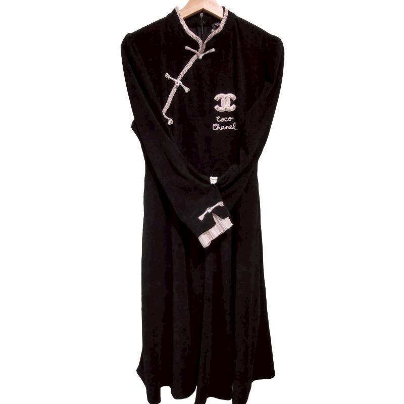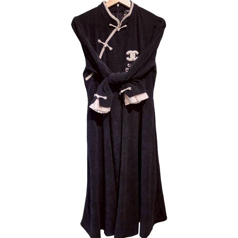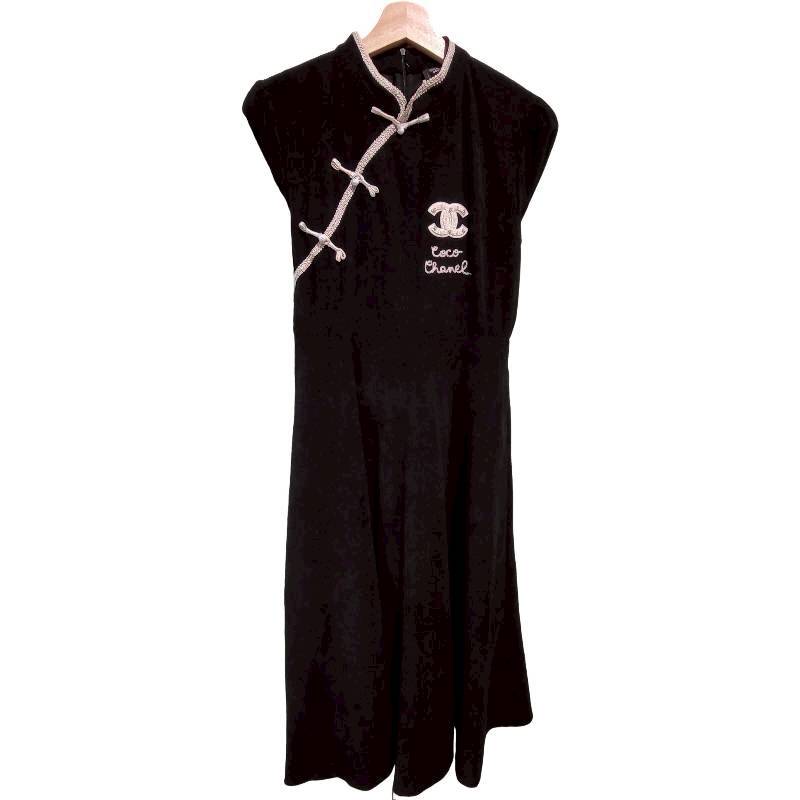 二手奢侈品香奈兒Chanel旗袍風格連身裙(9.9新, 肩38胸43長116)-編號S118