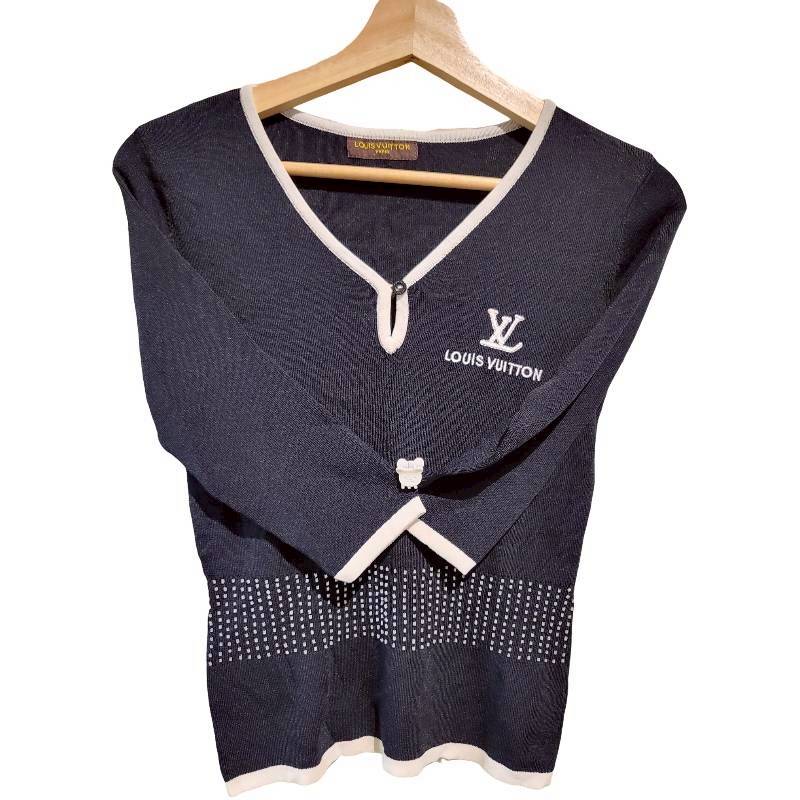 二手奢侈品路易威登Louis Vuitton Monogram 圖案鈕扣針織上衣(9.9新, 肩40胸43長50)-編號S121