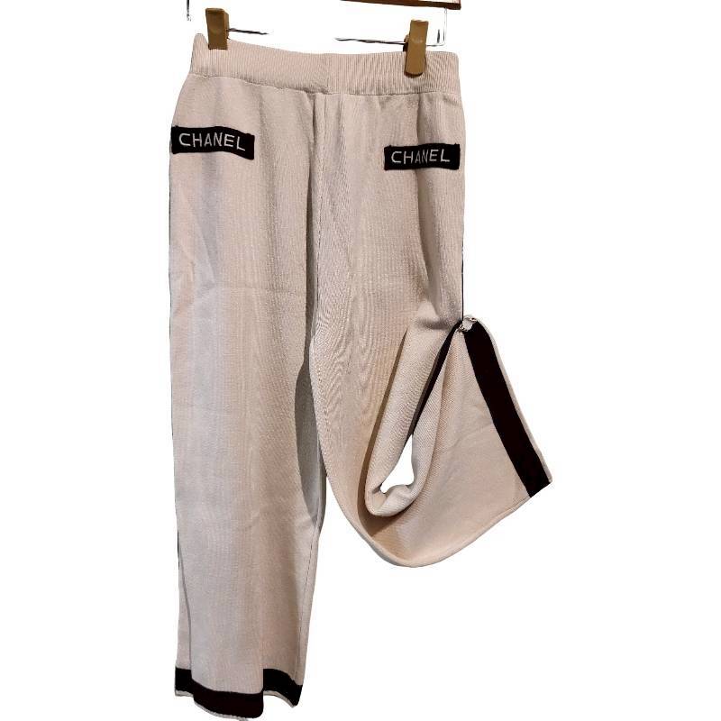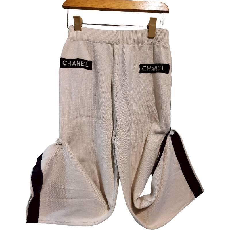 二手奢侈品香奈兒Chanel 米色針織9分長褲(9.9新, 腰32臀52長89)-編號S122