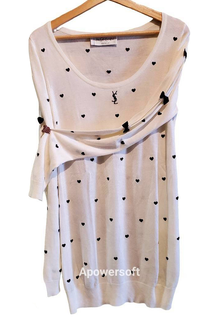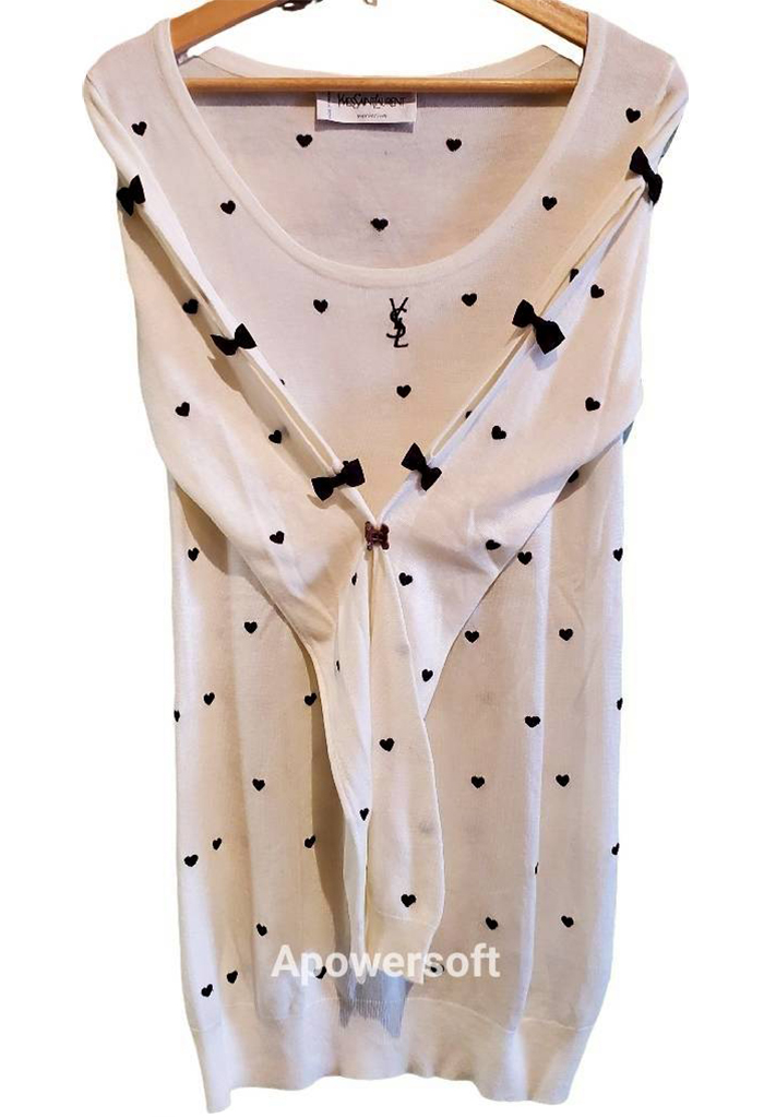 二手奢侈品YSL聖羅蘭米白色羊毛綿質洋裝(9.9新, 肩42胸42長77)-編號S28
