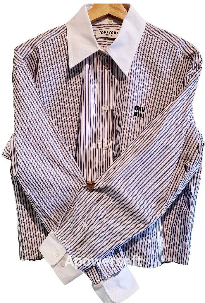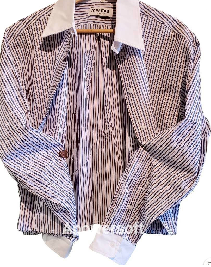 二手奢侈品miumiu藍紫線條襯杉(白領袖子可拆)(9.9新, 肩50胸58長57)-編號S29