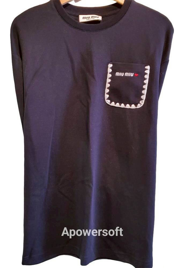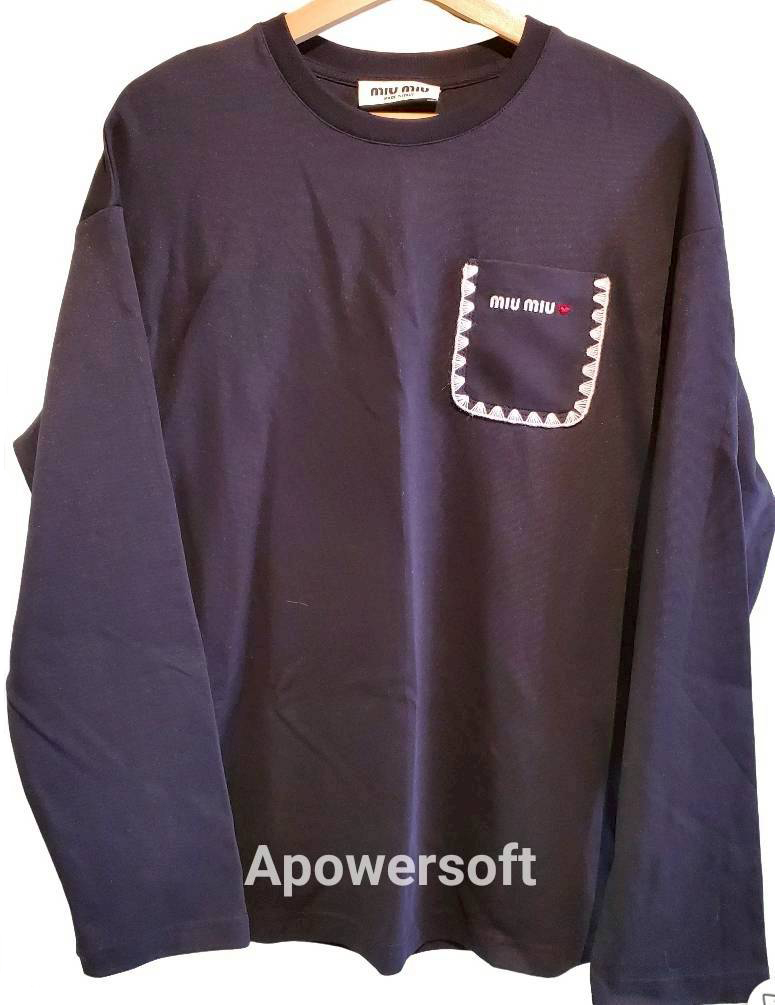 二手奢侈品miumiu藏青色綿質上衣(9.9新, 肩55胸57長63)-編號S30