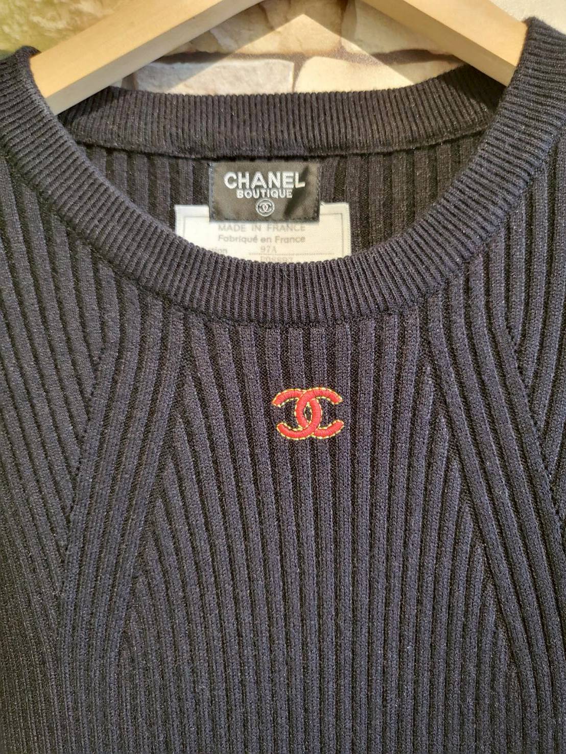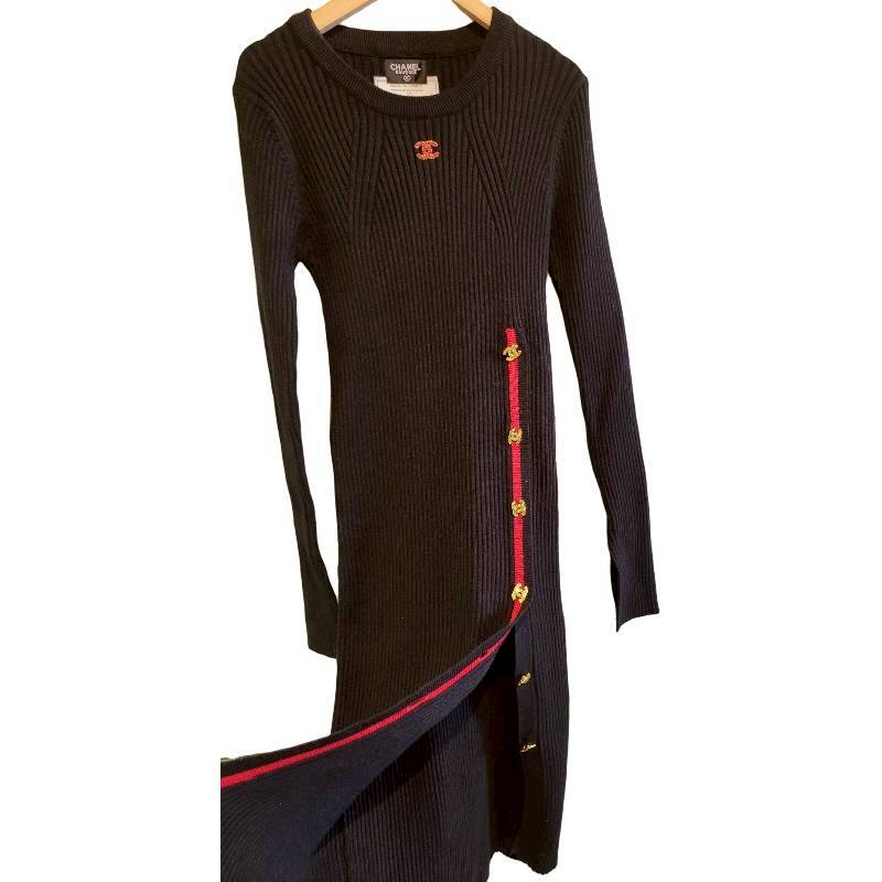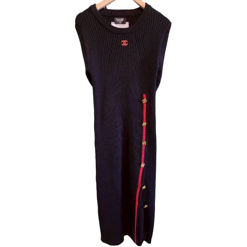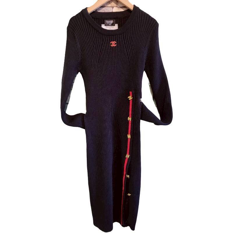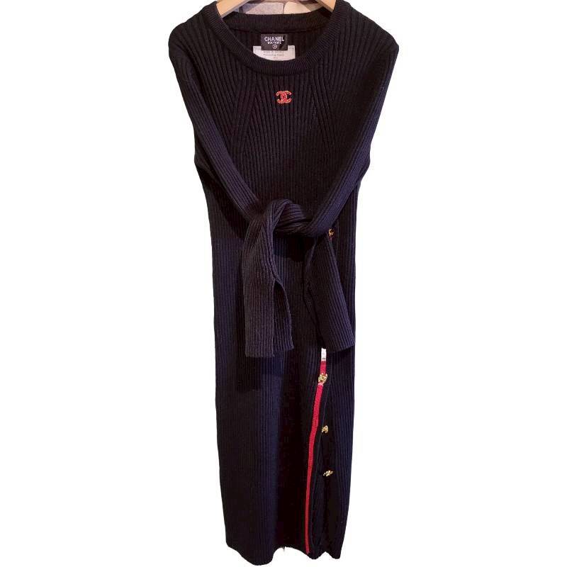 二手奢侈品香奈兒CHANEL黑色羅紋針織連身裙 (9.9新, 肩38胸40長102)-編號S72