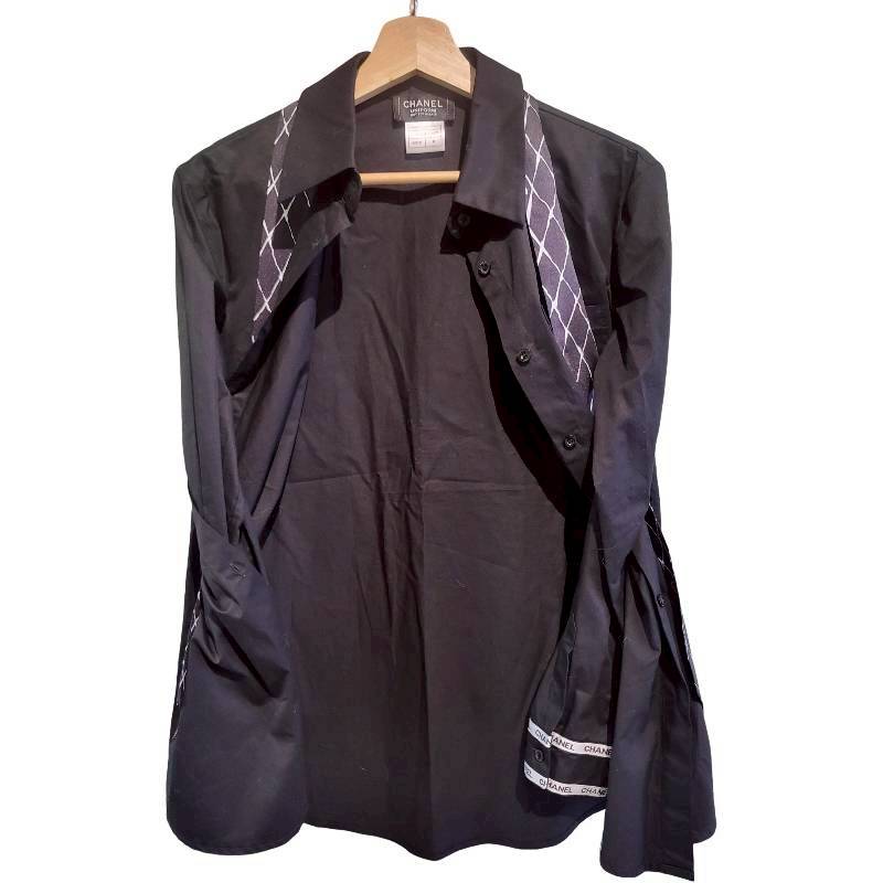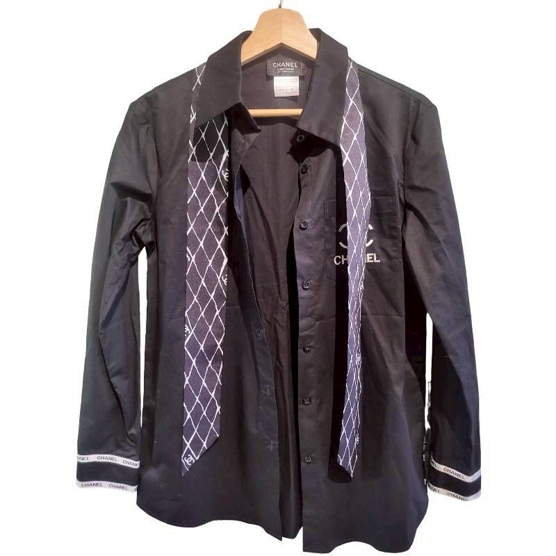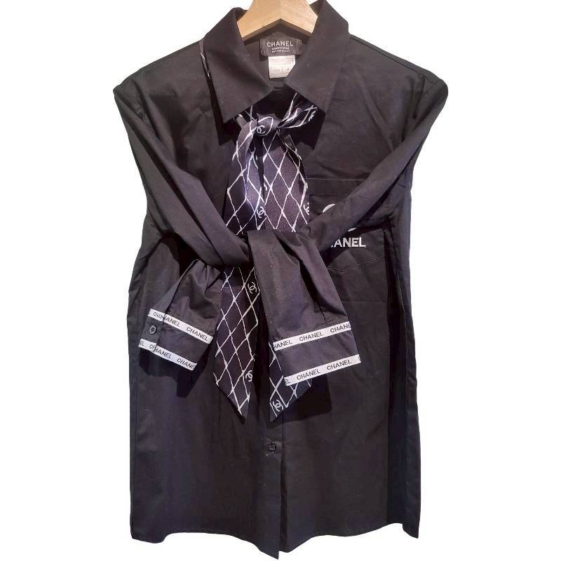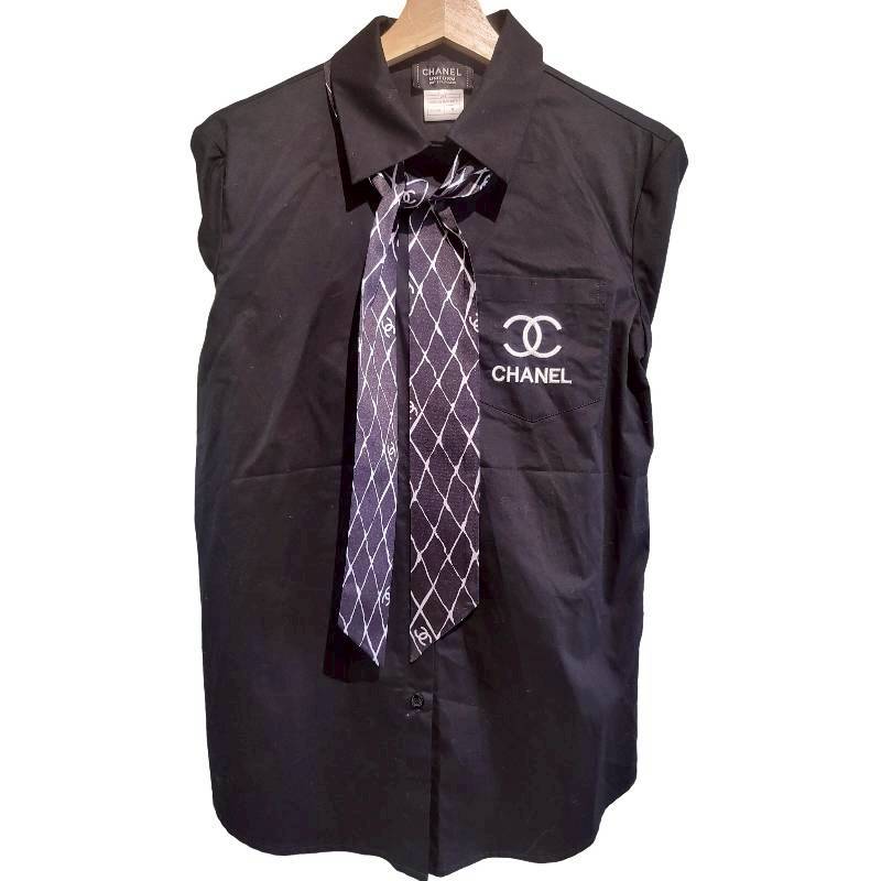 二手奢侈品香奈兒Chanel襯衫(配有領帶和袖口飾有品牌標誌)(9.9新,肩40胸46長74)-編號S88